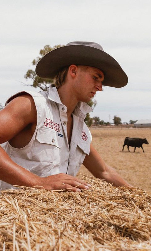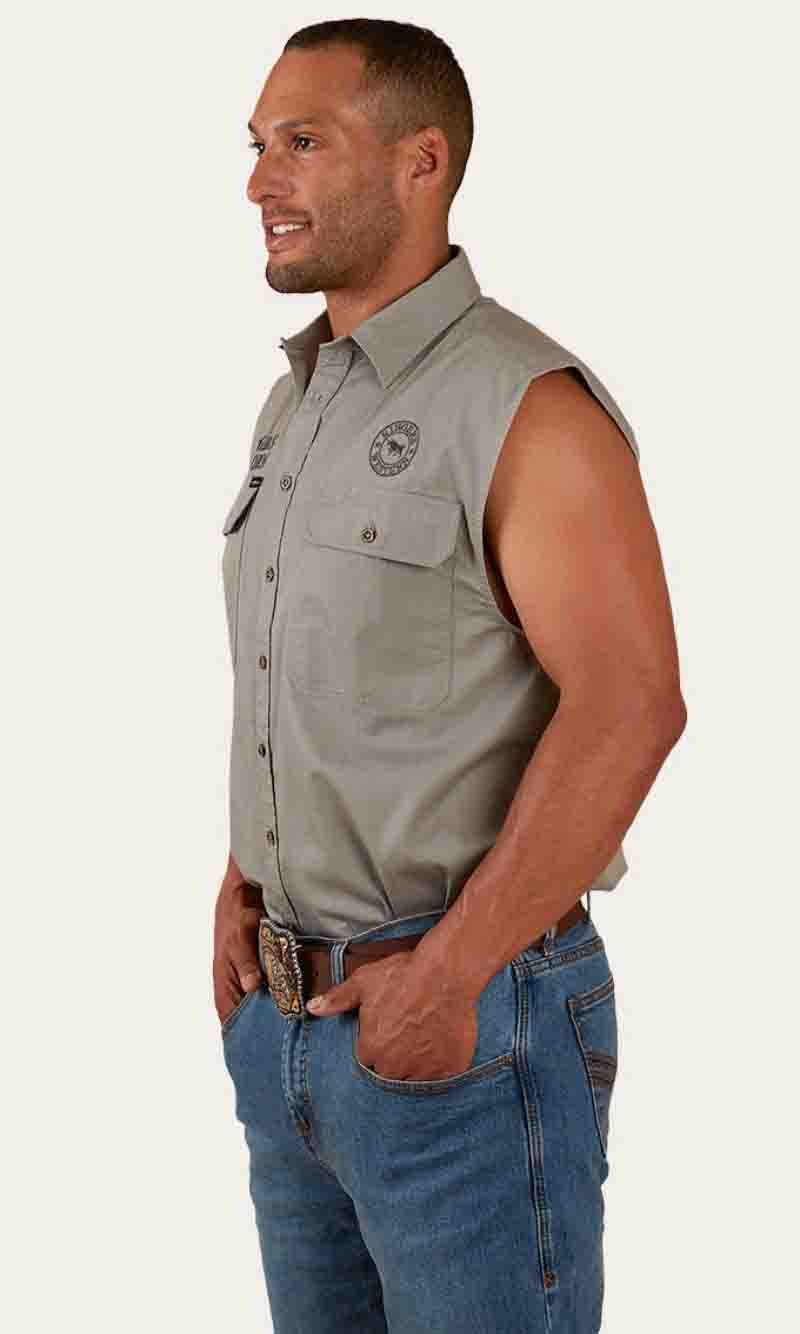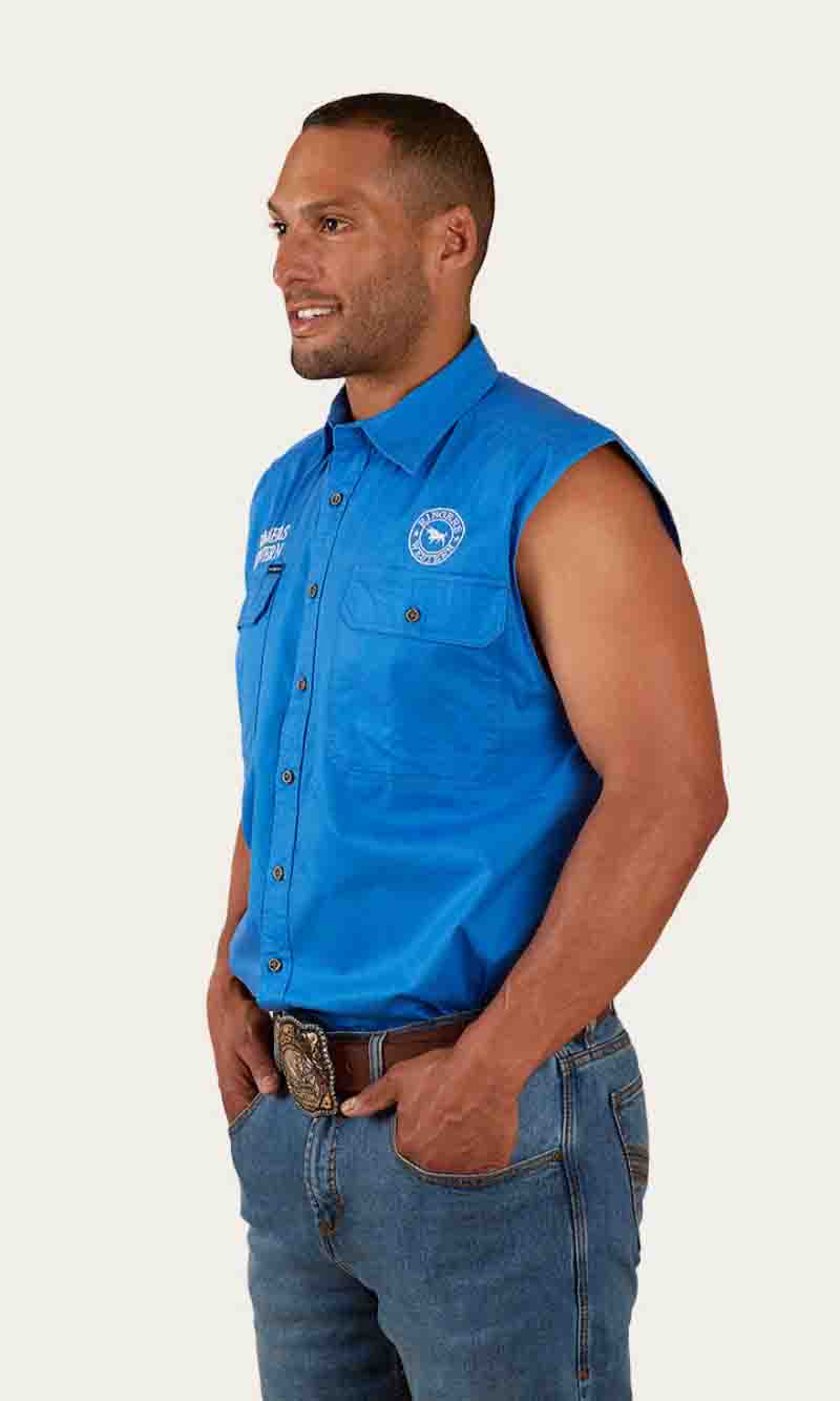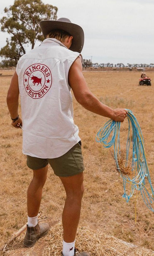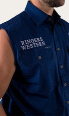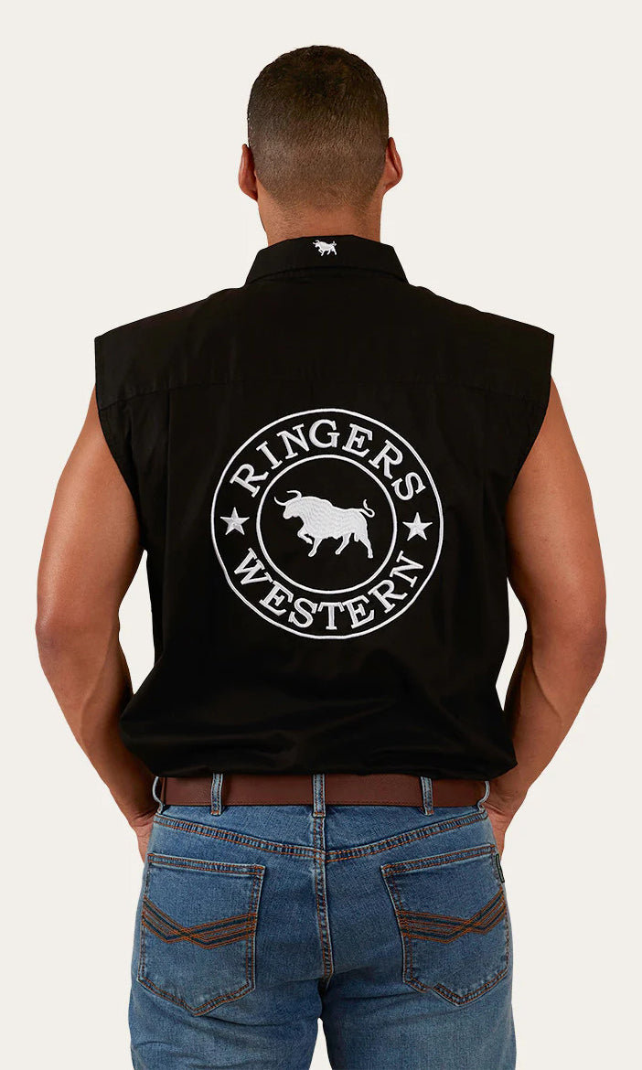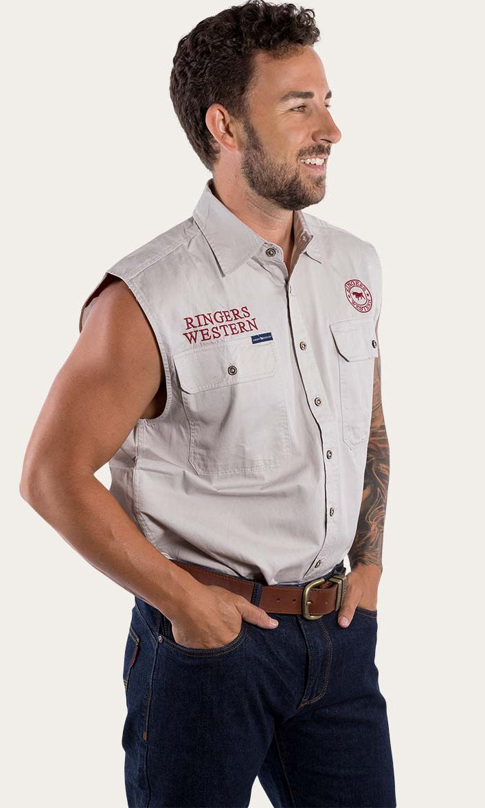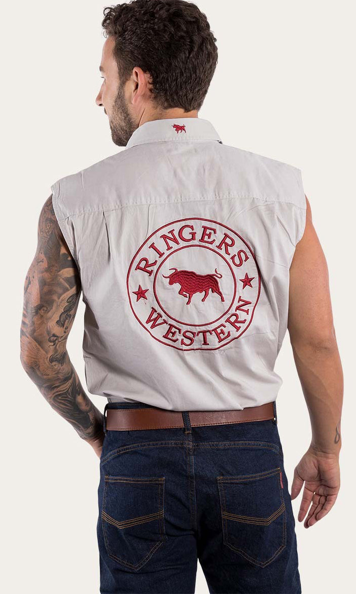 This sleeveless work shirt acknowledges our roots with a signature crest, white embroidery, and Ringers Western appliqué on the chest.
