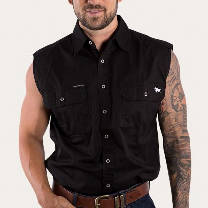 Cotton Hawkeye Men's Sleeveless Work Shirt, More Colours