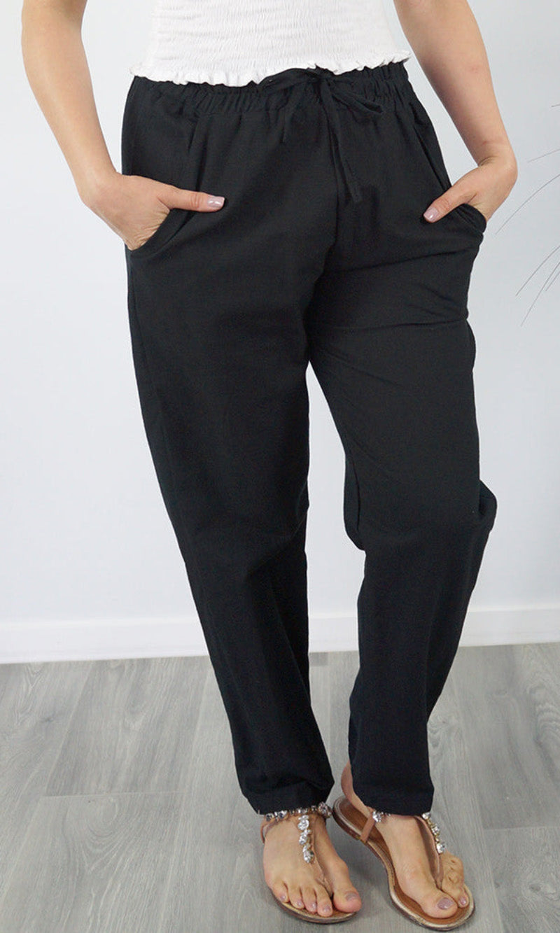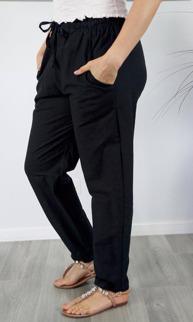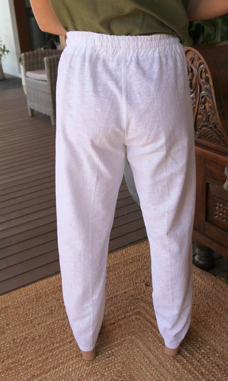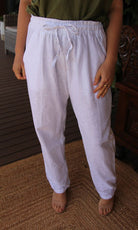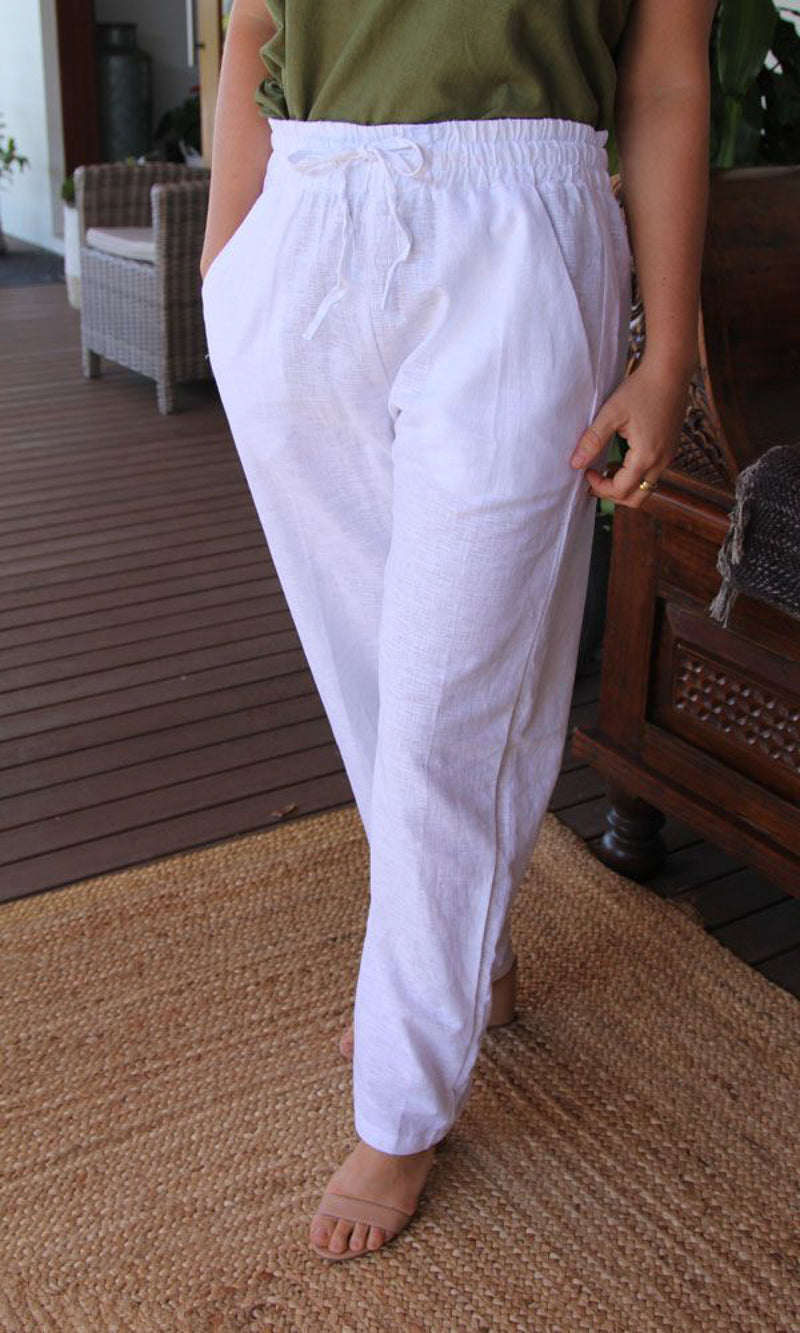 The Coastal Pant, a casual but very comfortable straight leg pant. Made from 100% soft cotton with an elastic drawstring waist & pockets this garment is a must for those relaxing days through summer