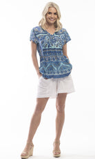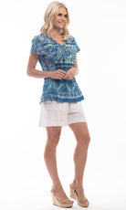 Cotton Top Pleated Short Sleeve Matheran Blue