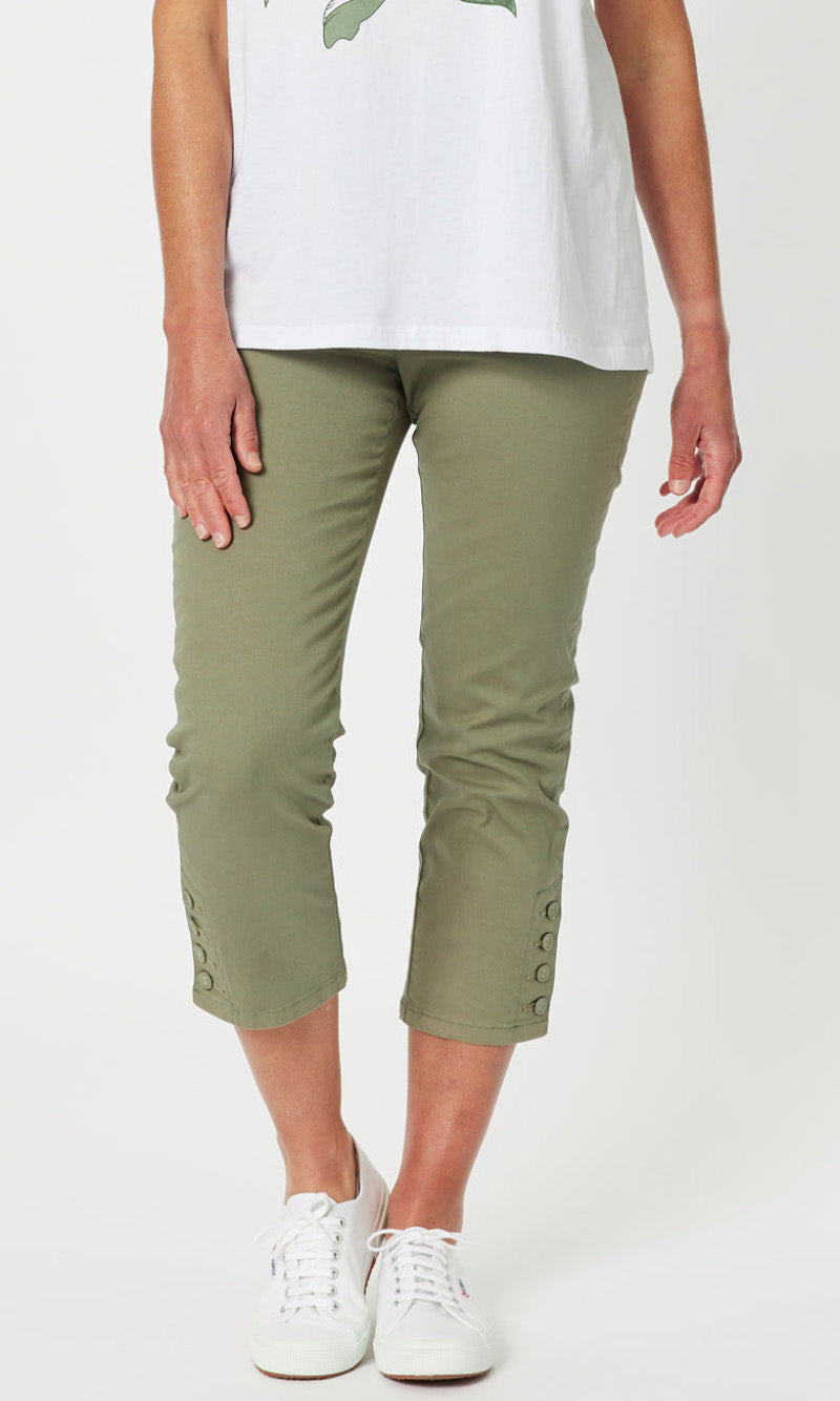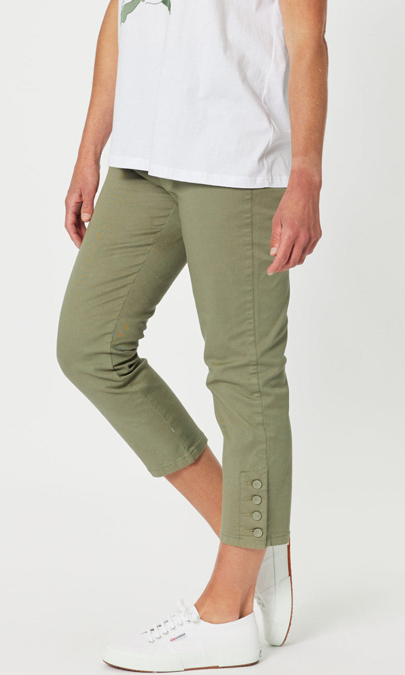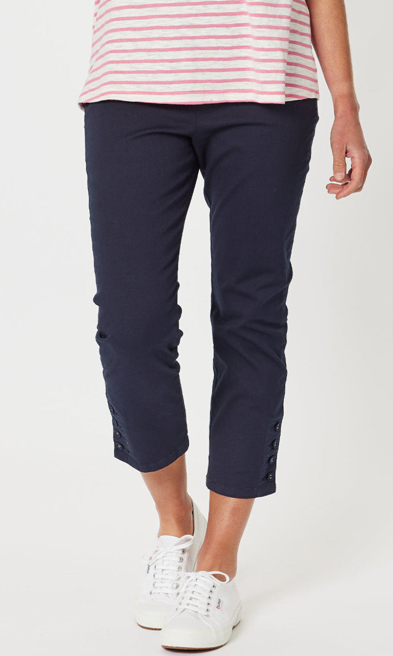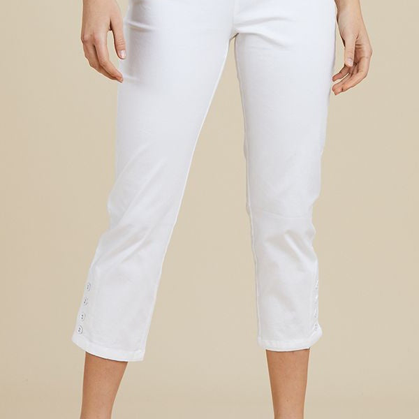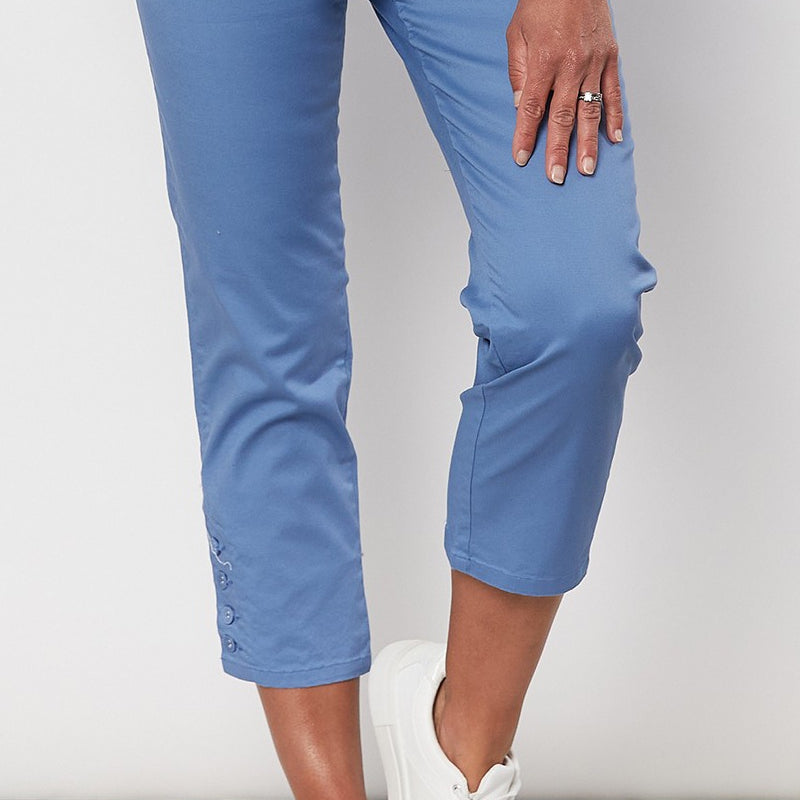 - This classic capri pant has fully functioning buttons at the bottom of the cuff that are self-covered in the cotton twill fabric the actual pant is made from