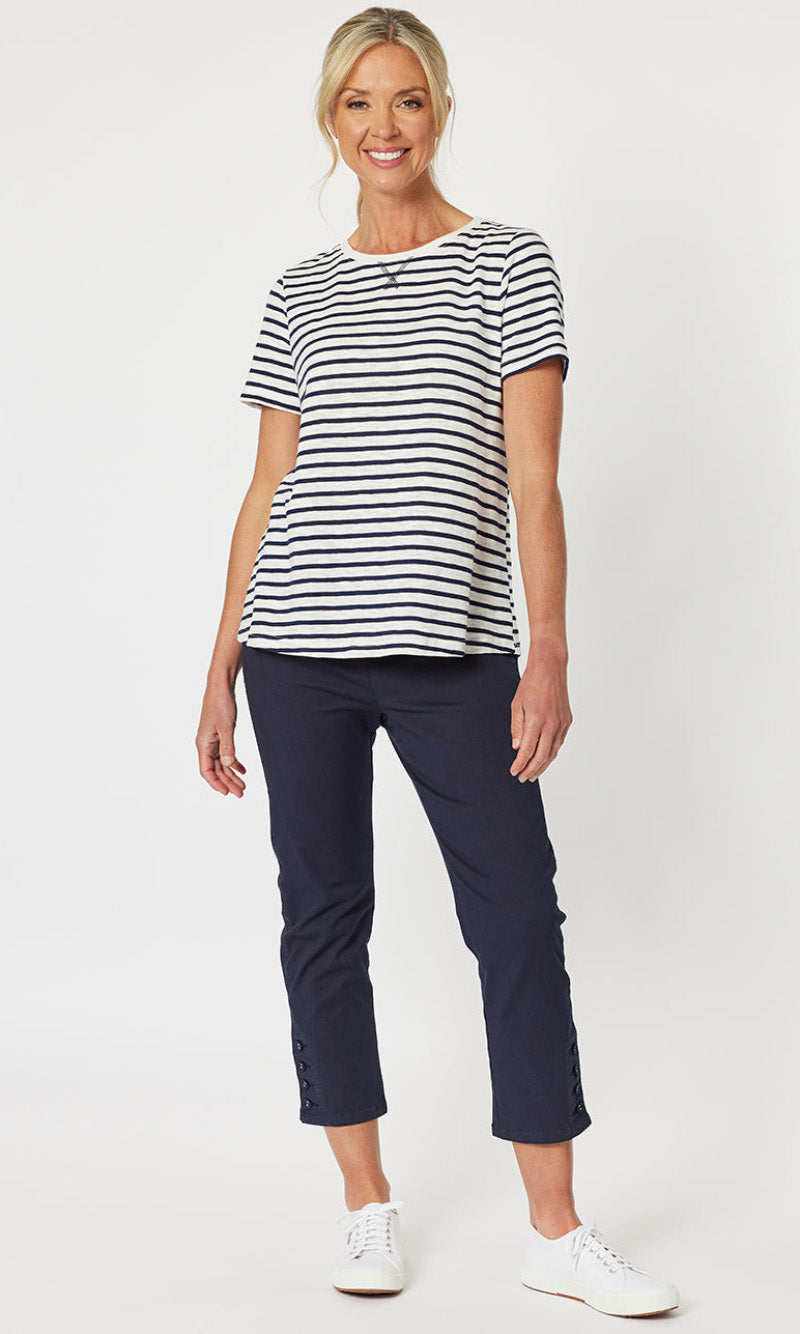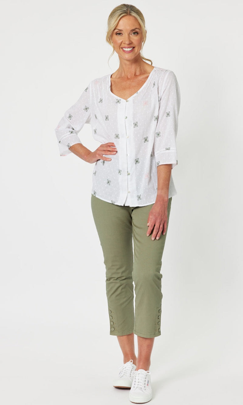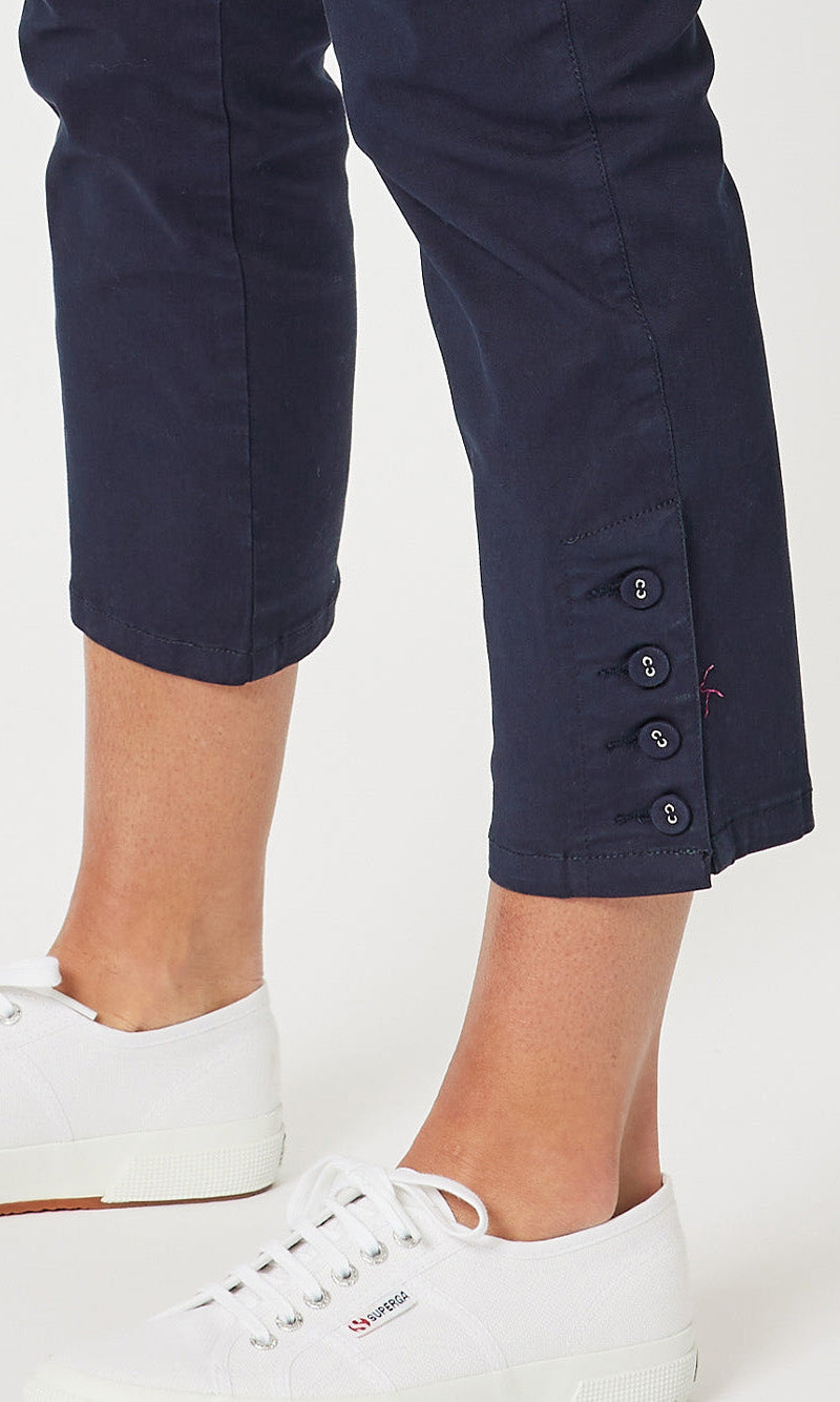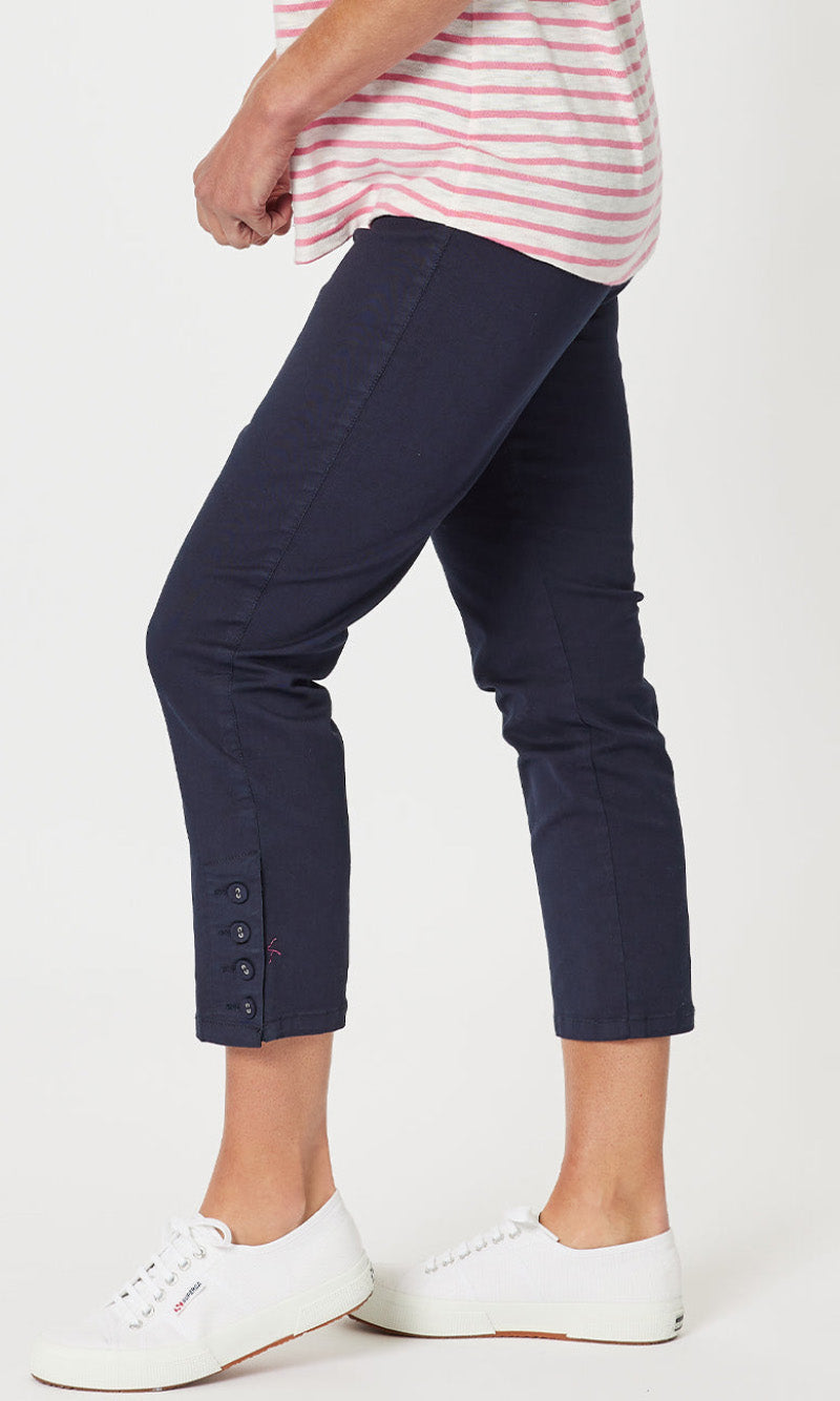 - This classic capri pant has fully functioning buttons at the bottom of the cuff that are self-covered in the cotton twill fabric the actual pant is made from