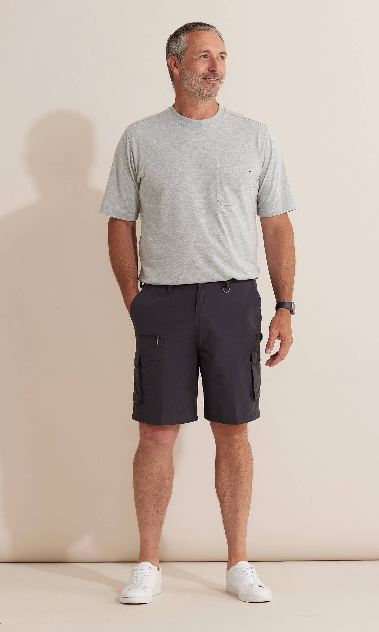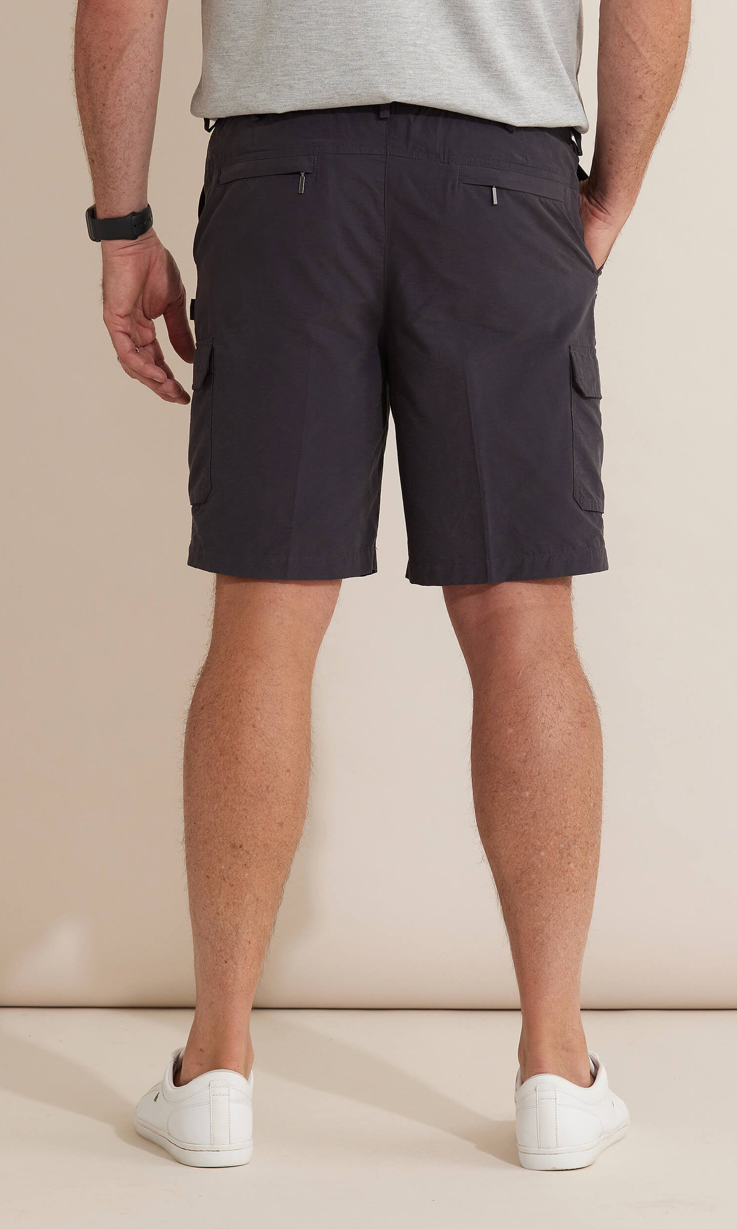 The Woodbury Short is one of our most popular men's fabrications, perfect for outdoor activities. The cotton rich blend gives a natural look with a sueded hand feel. Featuring a zip, elasticated waistband for ease & comfort, slanted side pockets & utility pockets.