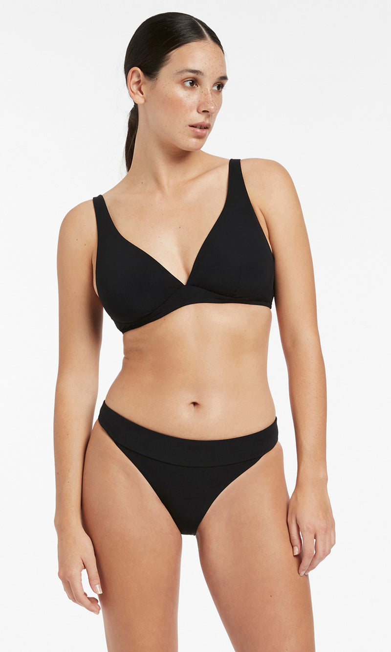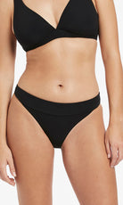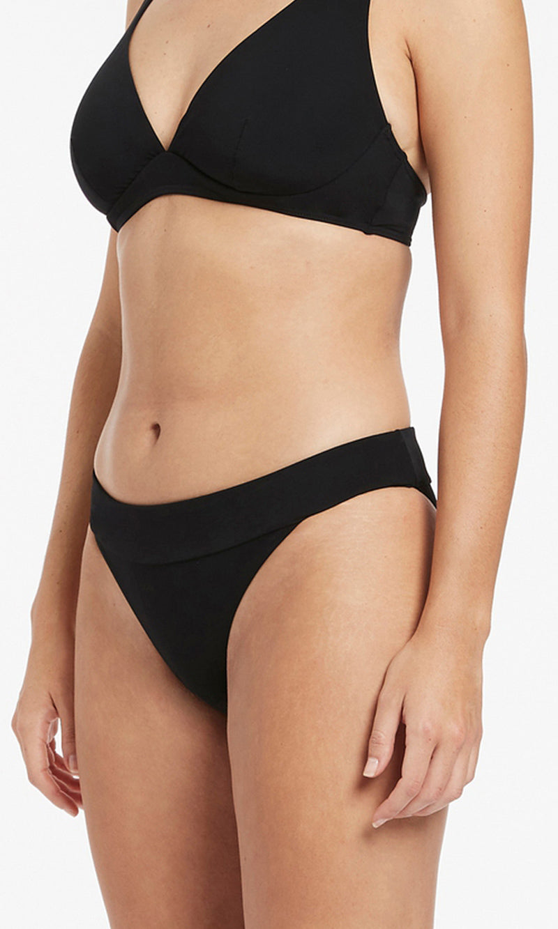 The JETSET Banded High Leg Bikini Bottom combines classic shape with a high leg cut for an elongated figure. This elevated bikini bottom provides a flattering addition to your swim wardrobe.
