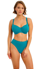 Back for SS26; it's our much-loved Jewel Cove collection. Available in key shade of the season, Moonstone, we love the vibrant ocean inspired teal colourway. In addition to our core styling, we’ve added three new shapes this season. Our new UW and Plunge Tops are both lower in coverage and feature versatile, convertible straps for multiple ways to wear, whilst the addition of our new Brazilian Bikini Brief offers cheeky bottom coverage for the perfect summer style.