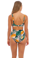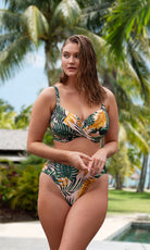 Introducing Jungle Falls, a print collection that captures the true beauty found in our tropical landscapes. Upon a soft pink base, palms in tonal shades of green and golden ochre rest. With a wide range of styles and coverage levels, Jungle Falls is the perfect addition to your holiday wardrobe for the new season.