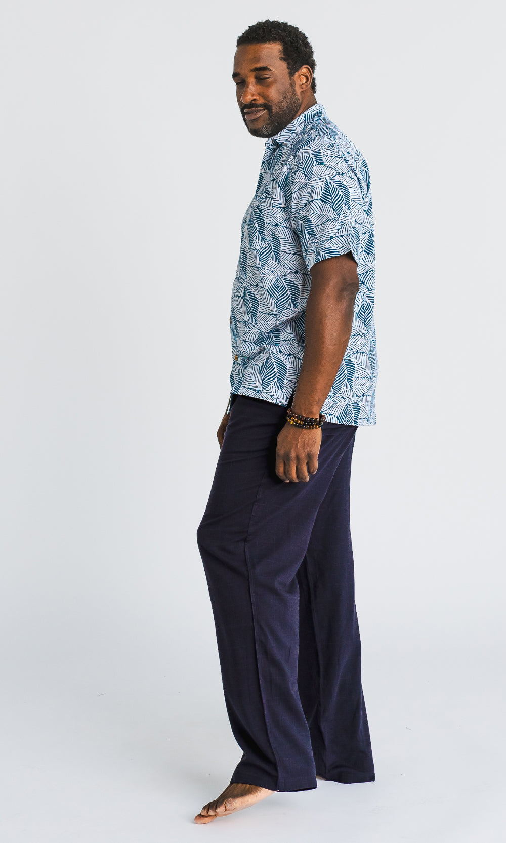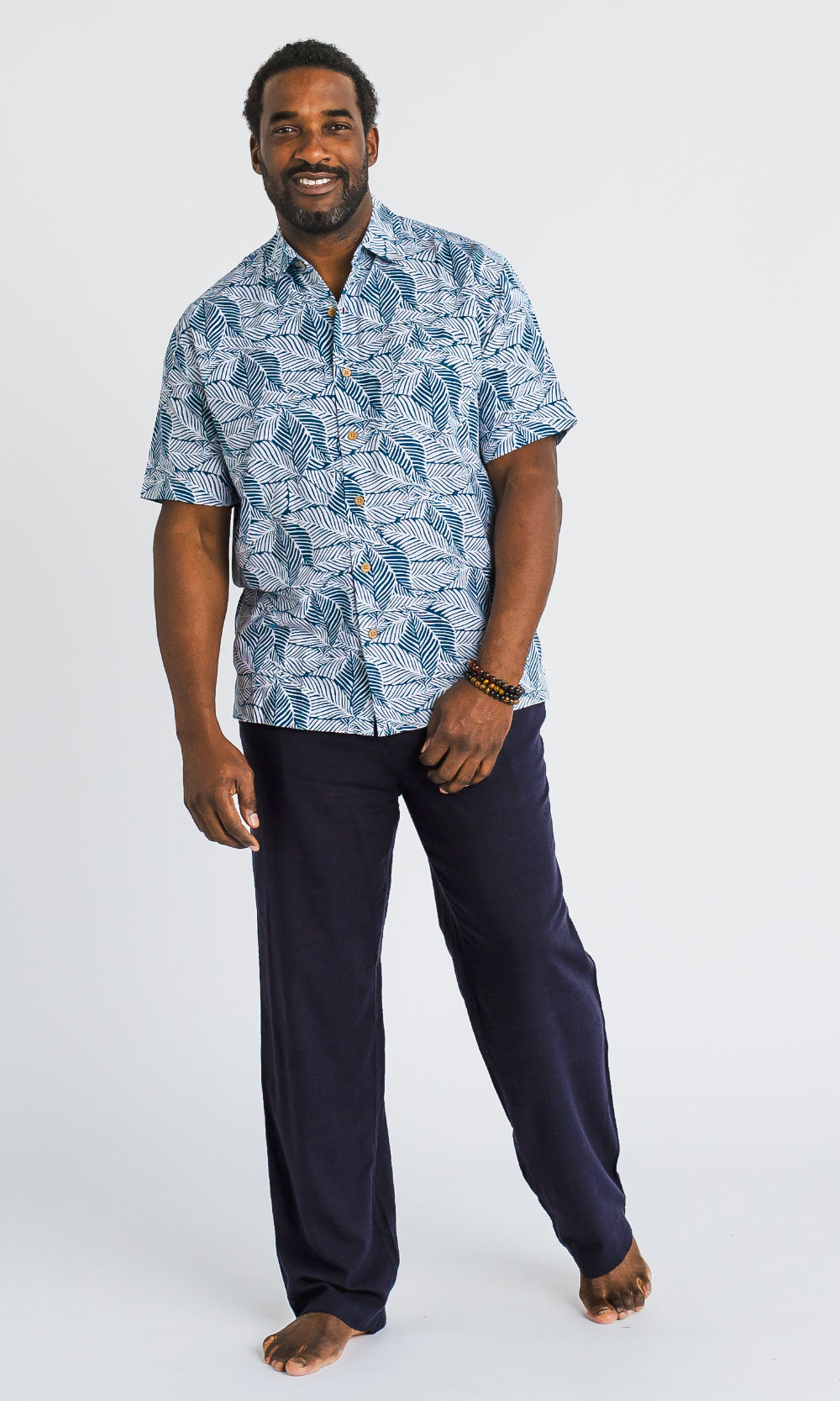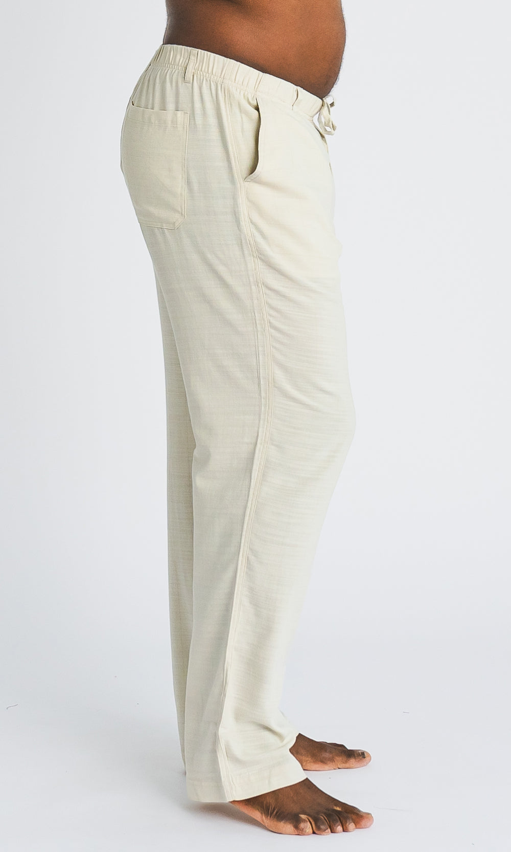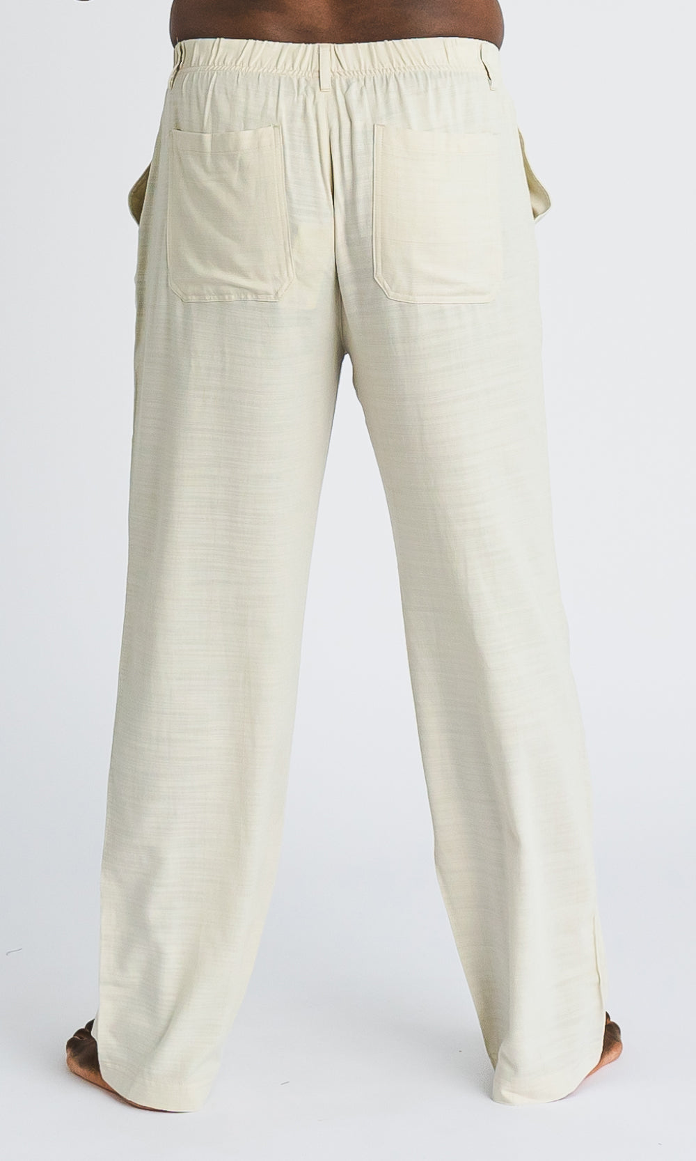 At Azure we love our bamboo fibre, and so will you. It is cool, comfortable and easy to care for. These are our men's pants, they have side pockets, back pockets, and a zip/fly front, as well as an elasticated waist for comfort.
