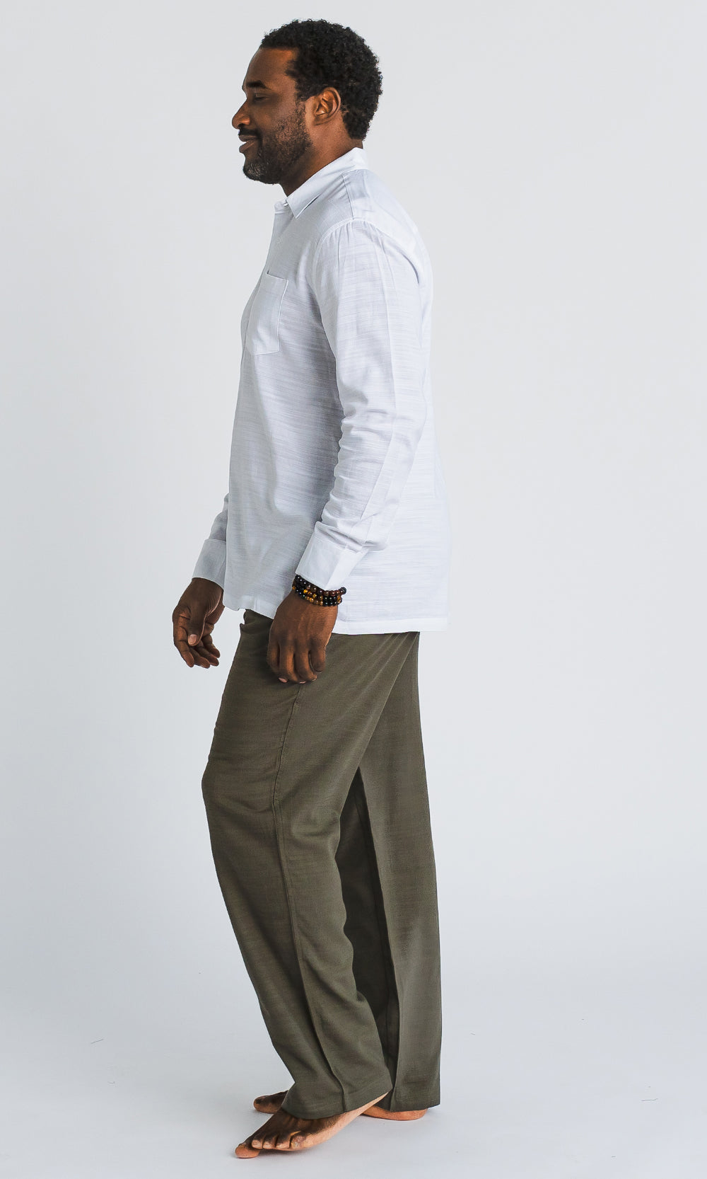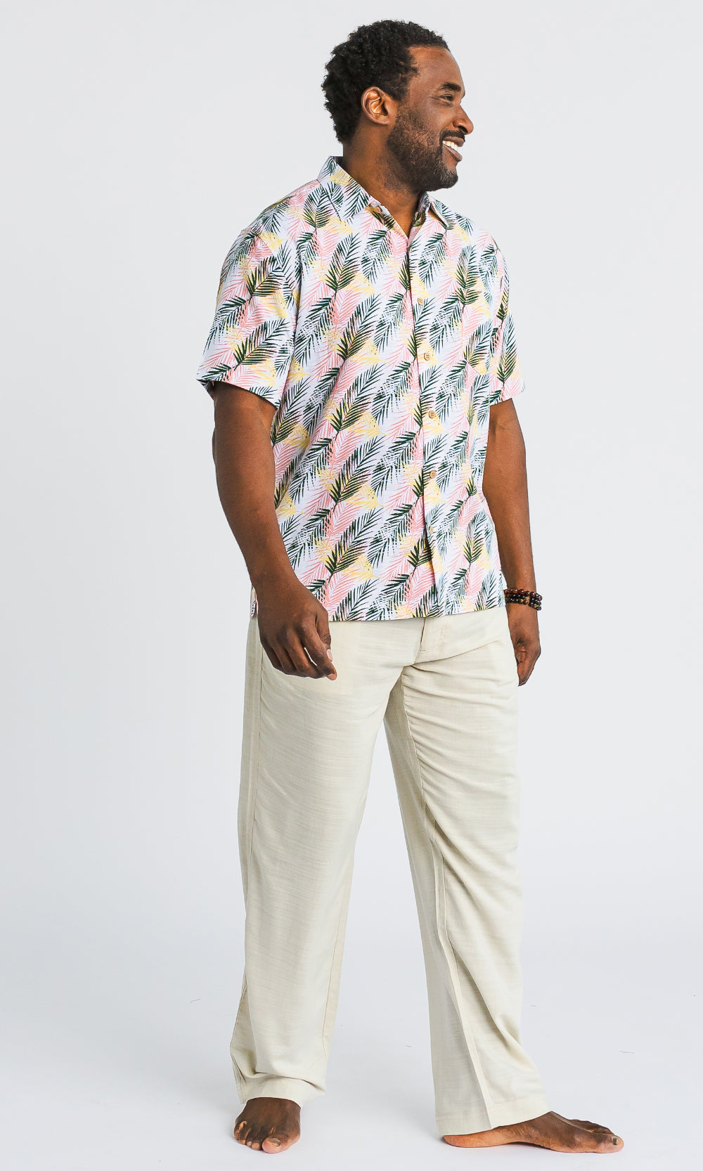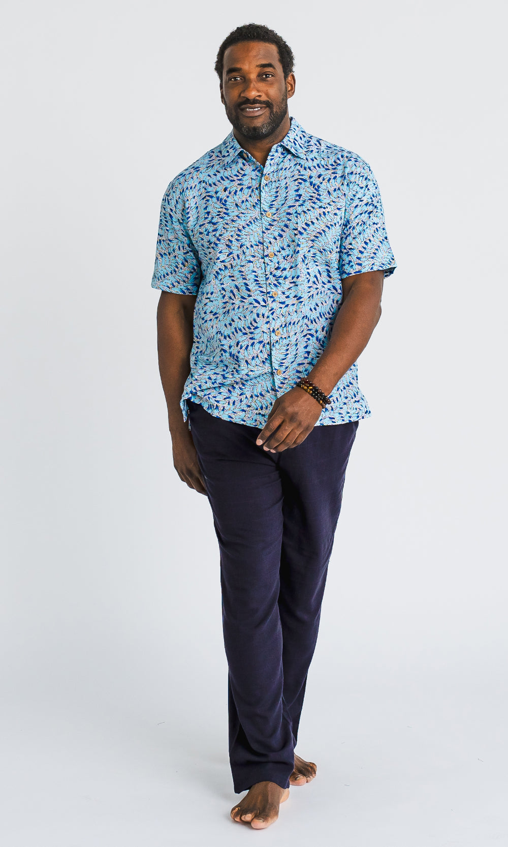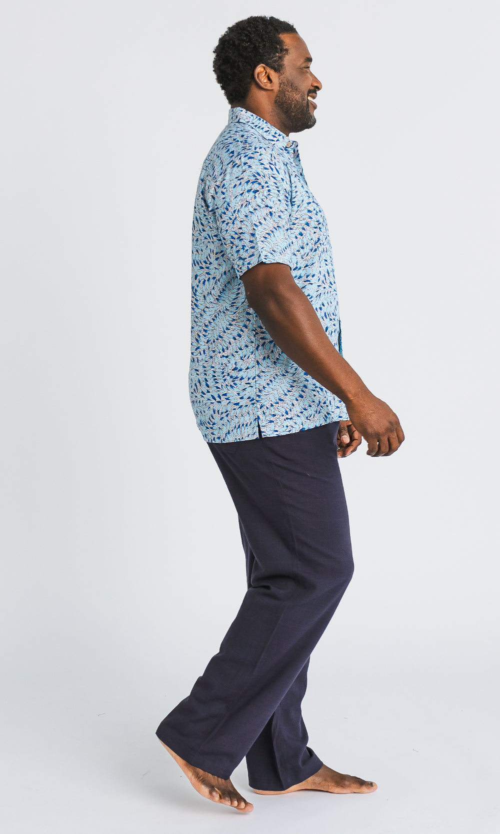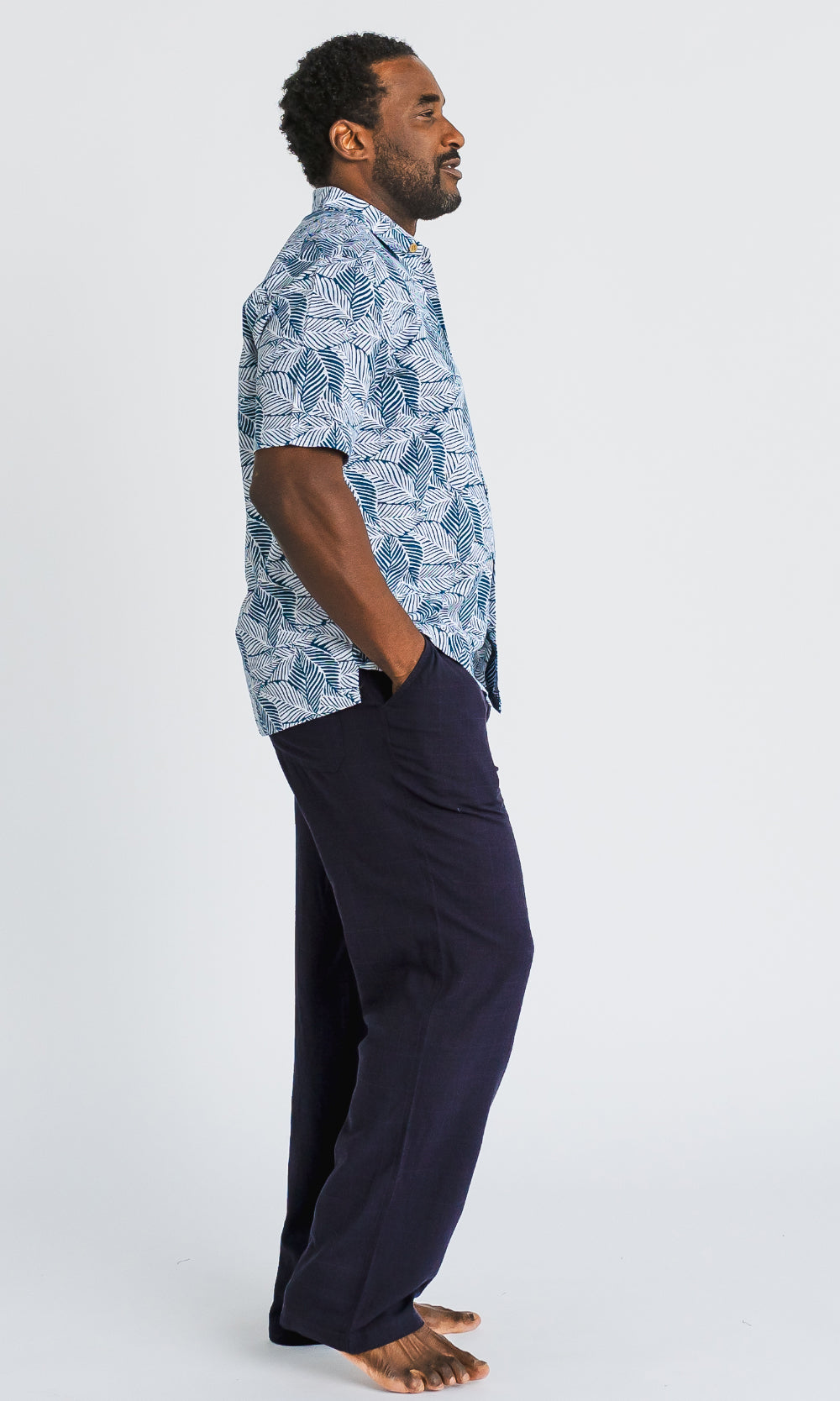At Azure we love our bamboo fibre, and so will you. It is cool, comfortable and easy to care for. These are our men's pants, they have side pockets, back pockets, and a zip/fly front, as well as an elasticated waist for comfort.