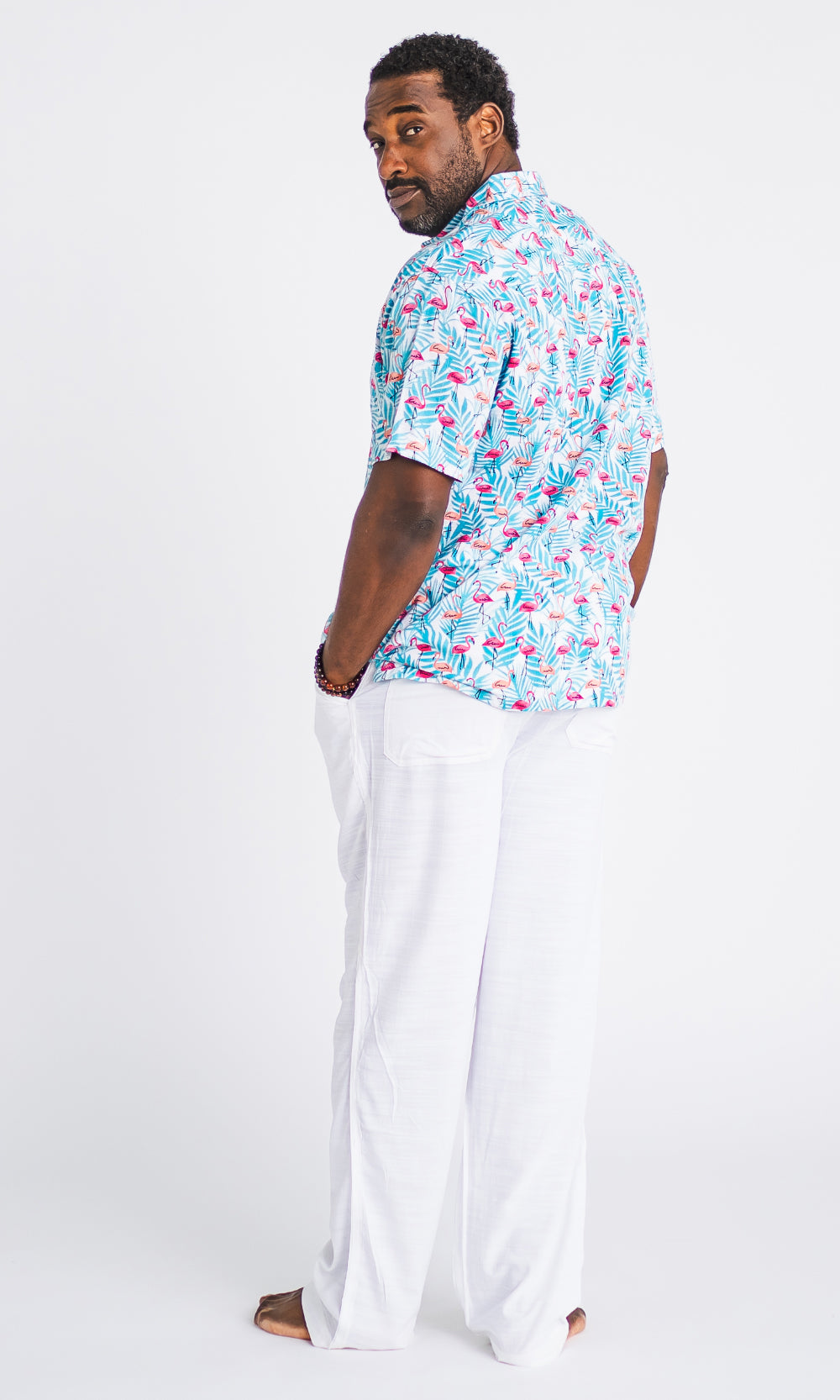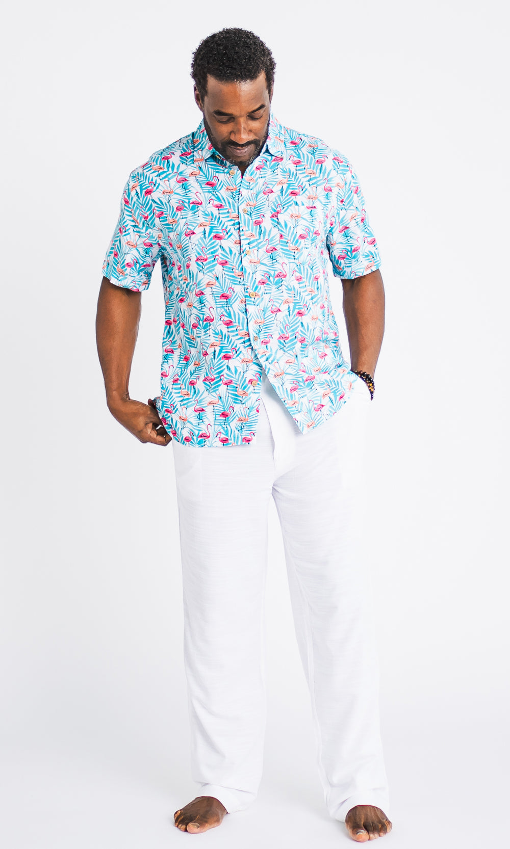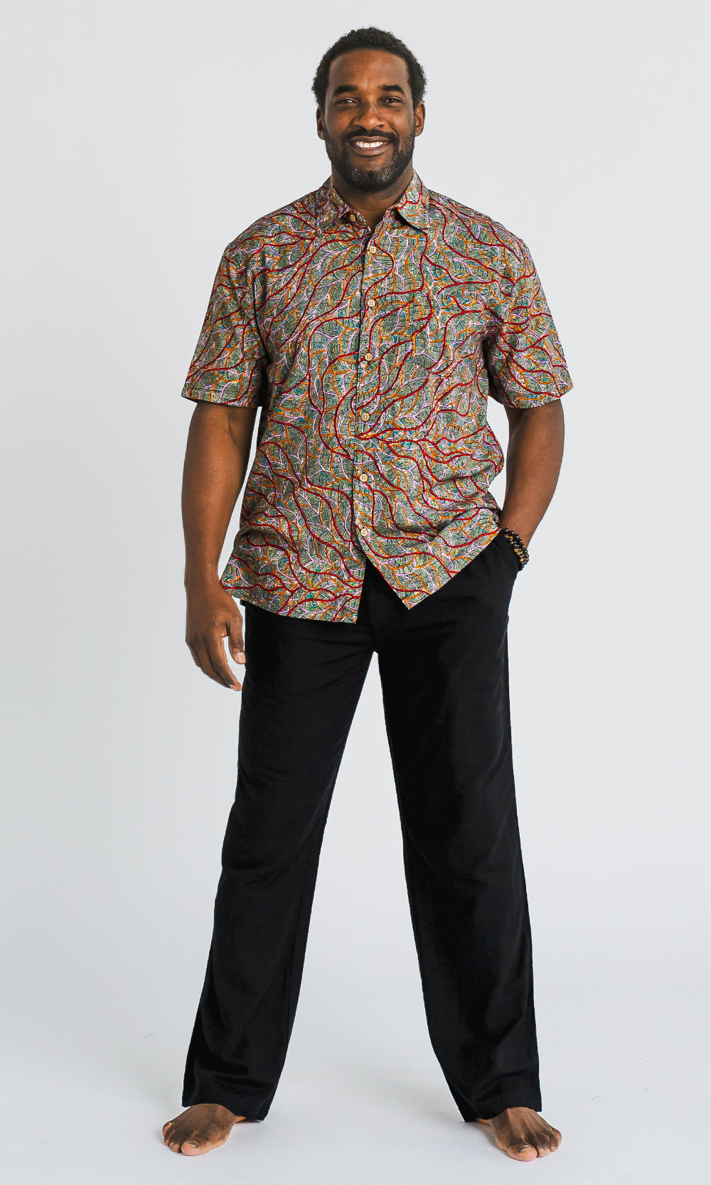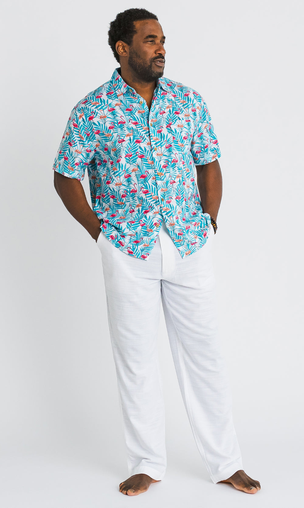 At Azure we love our bamboo fibre, and so will you. It is cool, comfortable and easy to care for. These are our men's pants, they have side pockets, back pockets, and a zip/fly front, as well as an elasticated waist for comfort.