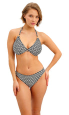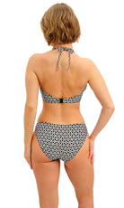 Koh Tao is bringing back the charm of vintage vacations for SS26, featuring a retro inspired monochrome print combined with gold coloured highlights for a modern twist. Select shapes are accented with textured, gold coloured rings for a luxe feel and the collection debuts our new Brazilian Brief, which offers a cheeky bottom coverage and a flattering back gather detail.