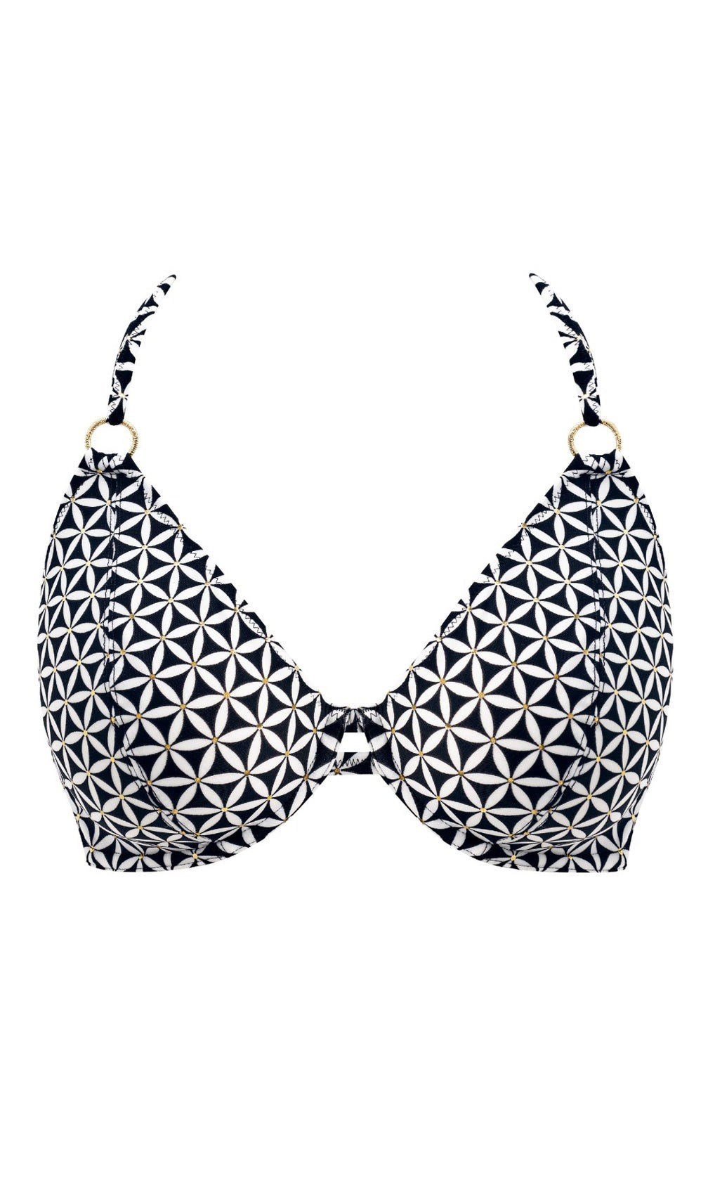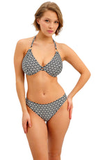 Koh Tao is bringing back the charm of vintage vacations for SS26, featuring a retro inspired monochrome print combined with gold coloured highlights for a modern twist. Select shapes are accented with textured, gold coloured rings for a luxe feel and the collection debuts our new Brazilian Brief, which offers a cheeky bottom coverage and a flattering back gather detail.