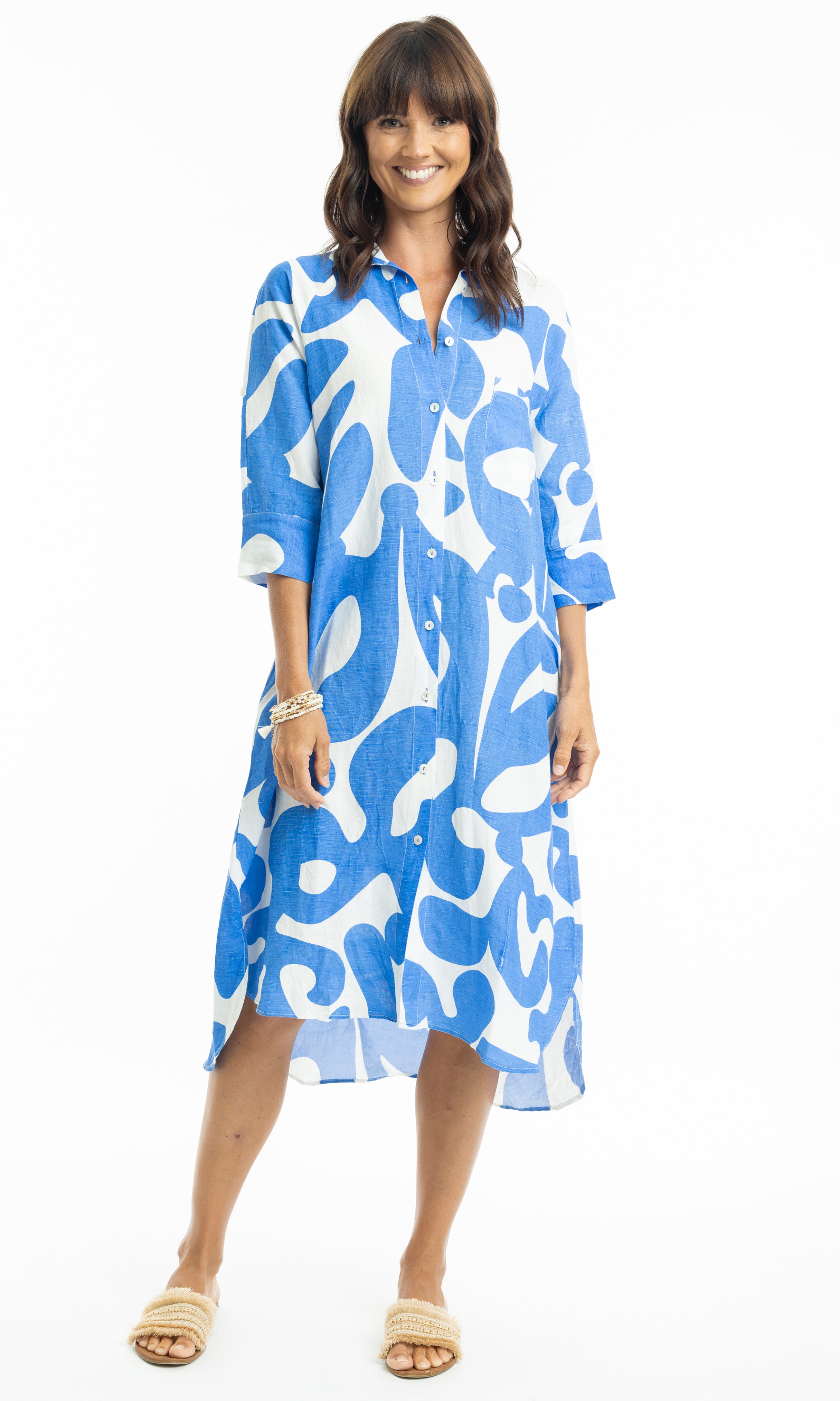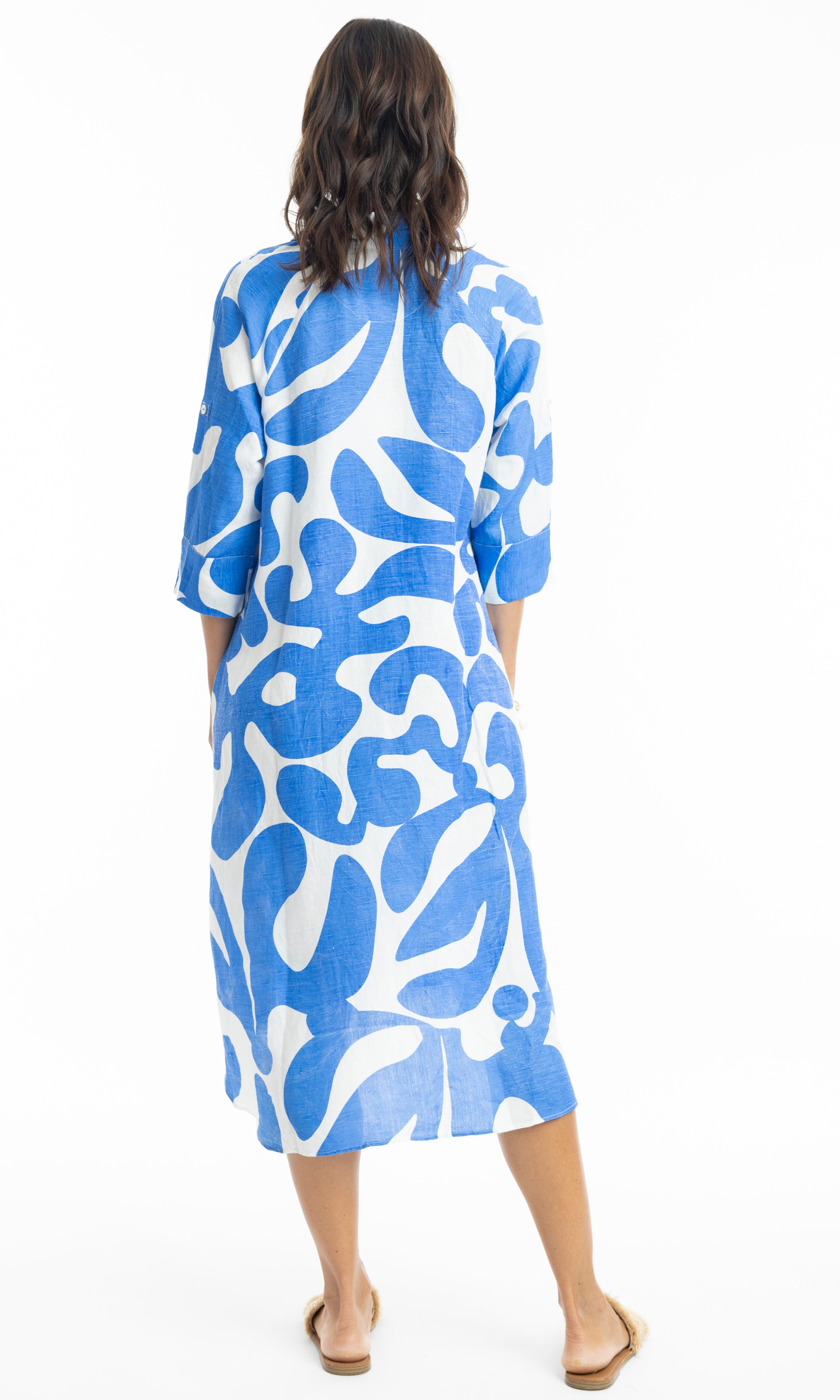 Linen Dress Midi Collar Shirt