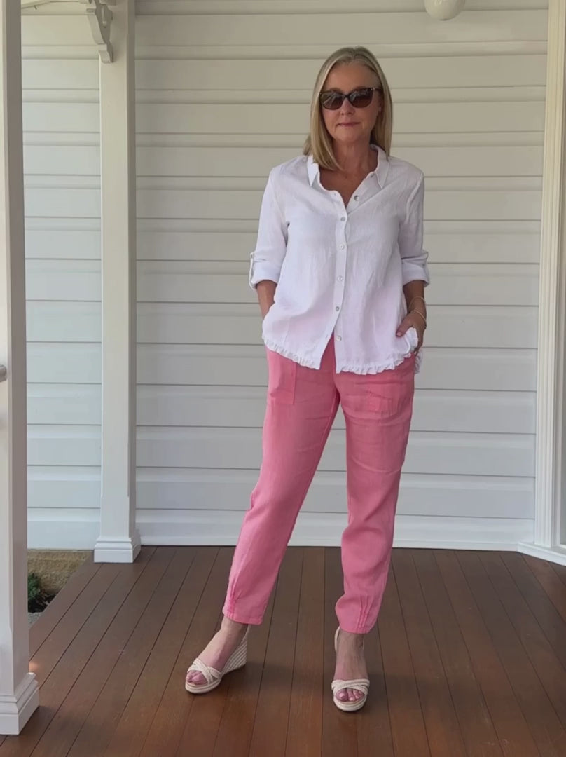 The Jersey Waist Linen Pant is one of our best sellers, loved for its relaxed casual style and fit. Styled in our signature washed linen that is both soft and easy to care for. It's the perfect wear anywhere pant.