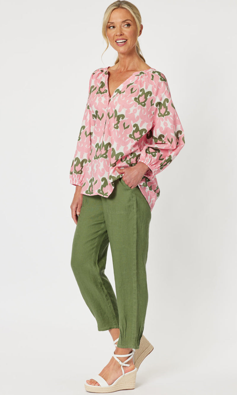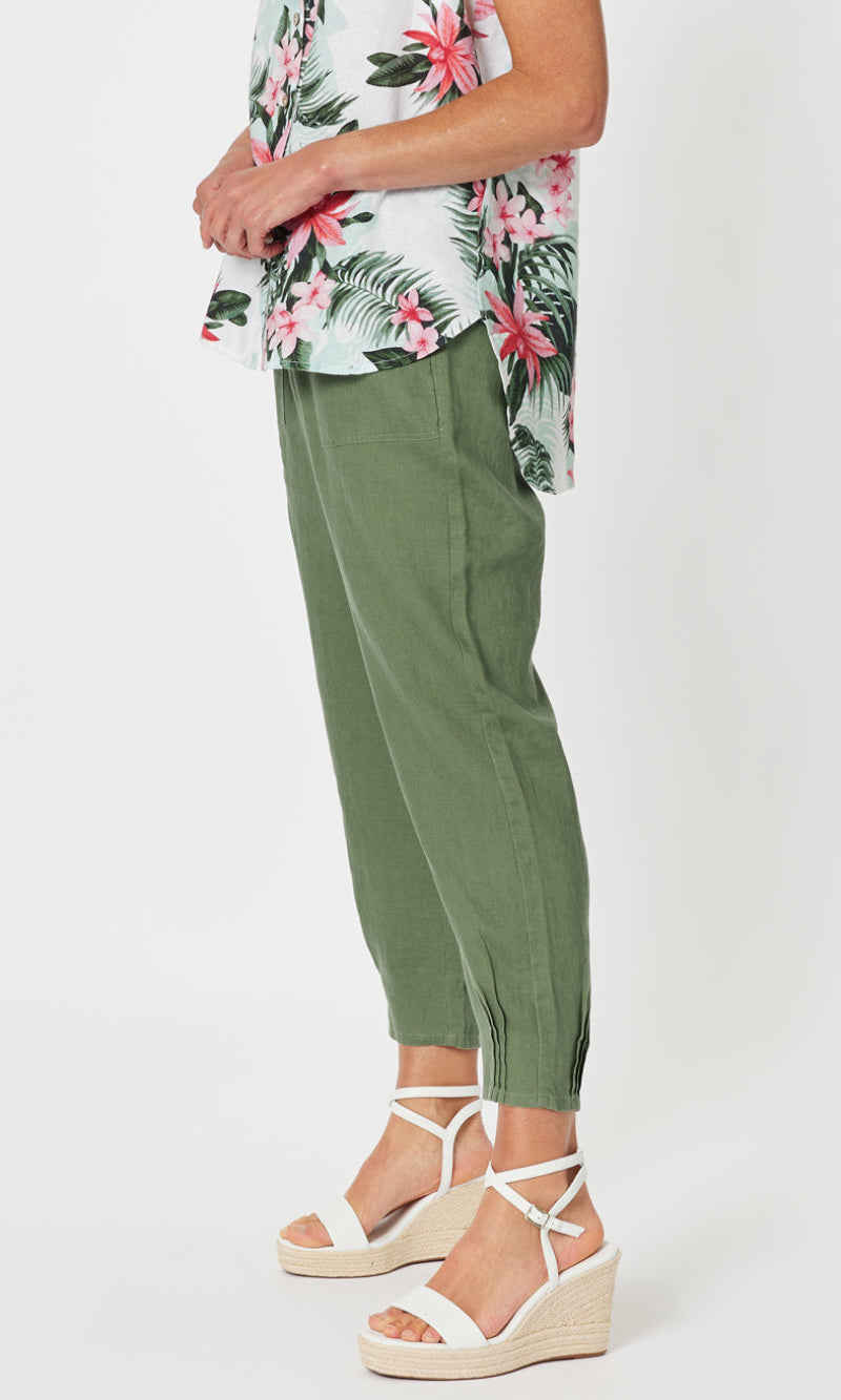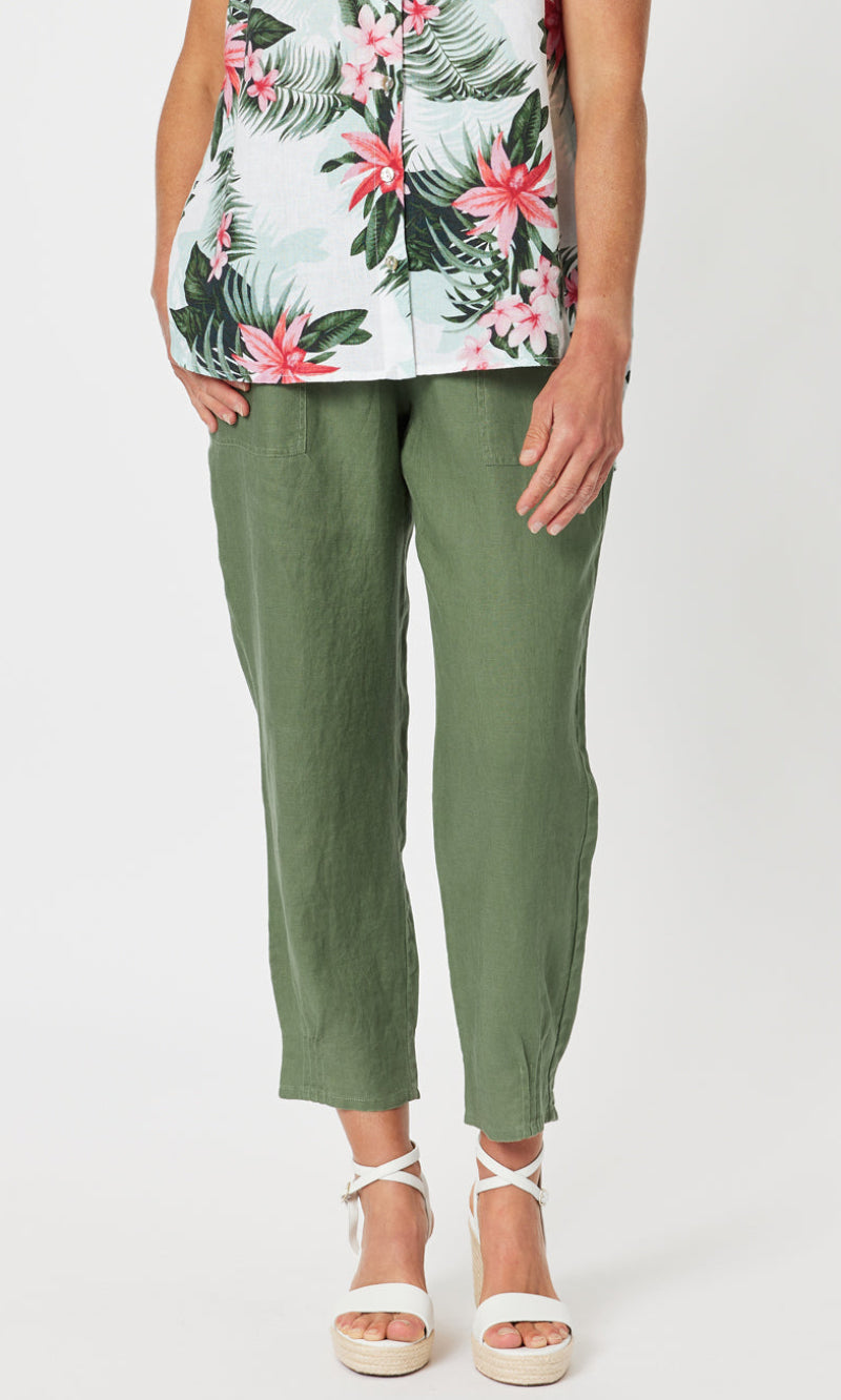 Linen Pant Jersey Waist Khaki