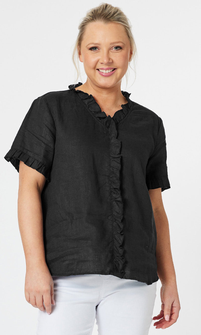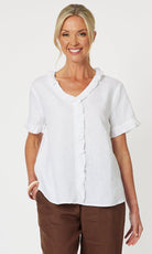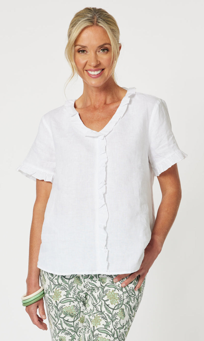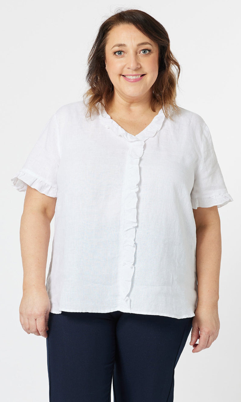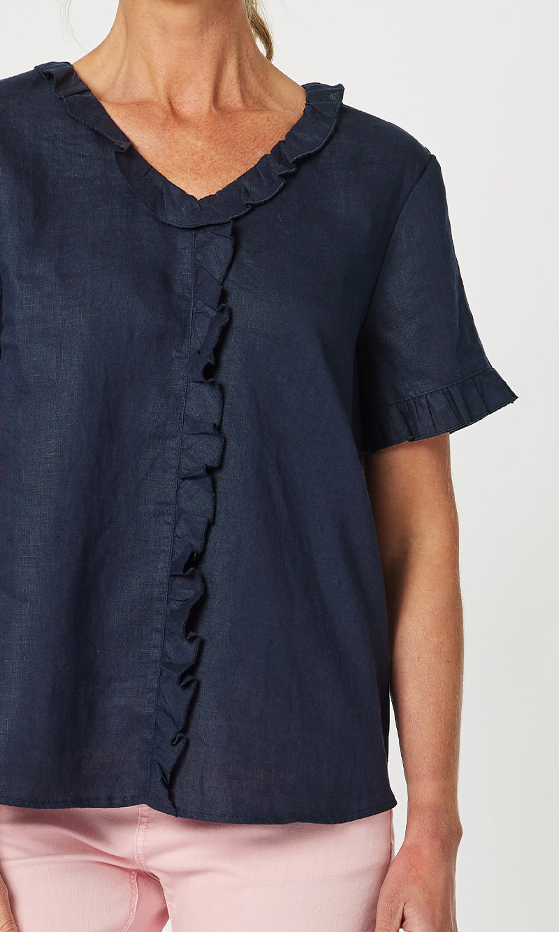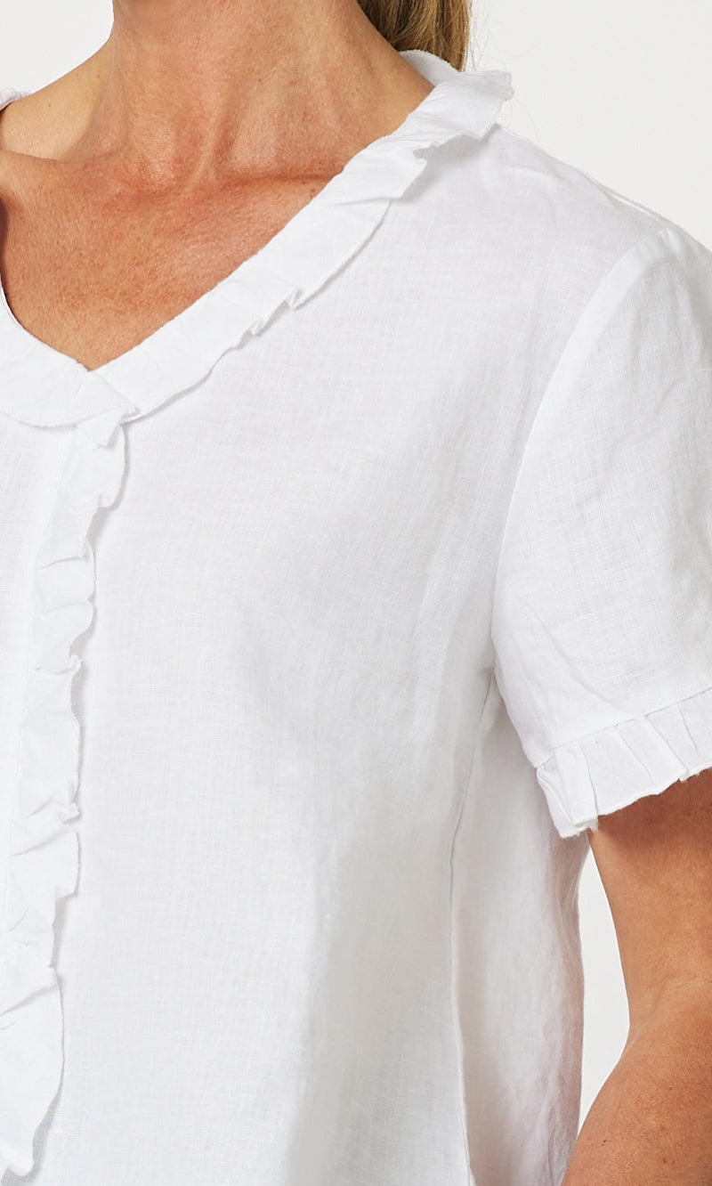 - They say it's all in the detail and our Tiffany Ruffle Linen Top has the most beautiful ruffle trim detail!
