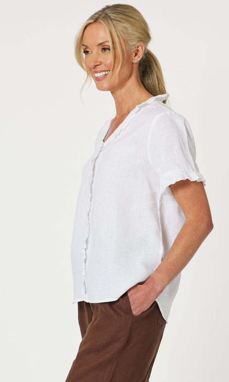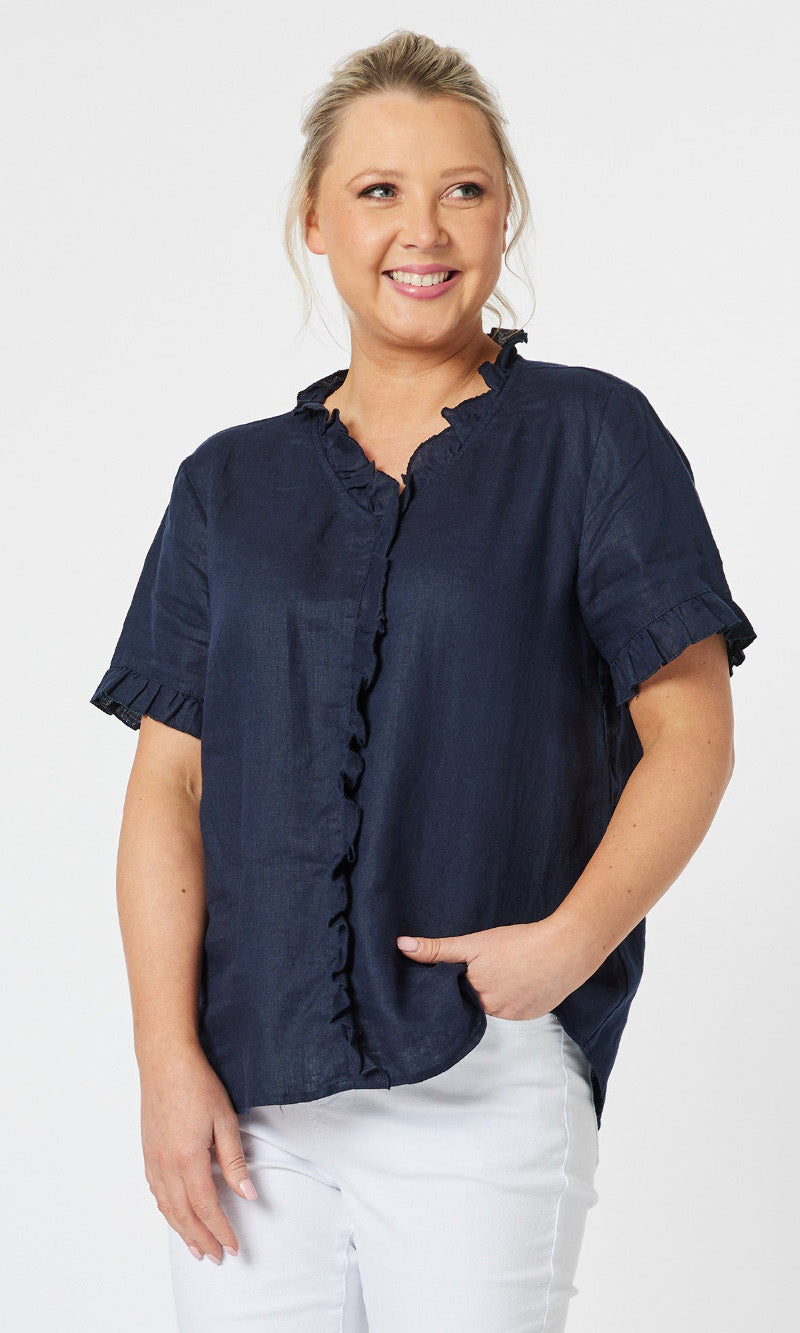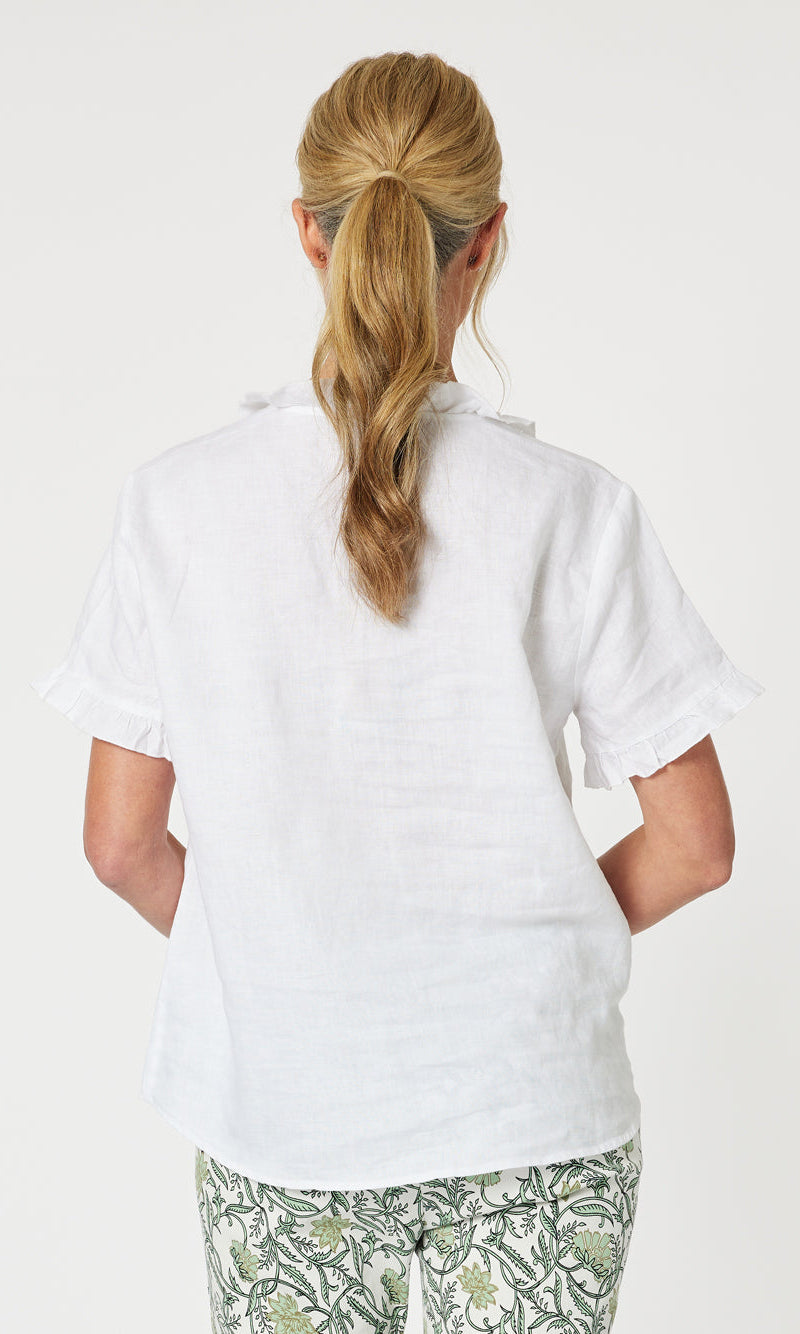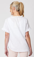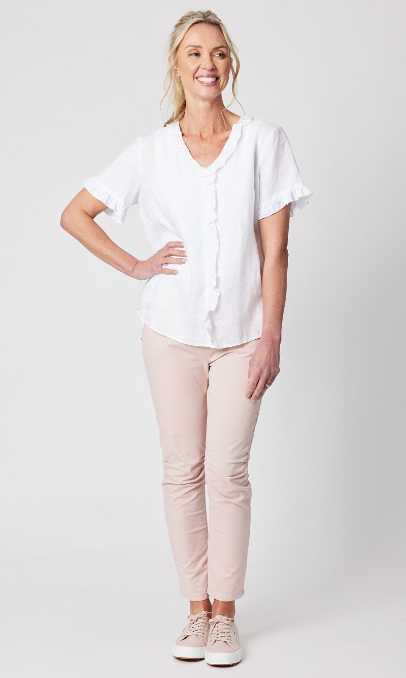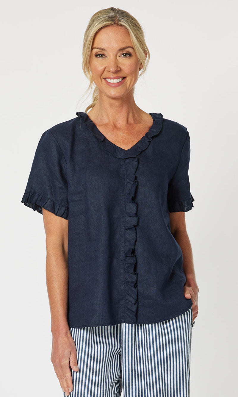 - They say it's all in the detail and our Tiffany Ruffle Linen Top has the most beautiful ruffle trim detail!