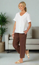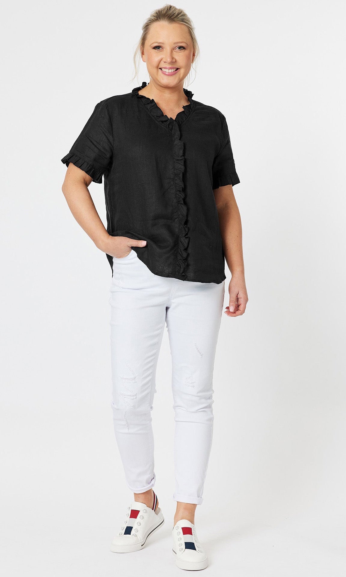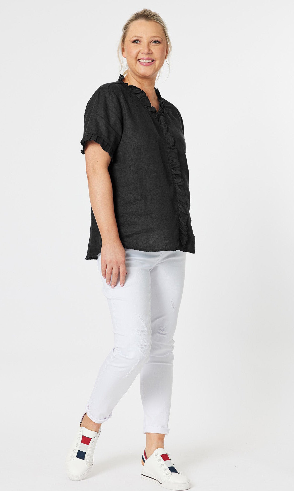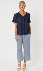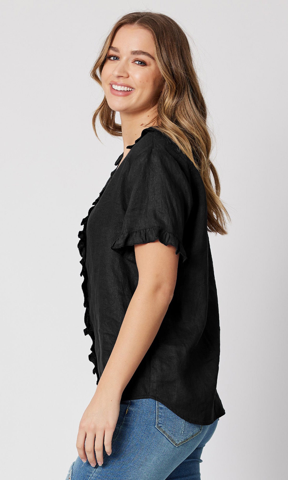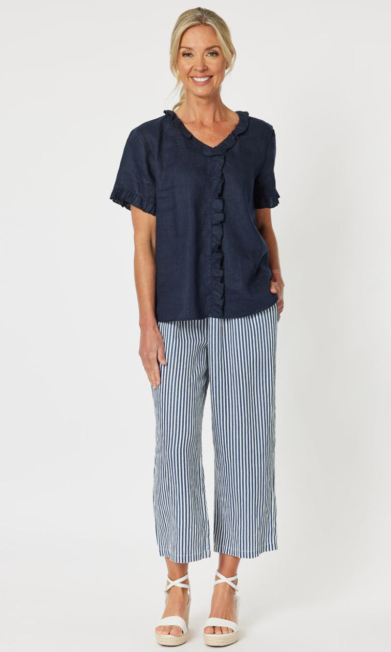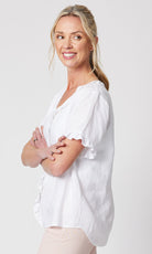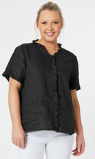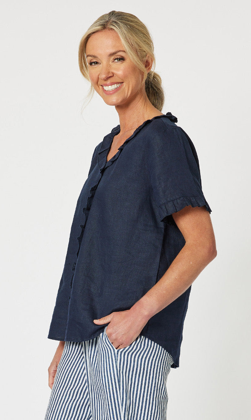 - They say it's all in the detail and our Tiffany Ruffle Linen Top has the most beautiful ruffle trim detail!
