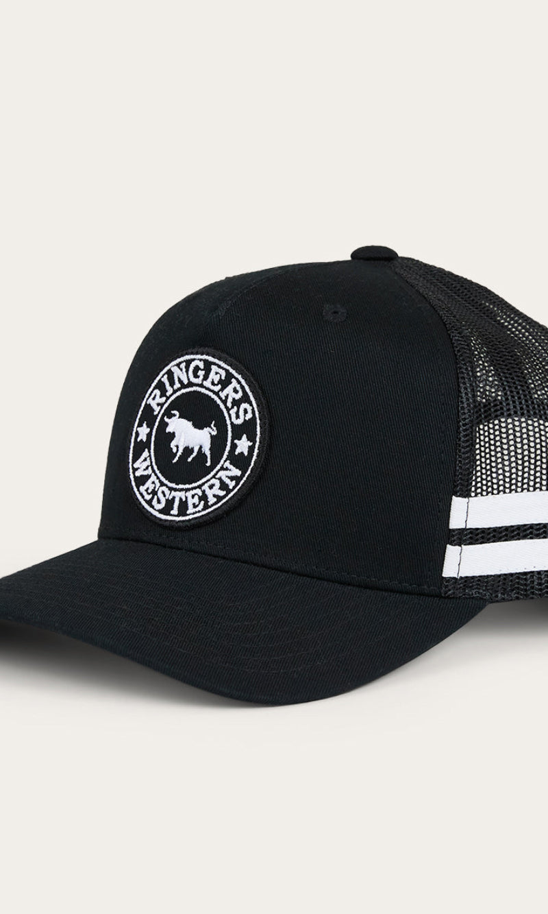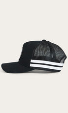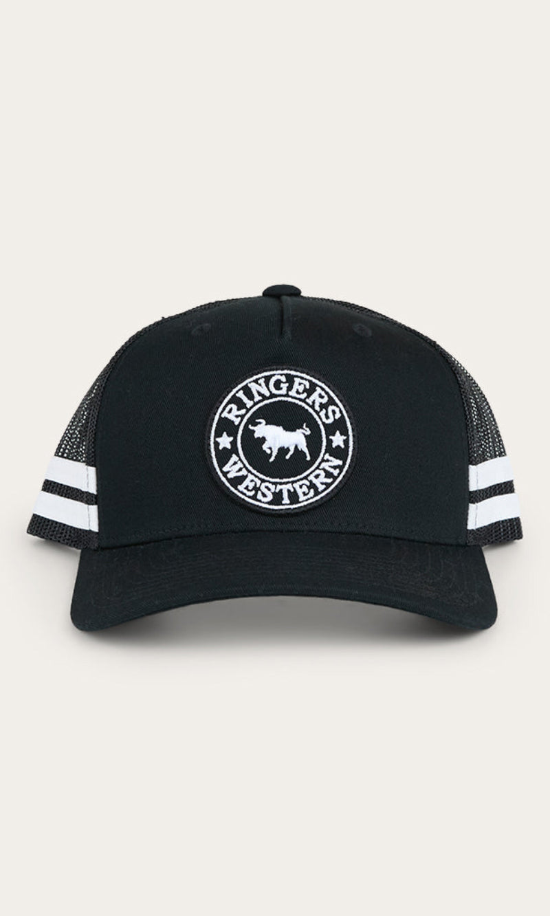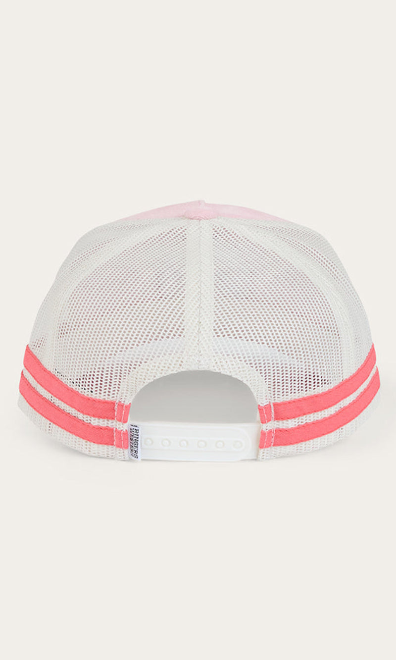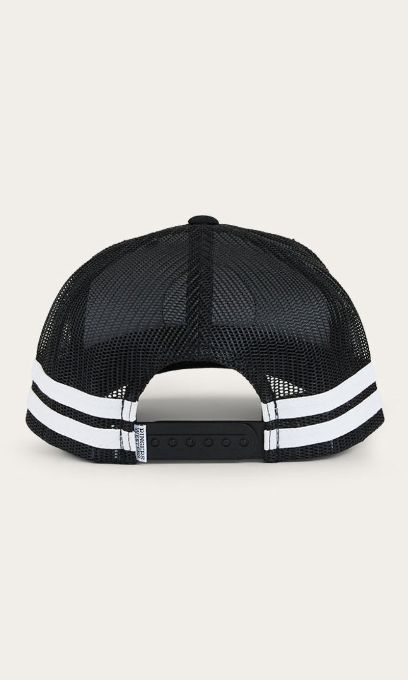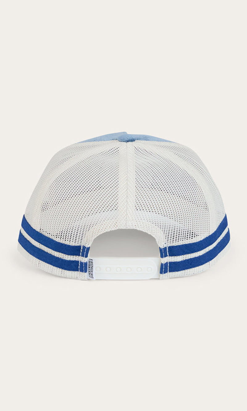 The Kids McCoy Trucker cap features an embroidered logo patch. This hat has our classic trucker cap shape, black mesh back panels and a black snap closure. The McCoy also features a contrast colour under the brim.
