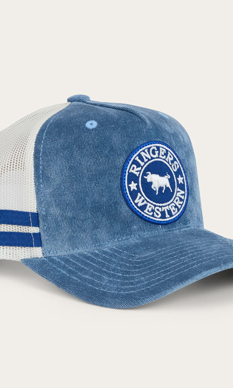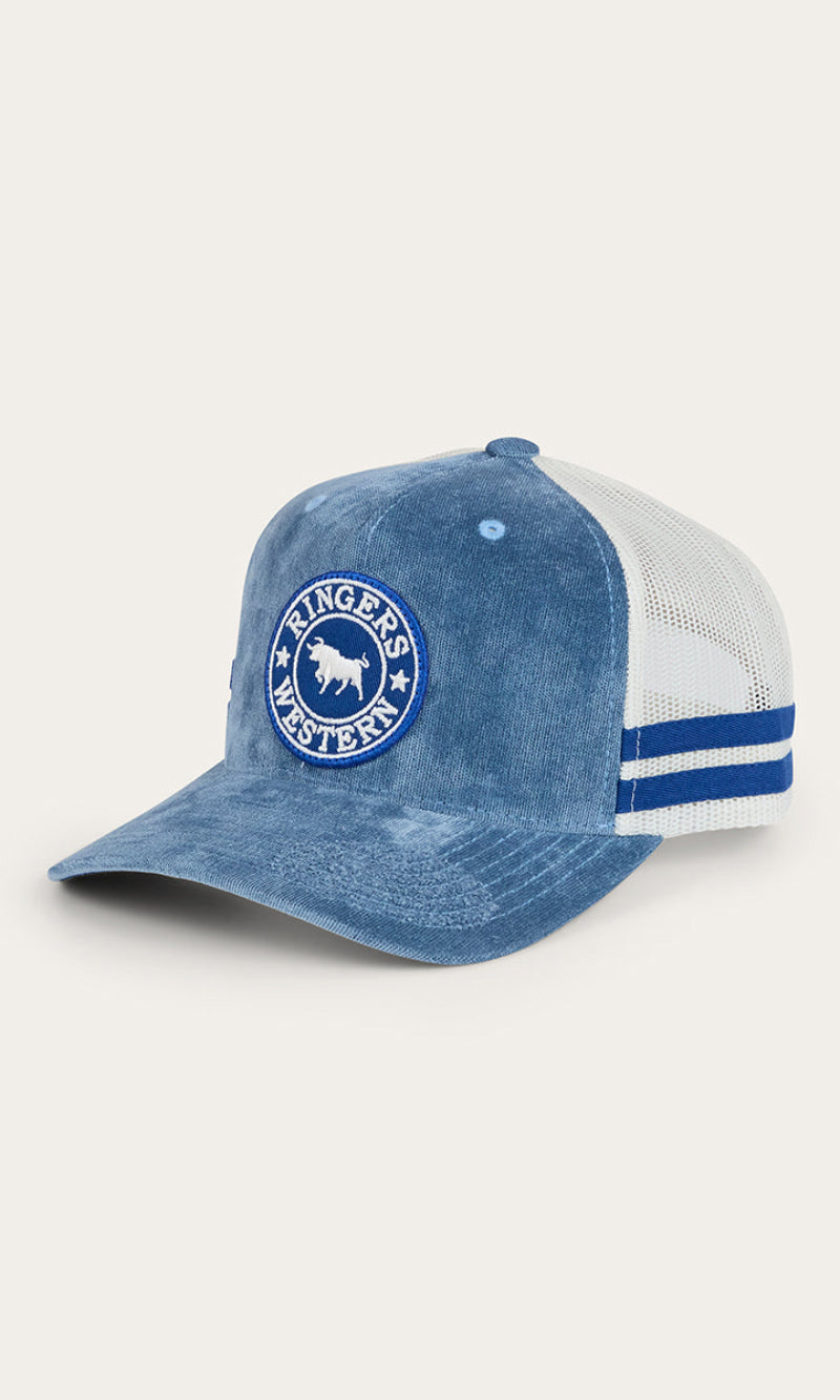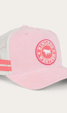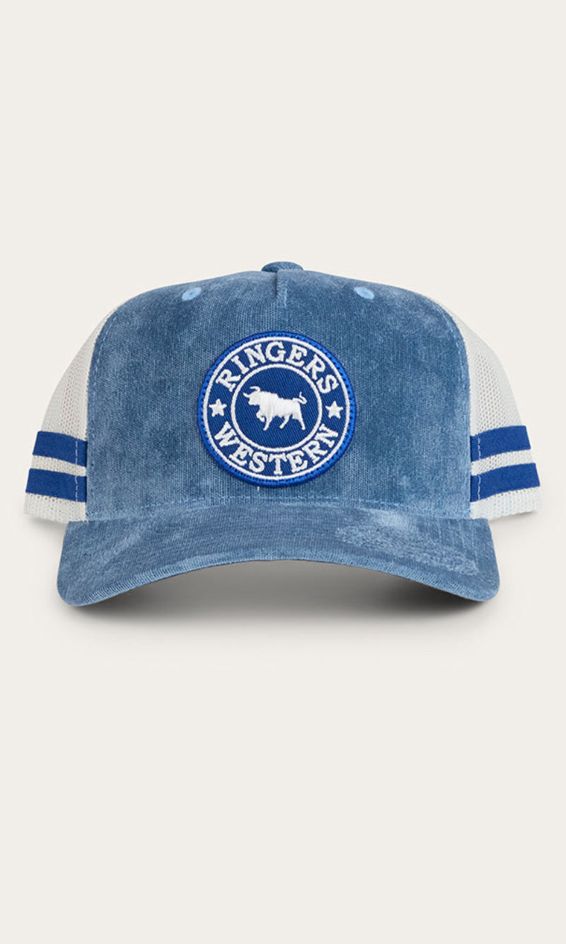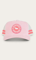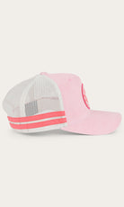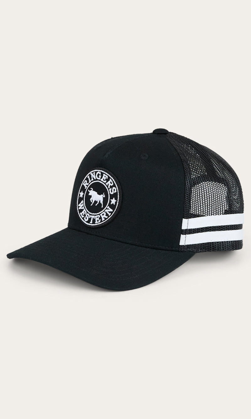 The Kids McCoy Trucker cap features an embroidered logo patch. This hat has our classic trucker cap shape, black mesh back panels and a black snap closure. The McCoy also features a contrast colour under the brim.