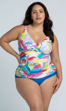 Artesands Fits Your Curves. Our Delacroix tankini top is our wire free comfort and support style. Every woman needs a swimsuit that makes you feel good when you put it on and this is our curve fit and plus size shape Delacroix. This style has a cross front design with multifit cup support that fits a D cup , DD cup, E cup, F cup and a G cup. Delacroix has full body 360 degree powermesh and front body ruching for body sculpting confidence. A tankini is the perfect option for full coverage when you need a different size top and bottom. This make a perfect curve fitting tankini set when bought as a pair. Our curve fit and plus size tankini tops are a long line to avoid the fabric riding up when you're in the water.