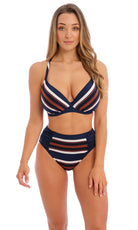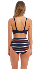 Ocean Cove features a contemporary stripe design in copper and black, highlighted with soft ivory, on an ink ground. All styles have been crafted from a Spanish knitted fabric for a soft touch against the skin that feels extra luxurious too. Pair either of the underwired bikini tops with our mid or high rise briefs for a flattering look this season.