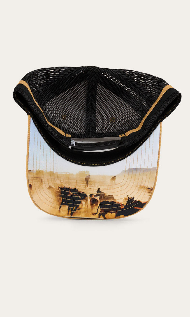 Introducing the Pendleton Kids Trucker Cap—combining rugged style with kid-friendly charm. This cap features the iconic Signature Bull logo on the front and a delightful countryside image under the peak, adding an extra touch of character. The structured front peak shields little faces from the sun, while the breathable mesh back provides cooling ventilation on warm days. With twill side stripes and an adjustable snapback closure, the Pendleton offers a comfortable and customizable fit for all-day wear.