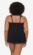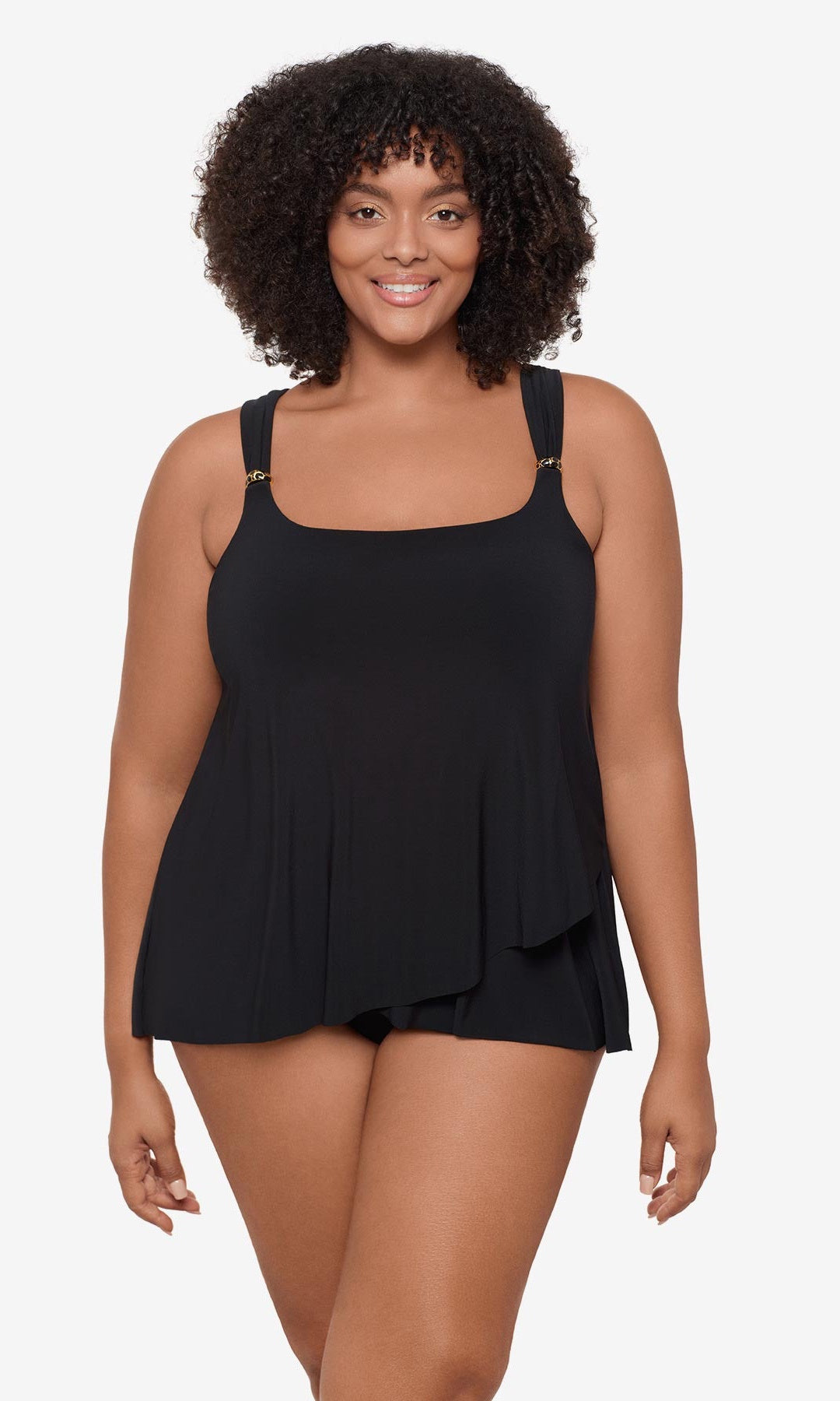 Here to do exactly what it says: razzle and dazzle. This tankini top isn’t just another of the plus-size bathing suits—it accentuates the bust, shapes your curves, and catches the light. So go ahead, give ‘em a little glam in one of the most flattering plus-size swimsuits.