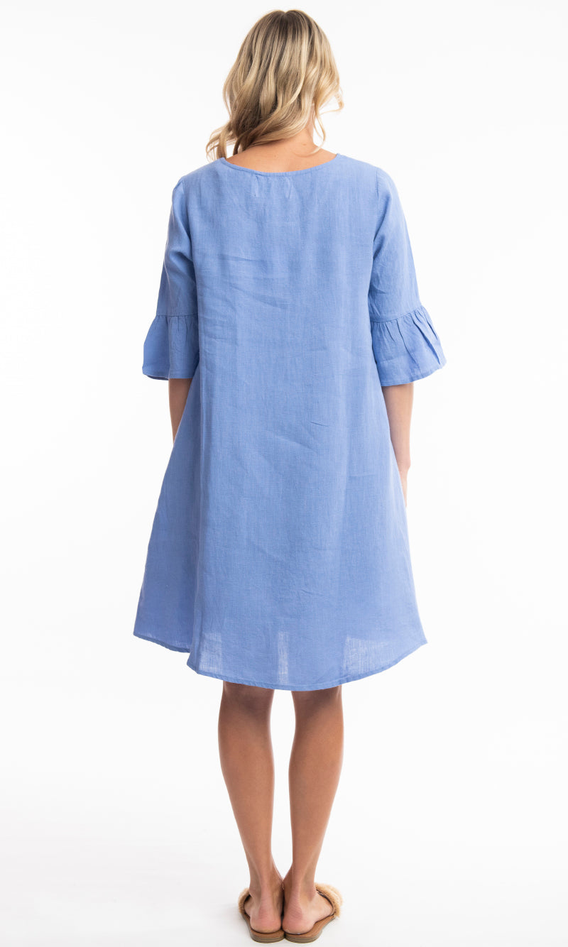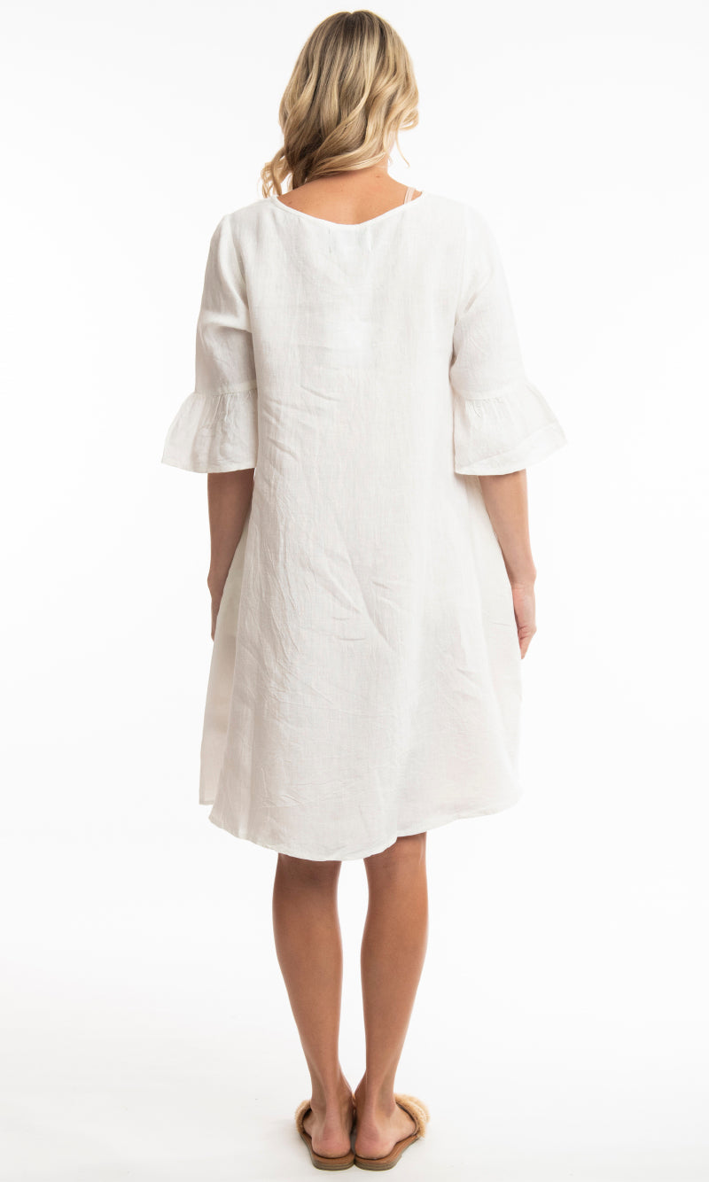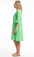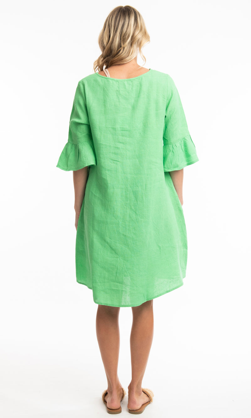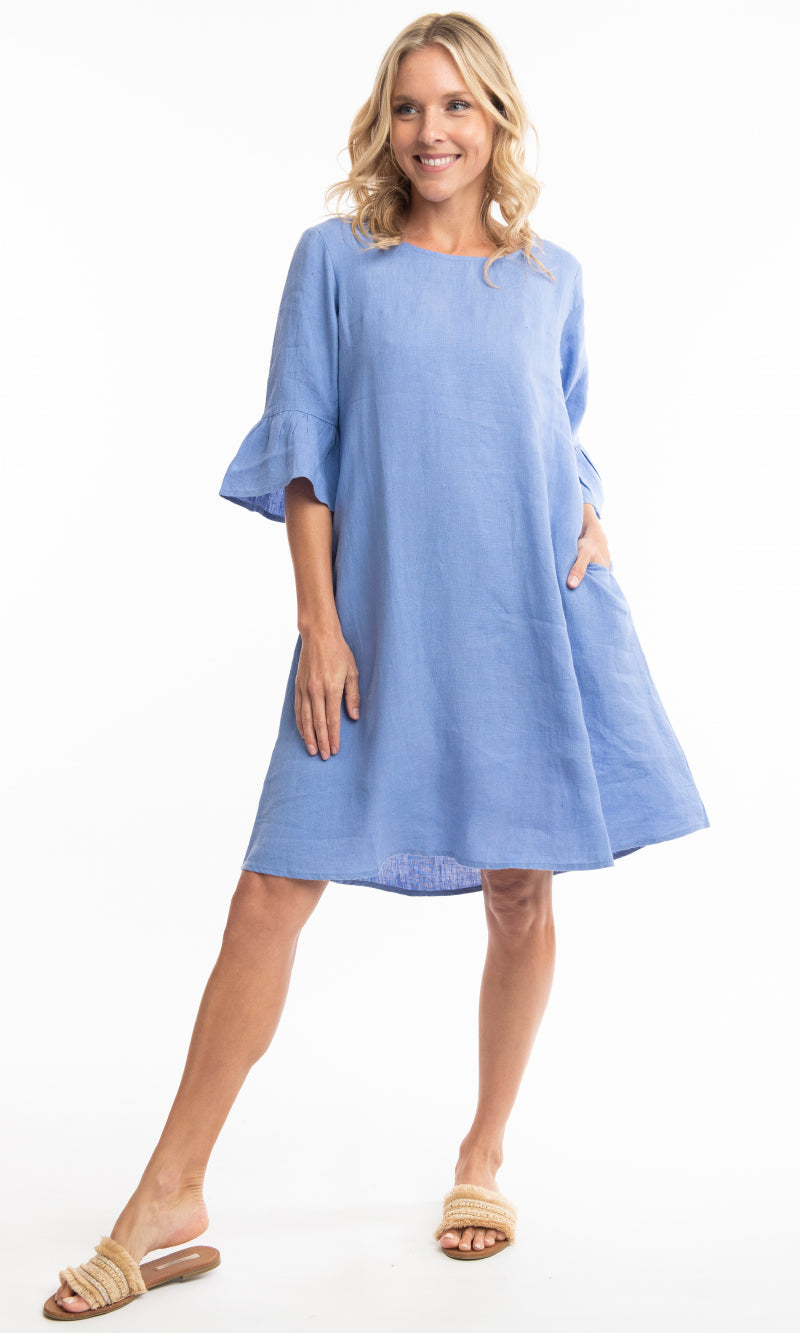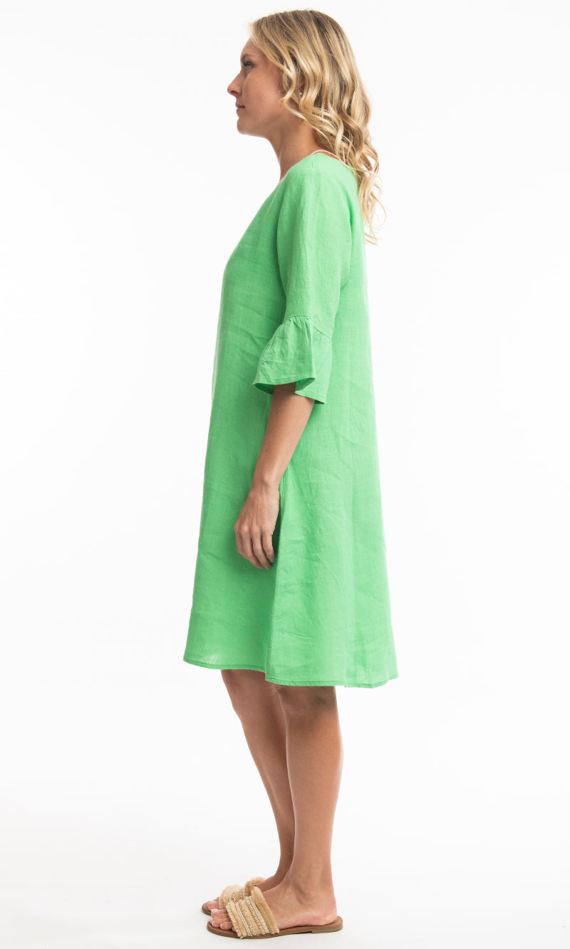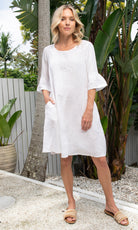 Pure Linen Dress Frill Sleeve Solid, More Colours