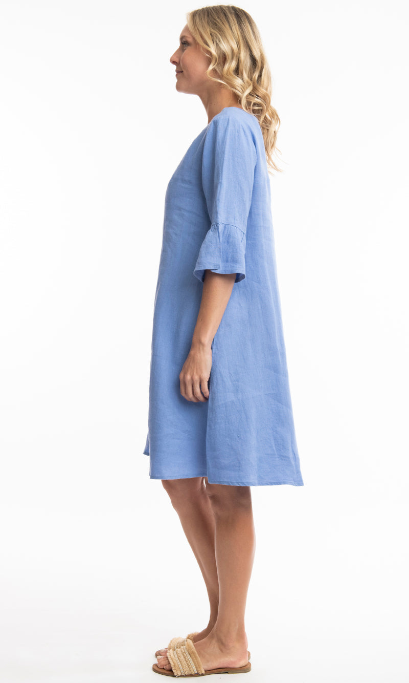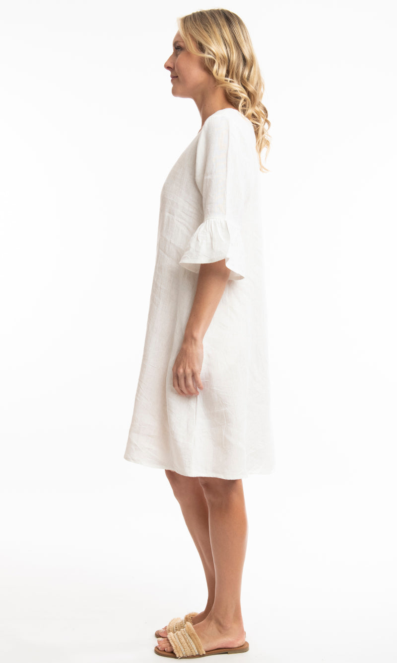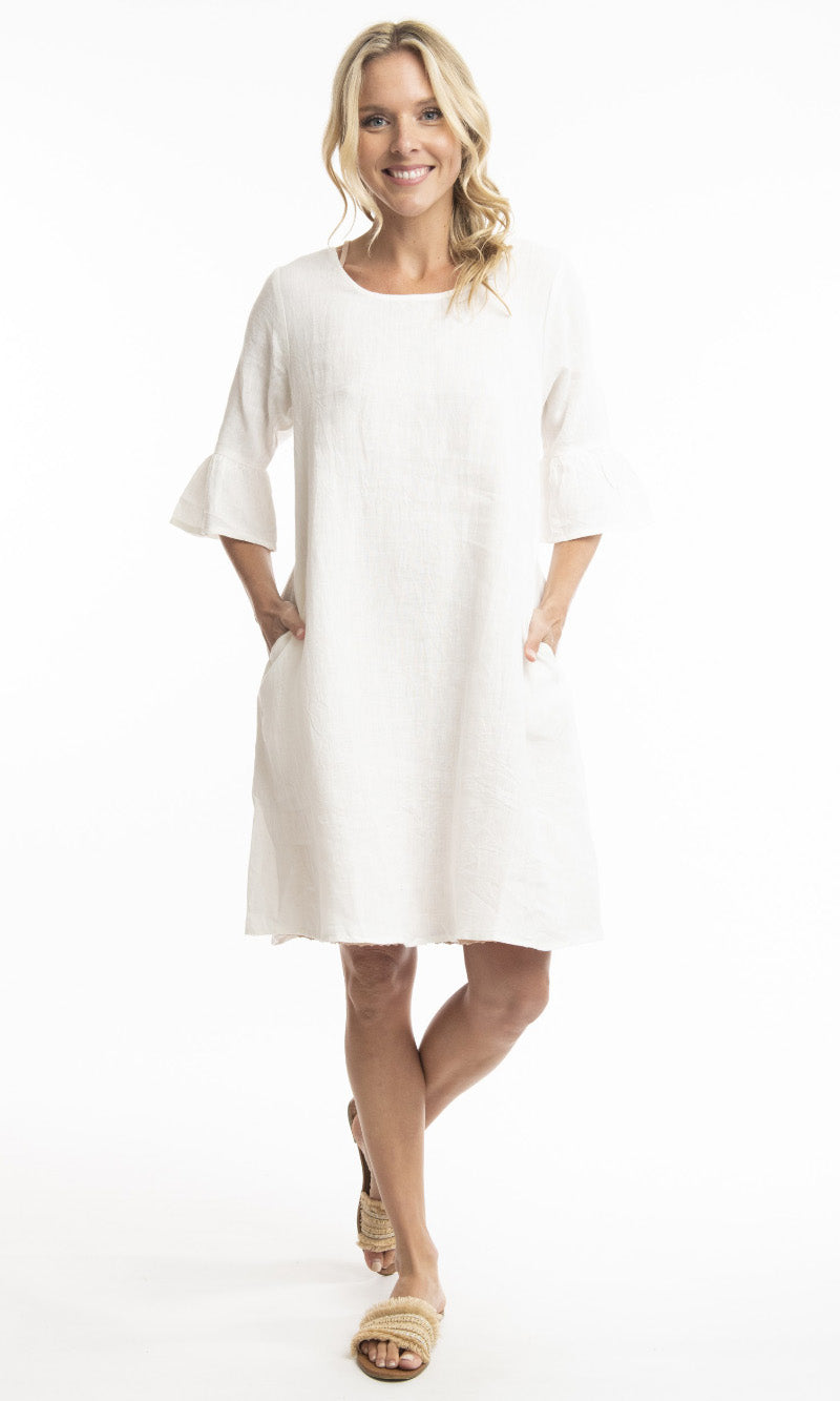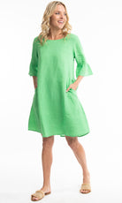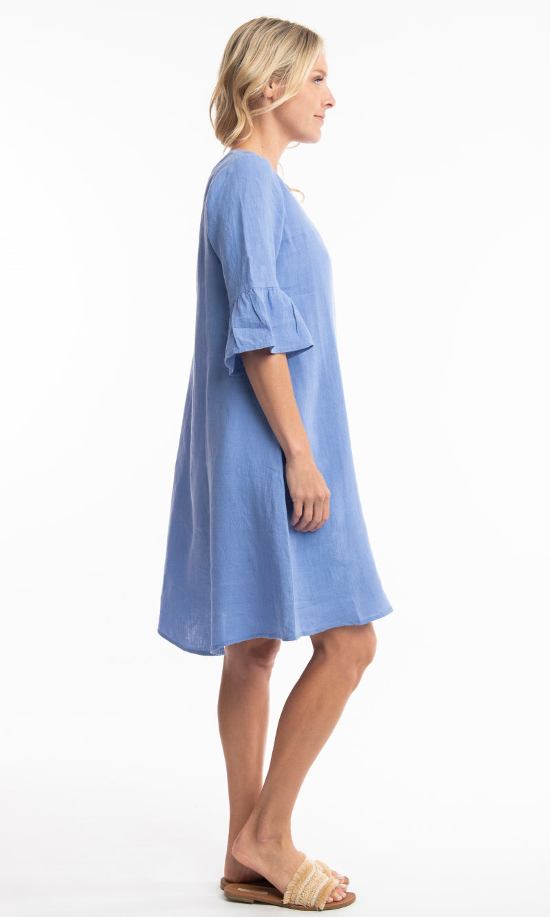 Pure Linen Dress Frill Sleeve Solid, More Colours