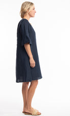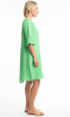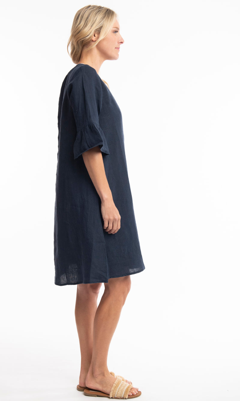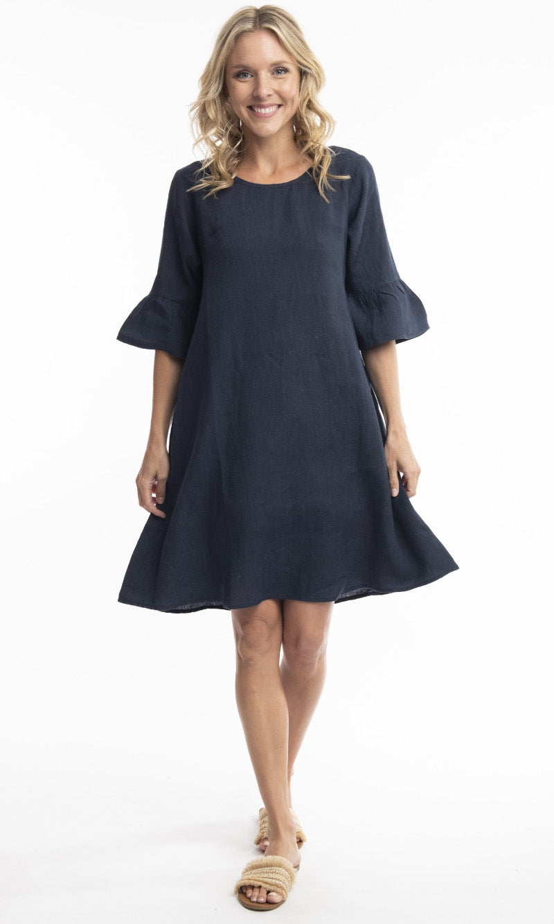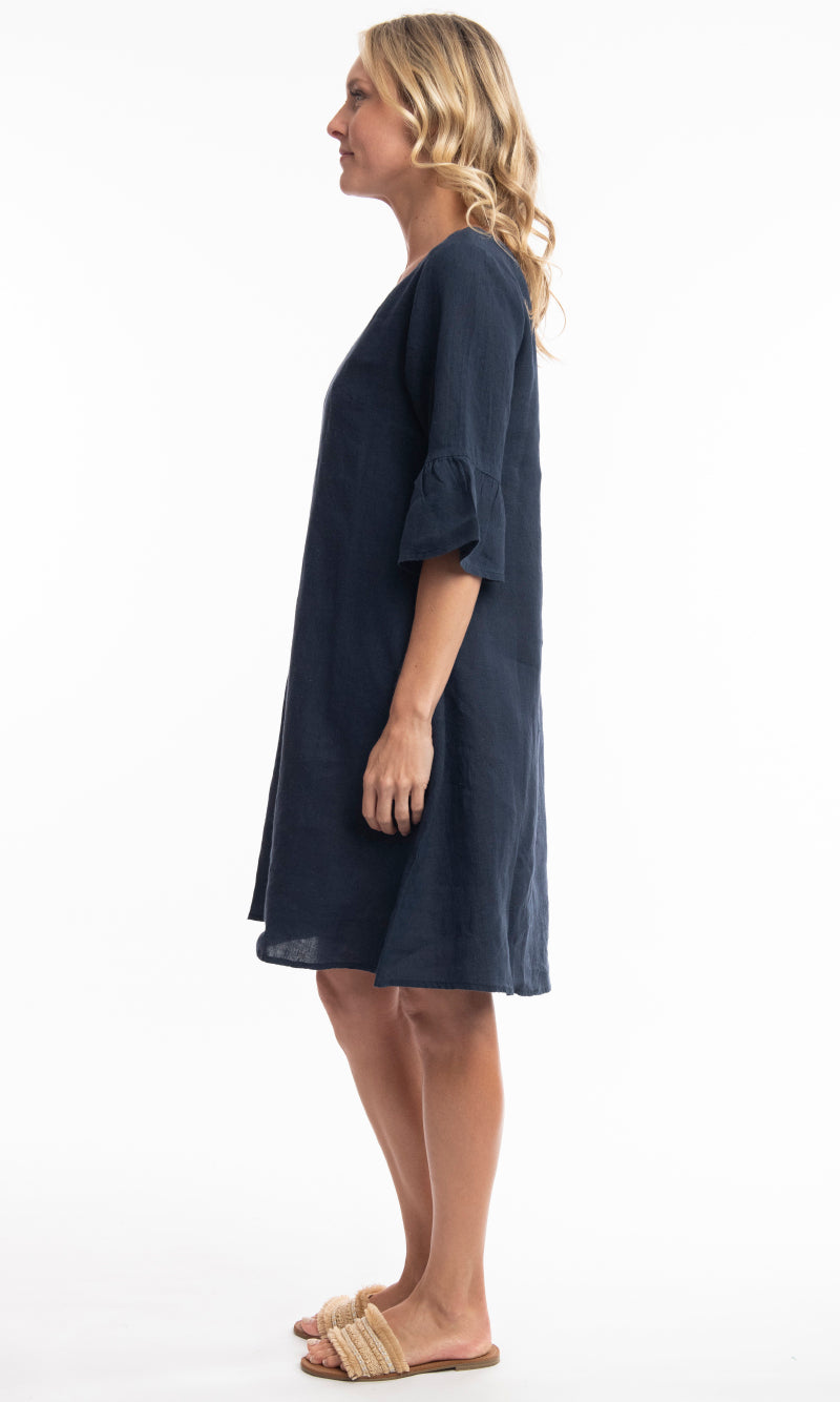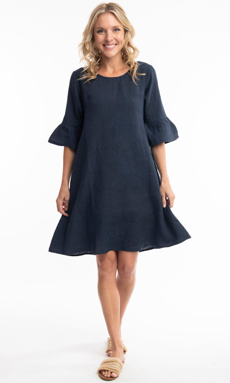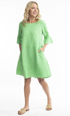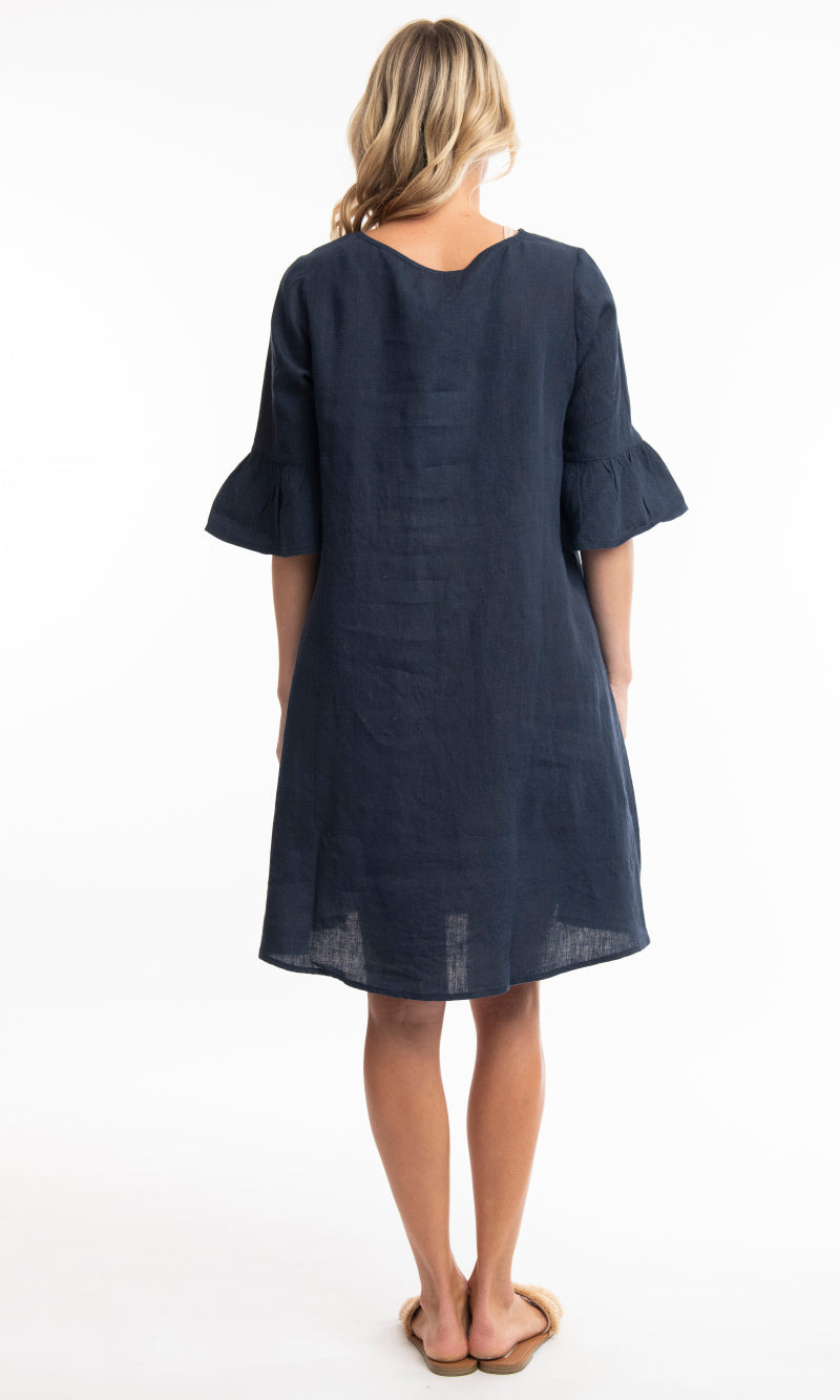 Pure Linen Dress Frill Sleeve Solid, More Colours