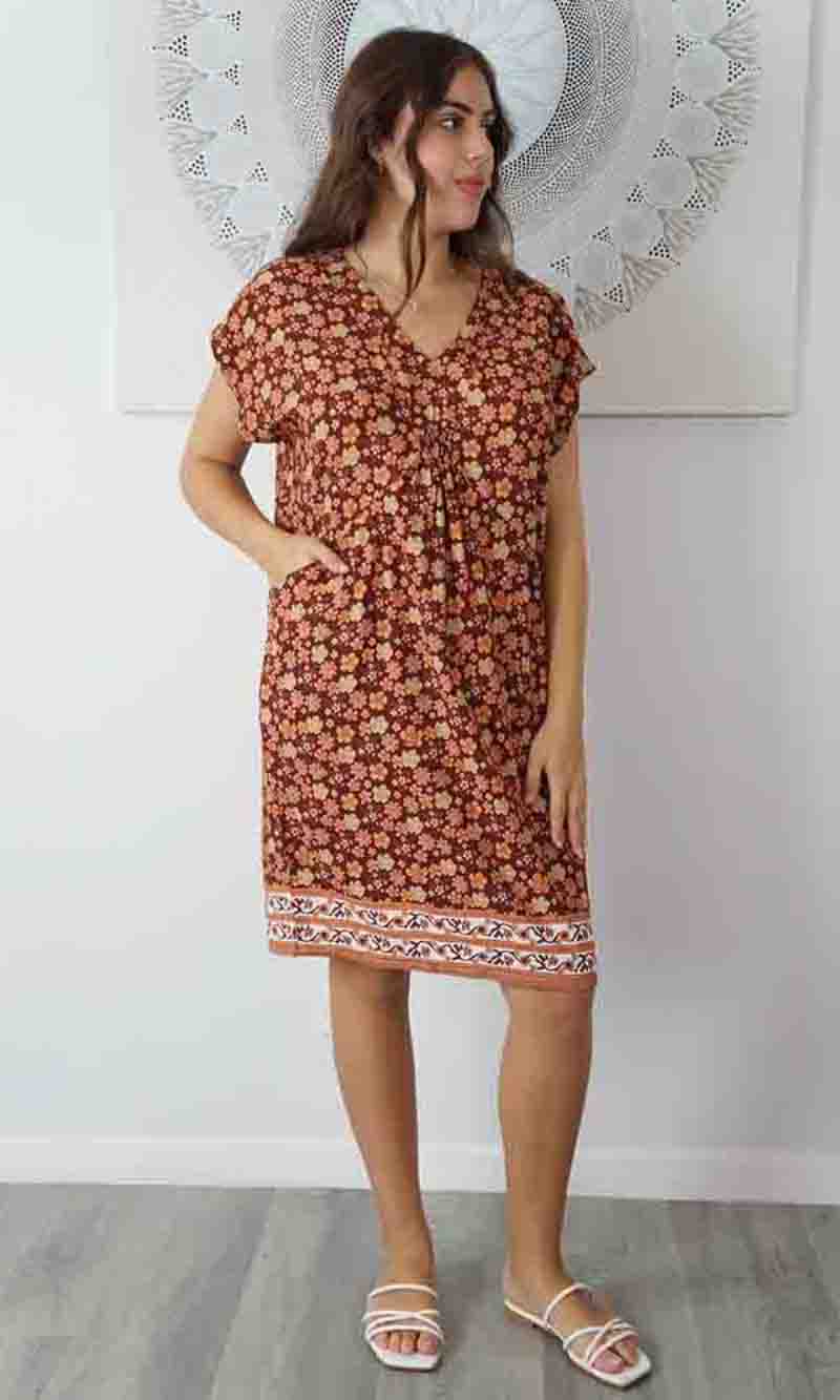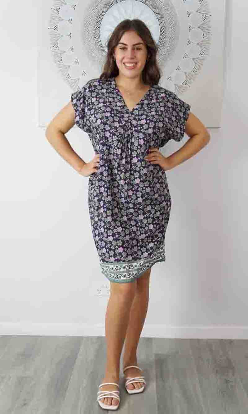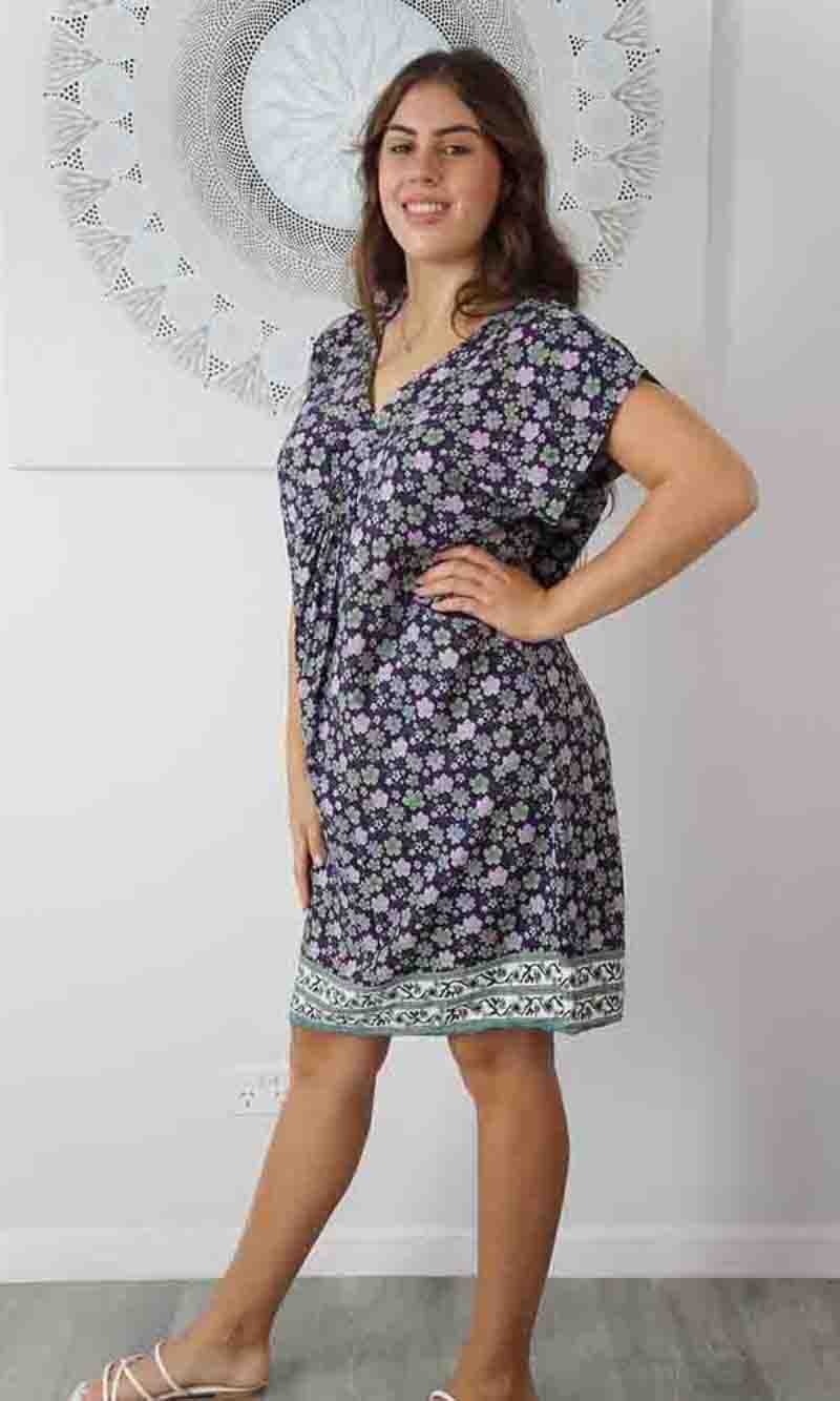 The Cruiser Dress is simple and comfortable for those warm summer days. This rayon garment is lightweight and falls beautifully on ladies of any size. Features capped sleeves, v-neckline with a pleated detail & pockets.