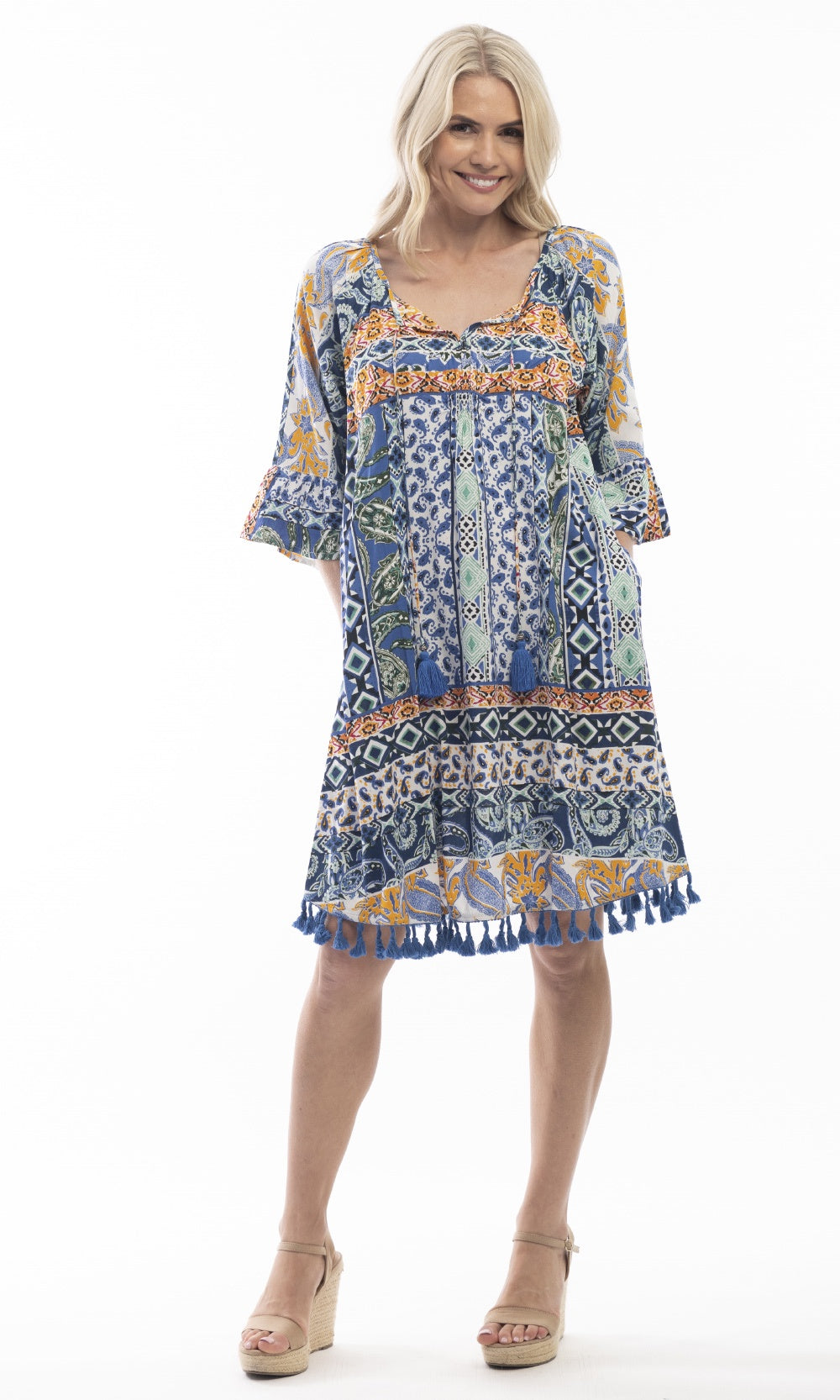 - Shoulder to hem approx. 92cm plus 4cm tassel detail