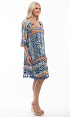 Exclusively made by artists in Europe for Orientique. This unique placement pattern come together in Aztec & Persian motifs, with two special combinations of blue, gold, red & orange!