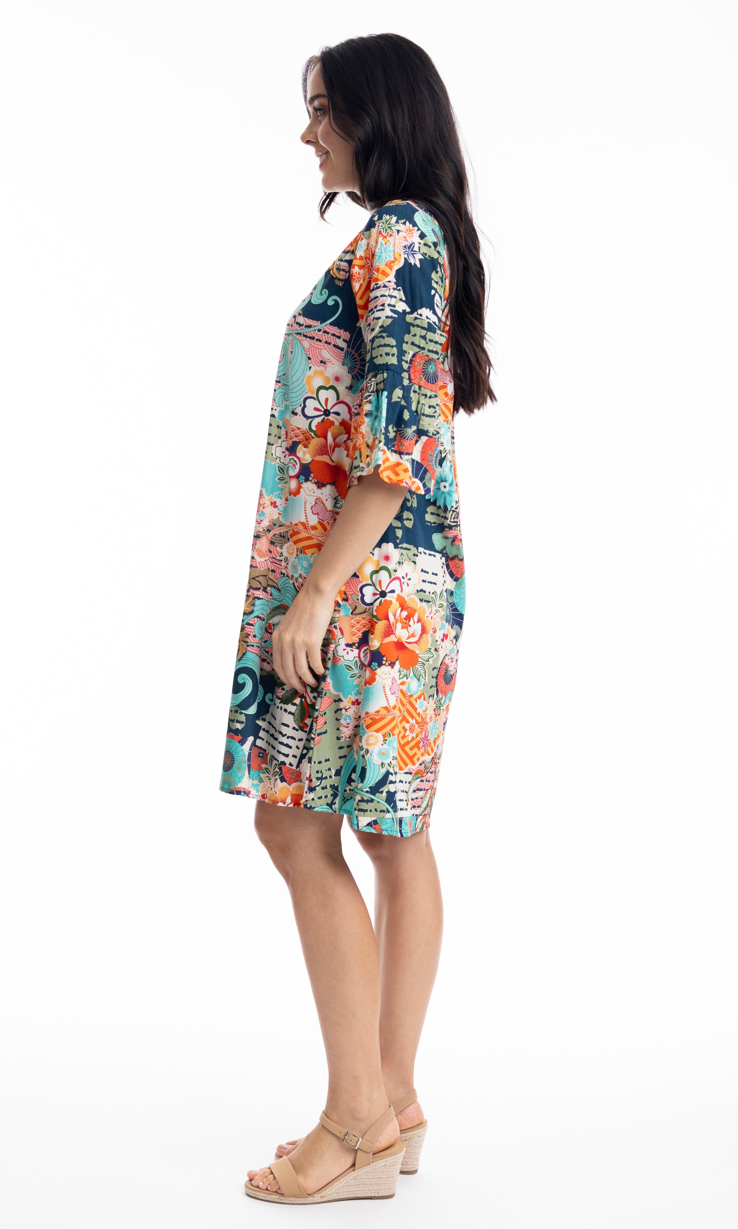 Rayon Dress Contemporary Frill Sleeve Yakushima