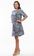 Created exclusively for Orientique by artists in Europe. Classic paisley motifs in this intricate print mix in two evergreen colours denim blues & black!