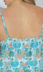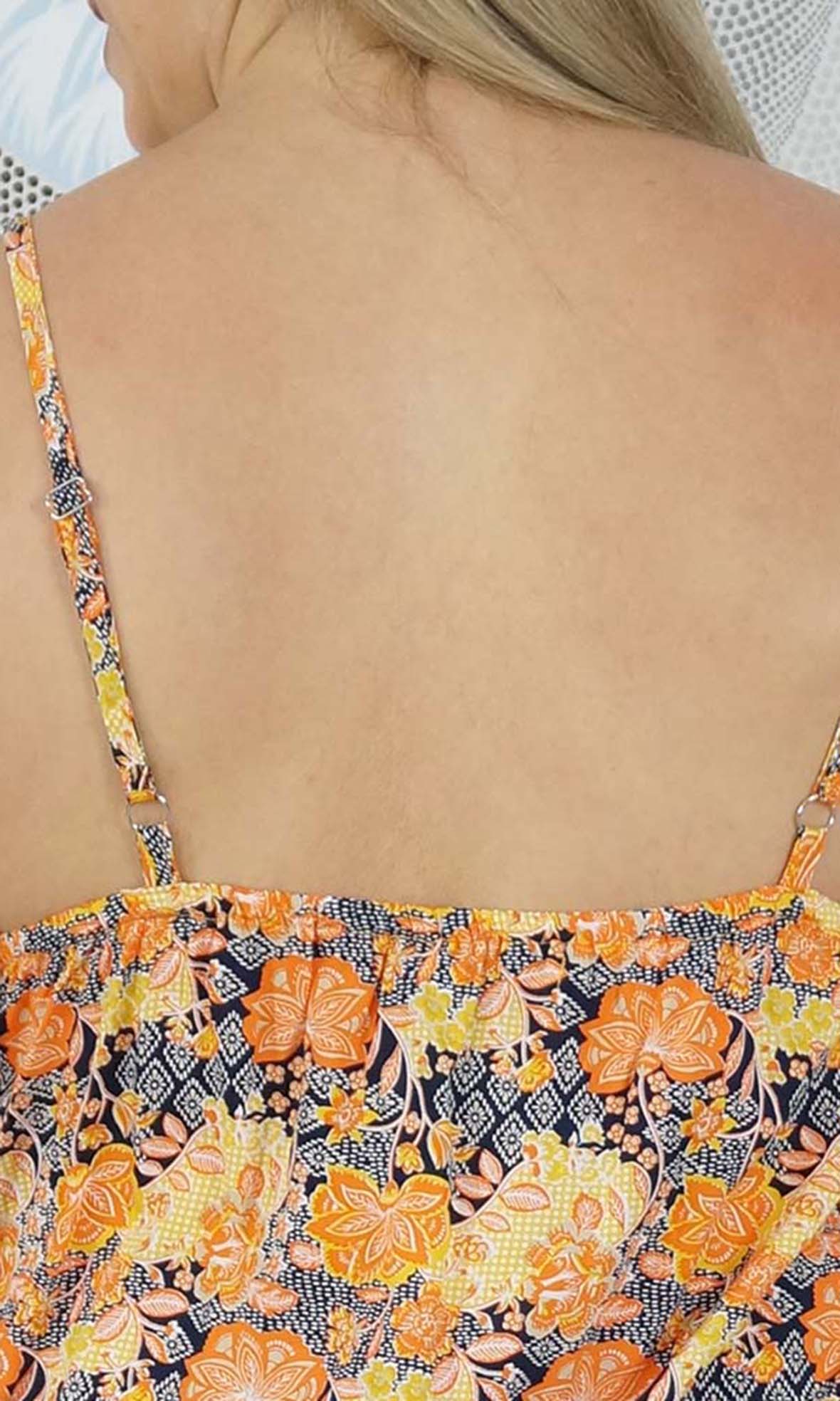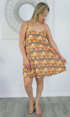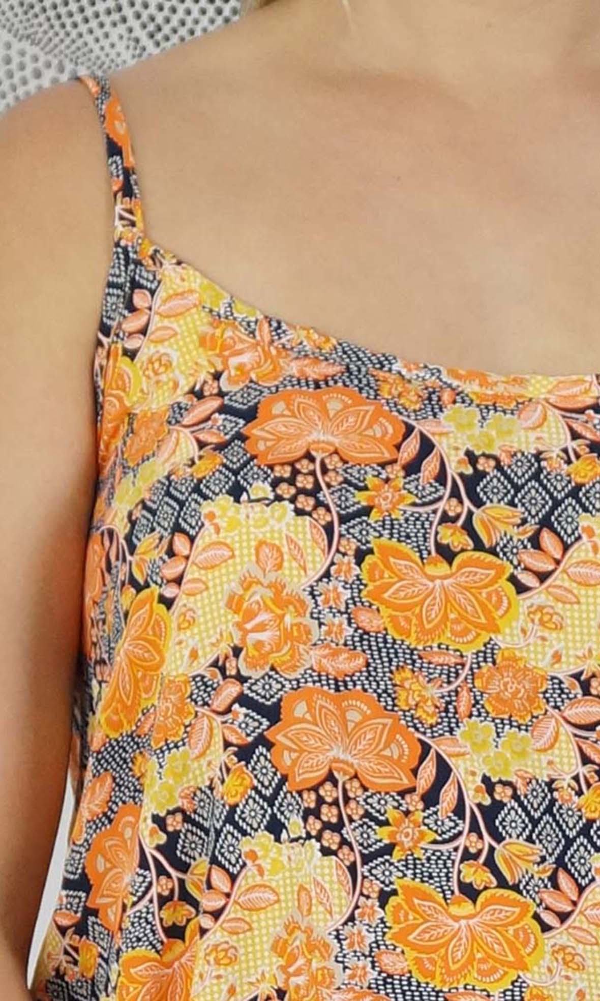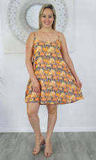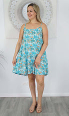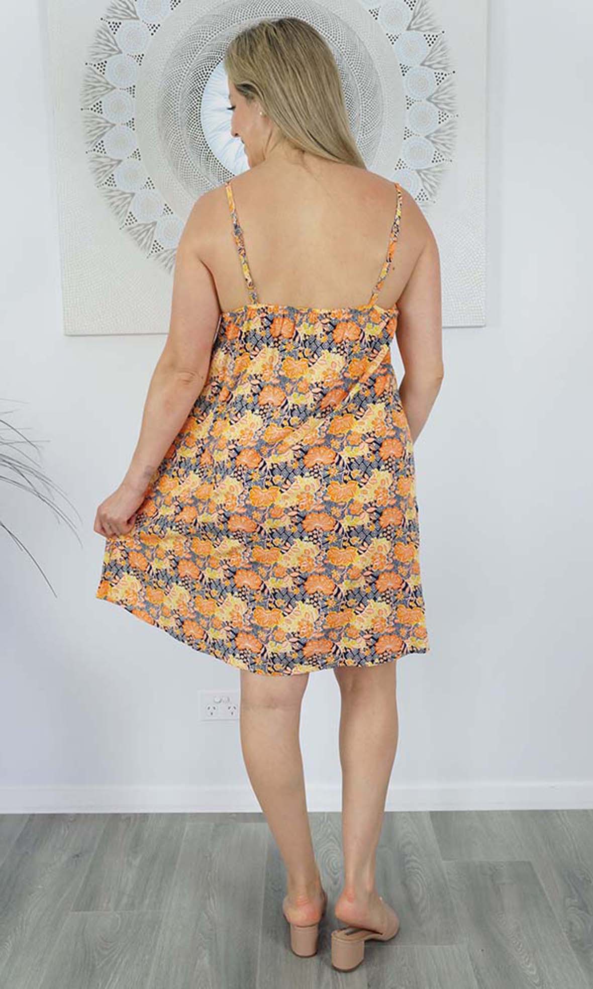 This is a lightweight mini dress that features thin adjustable straps with elastic on the back.