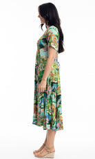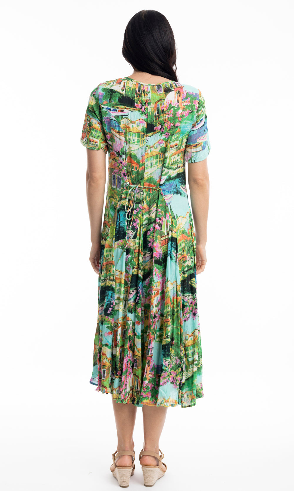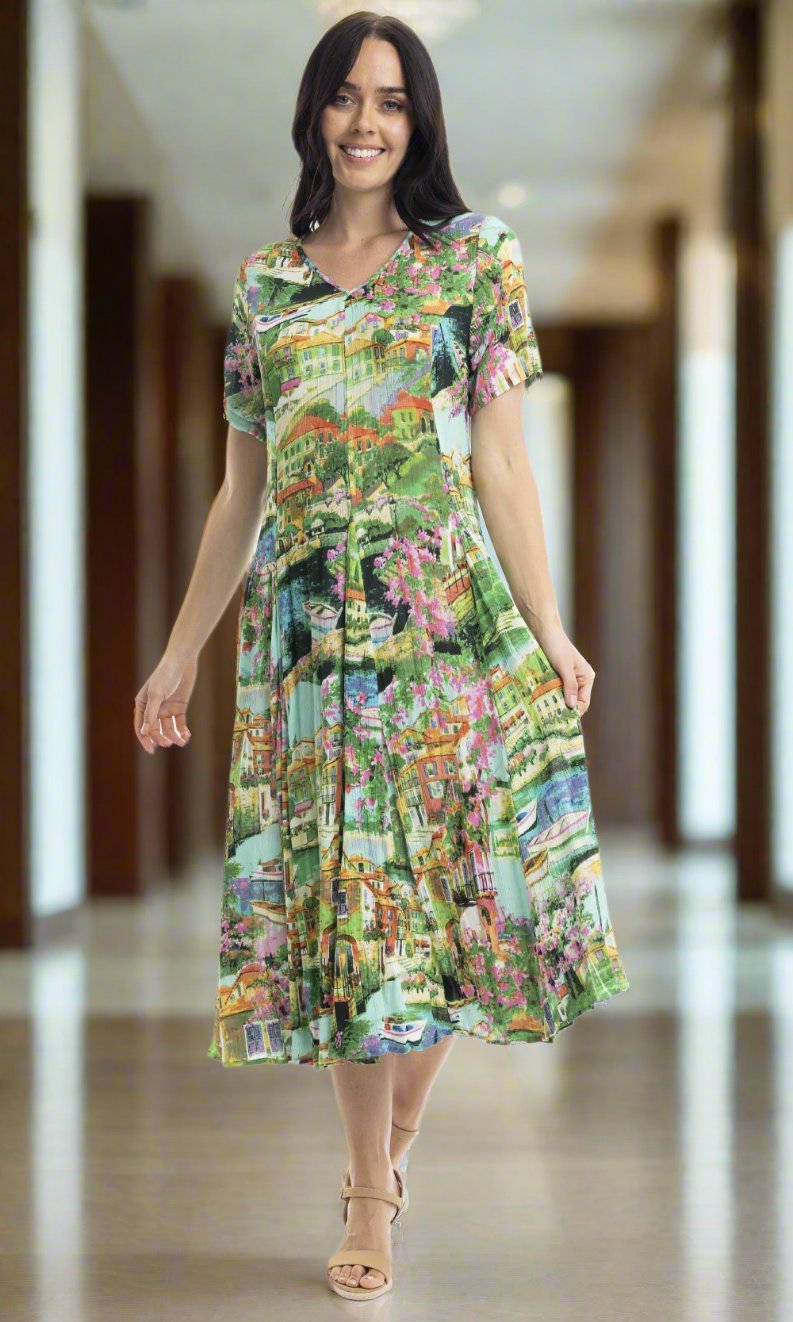 Crinkle Rayon Dress Godet Short Sleeve Bellagio