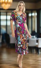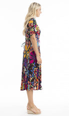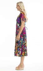 Discover the perfect dress for your next beach holiday with our vibrant, lightweight Godet dress. Made from natural fibres, it features short sleeves, a flattering v-neckline, stunning colourful print, and godet panels through the skirt that create a beautiful drape and swing in the skirt. Ideal for enjoying warm summer days, this dress combines comfort and style effortlessly.