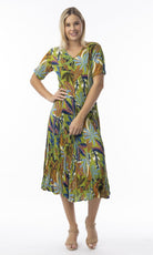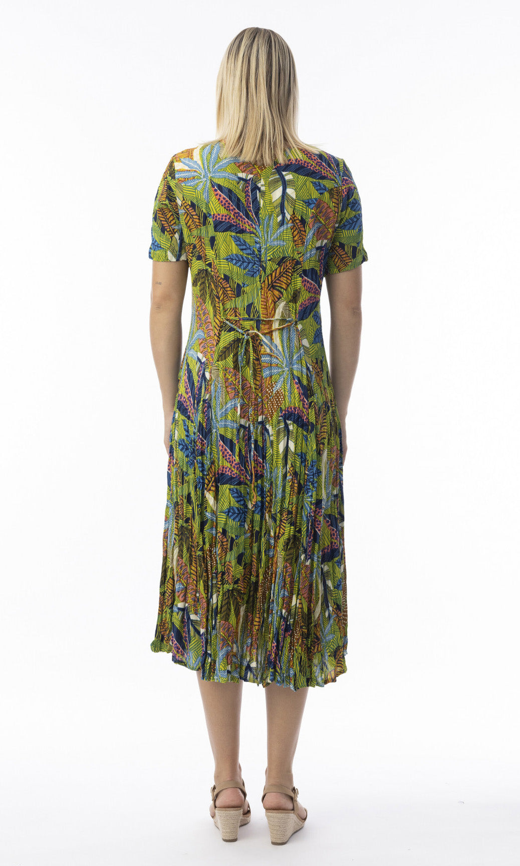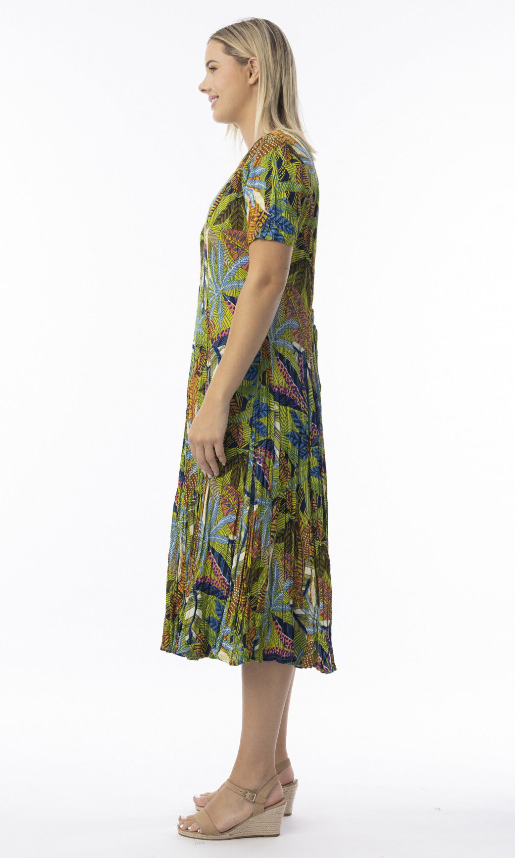 Crinkle Rayon Dress Godet Short Sleeve Tayrona