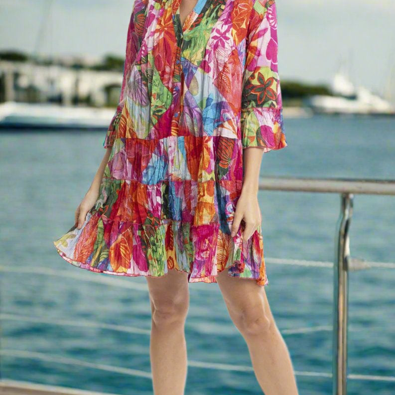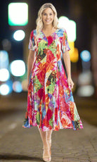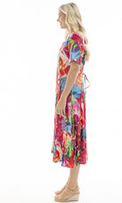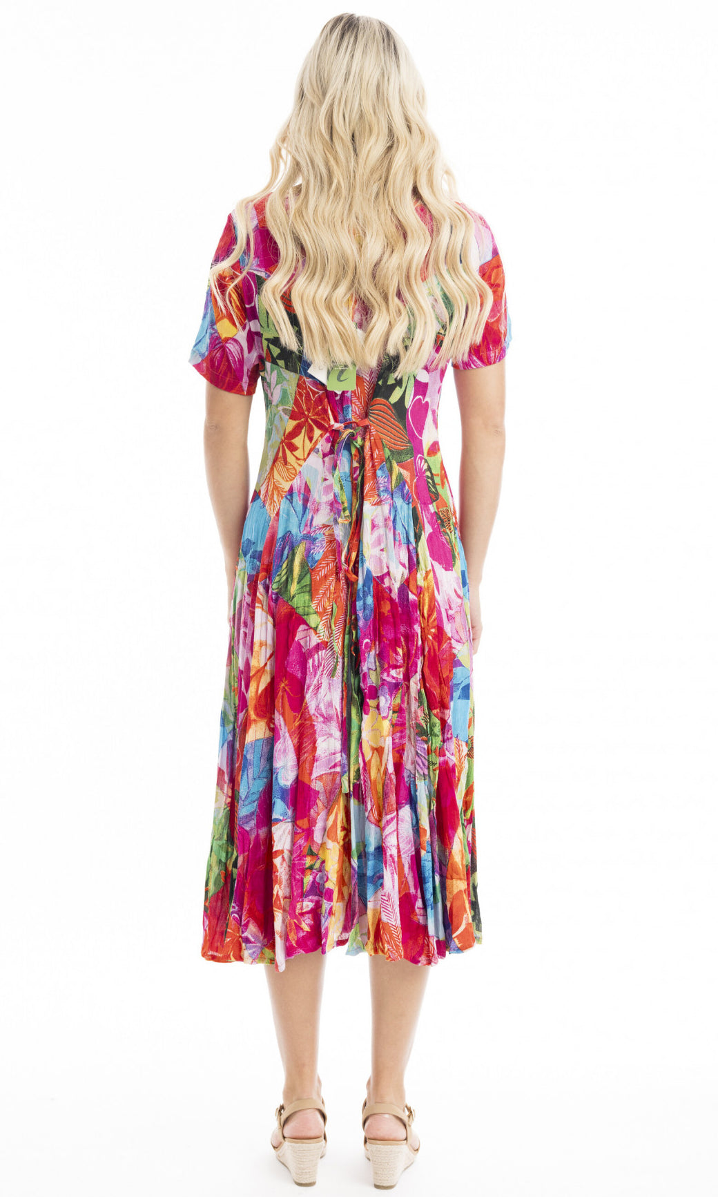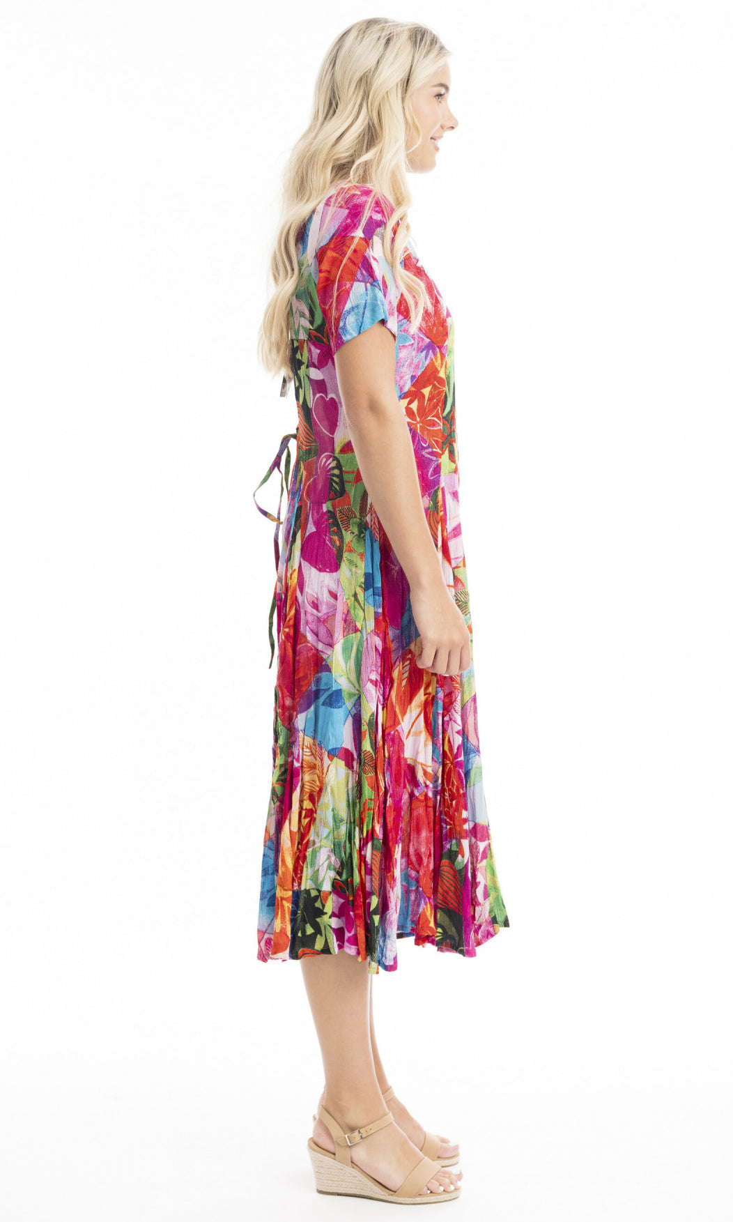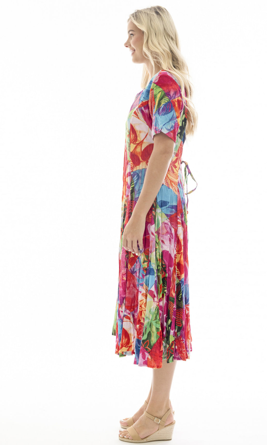 Crinkle Rayon Dress Godet Short Sleeve Jozani