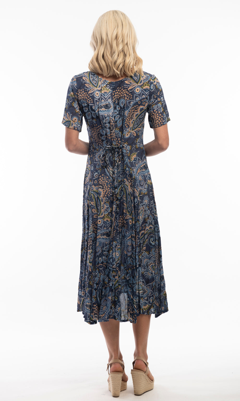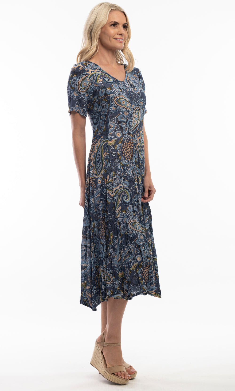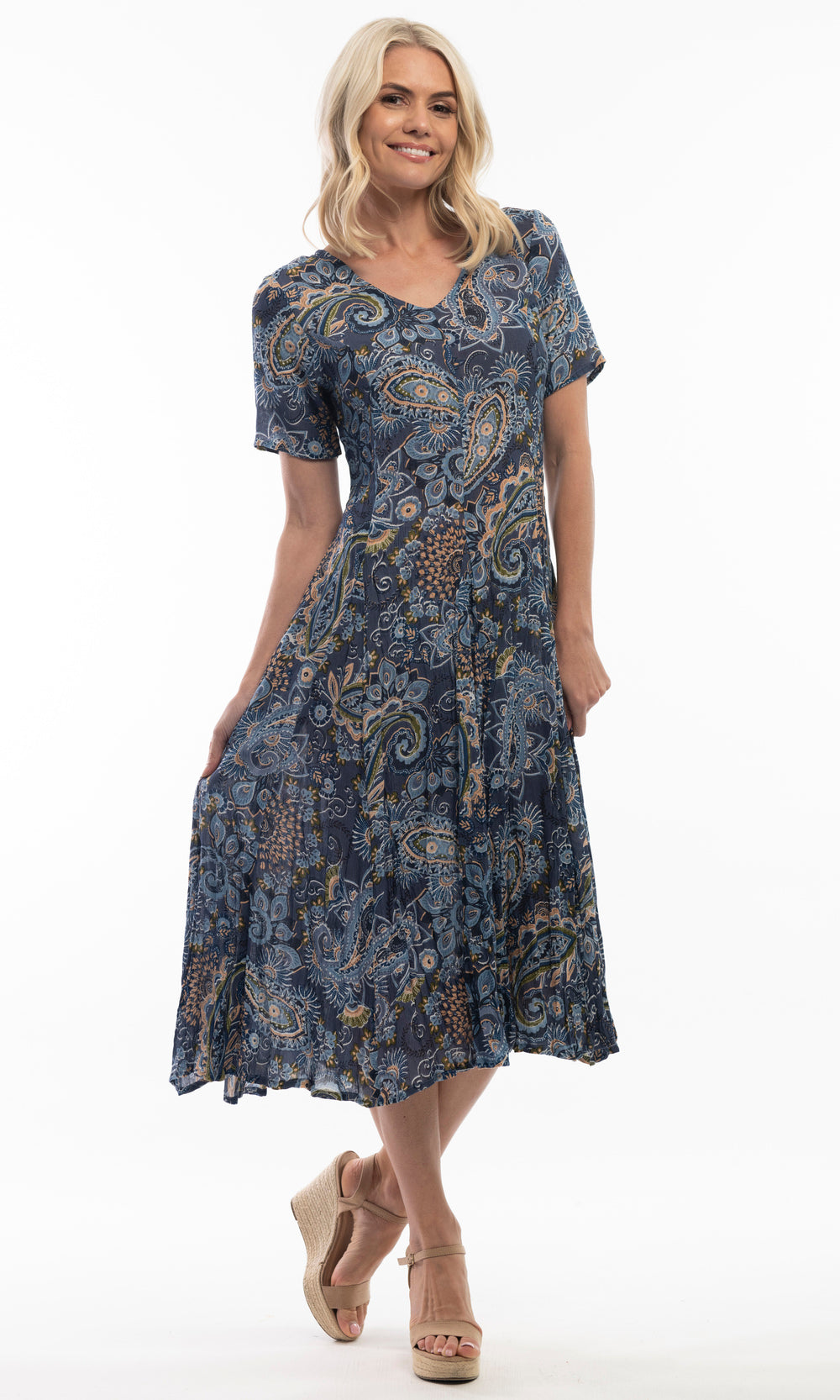 Crinkle Rayon Dress Godet Short Sleeve Lamu