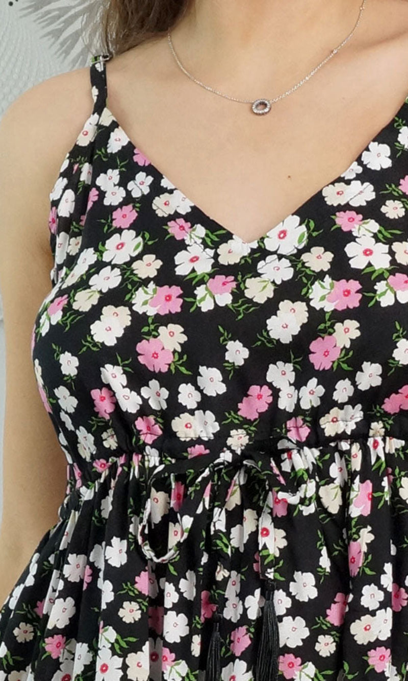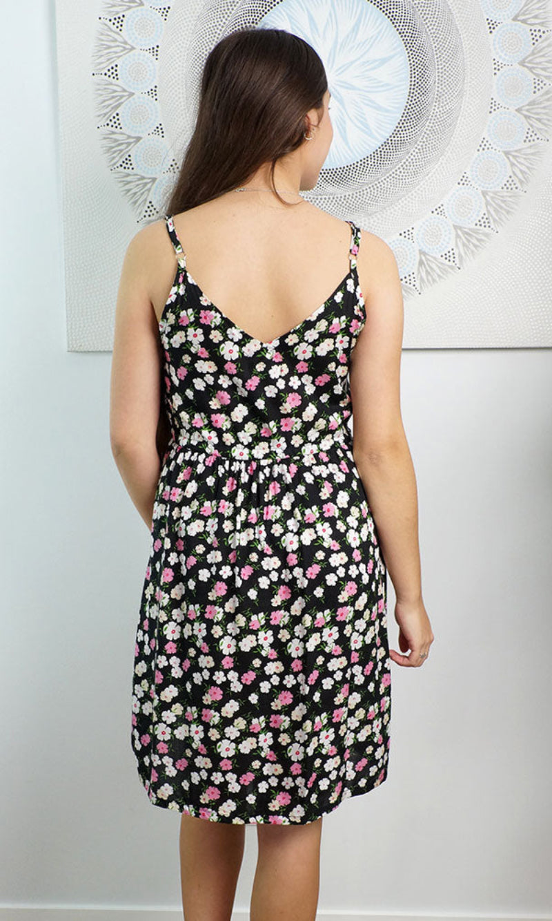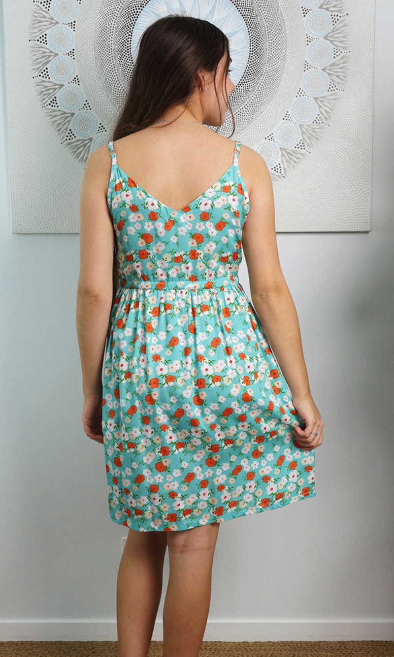 The Kalani Dress is an easy fitting sundress. The adjustable straps and the drawstring waist makes this dress flexible to fit your body. Pair with a pair of heels or a pair of sandals for a day in the sun.