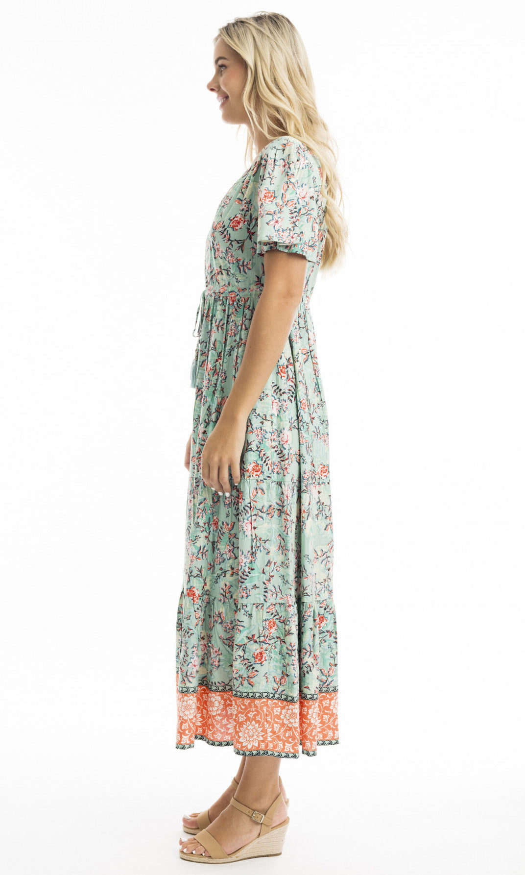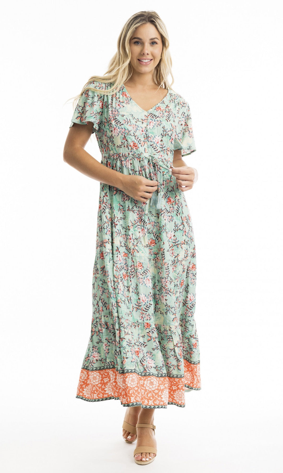 Rayon Dress Layered Midi Dress with Tie Waist Ishigaki