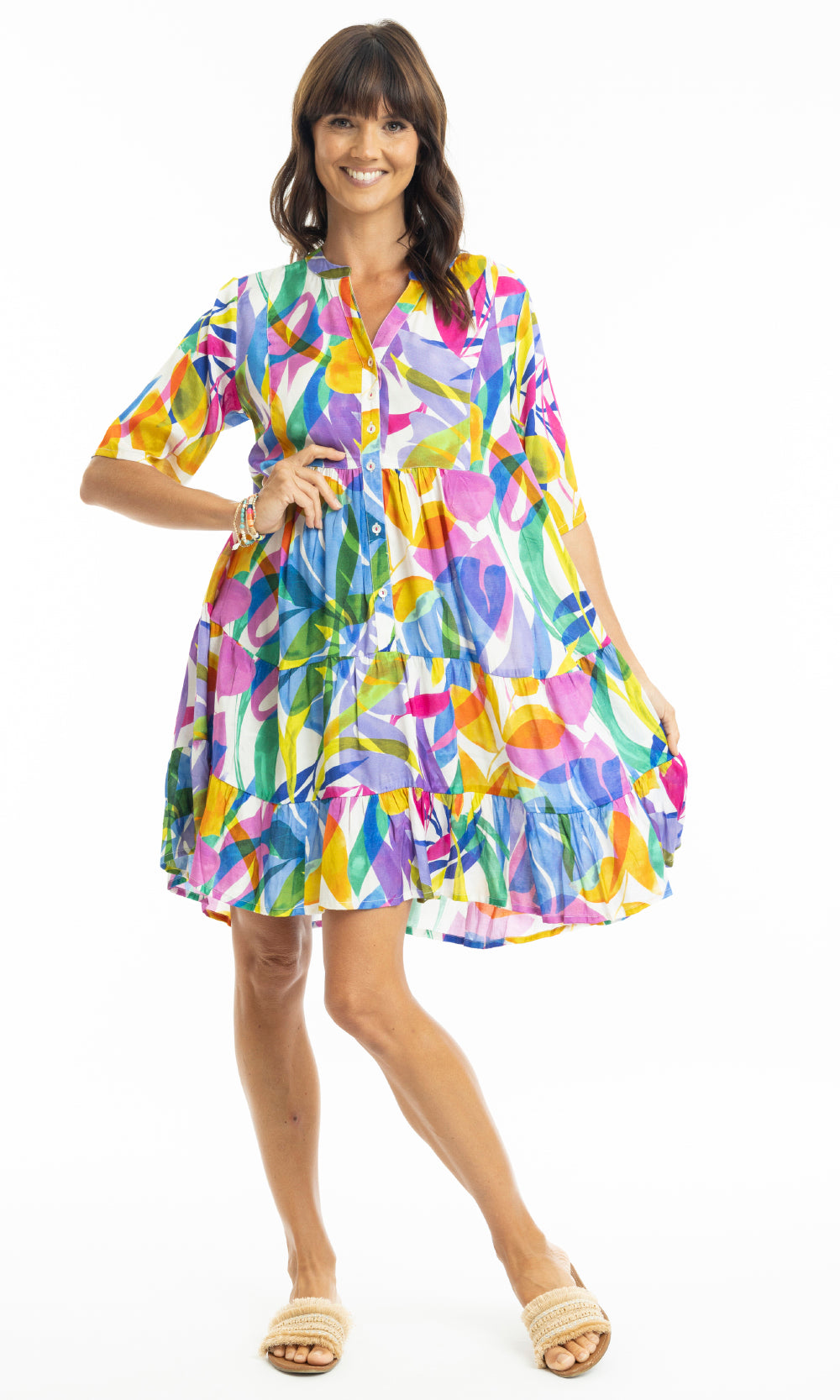 Rayon Dress Layers Sleeve with Elbow Length Melinda White