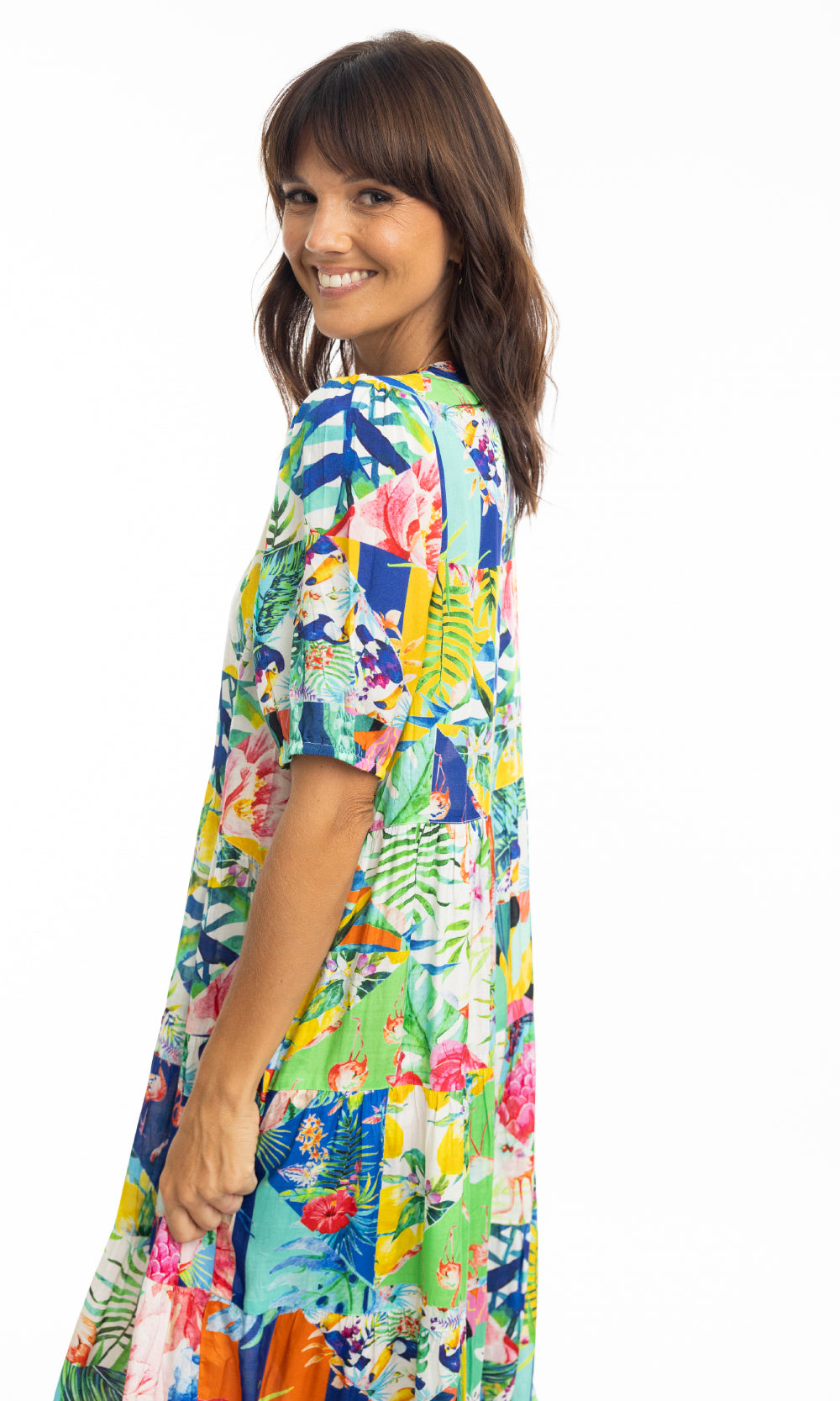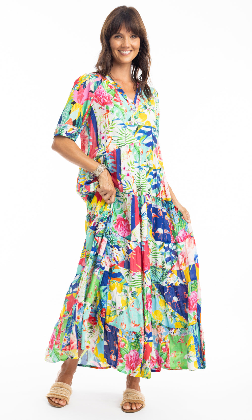 Rayon Dress Maxi Peak with Puff Sleeve Kiana