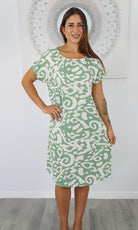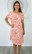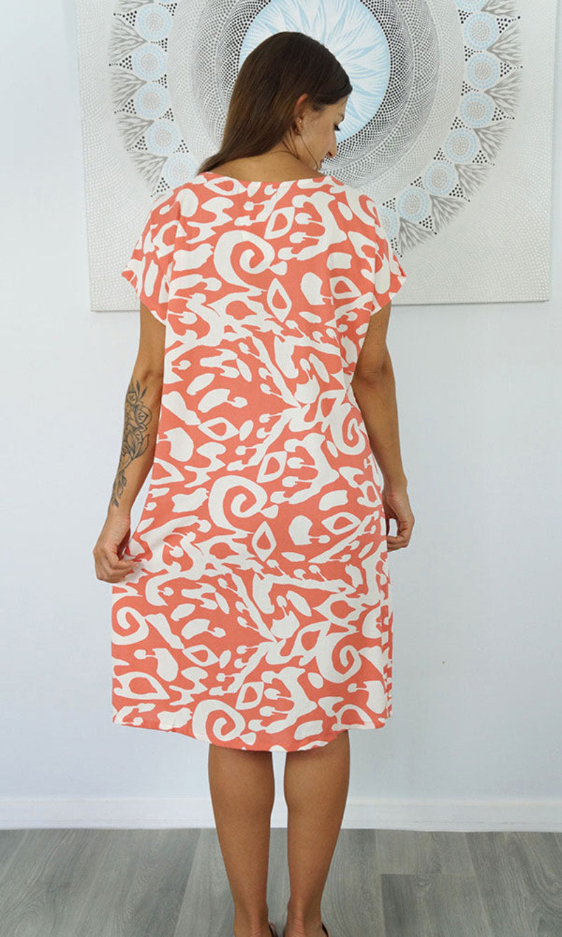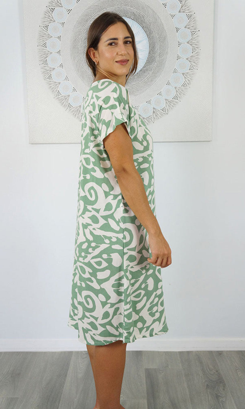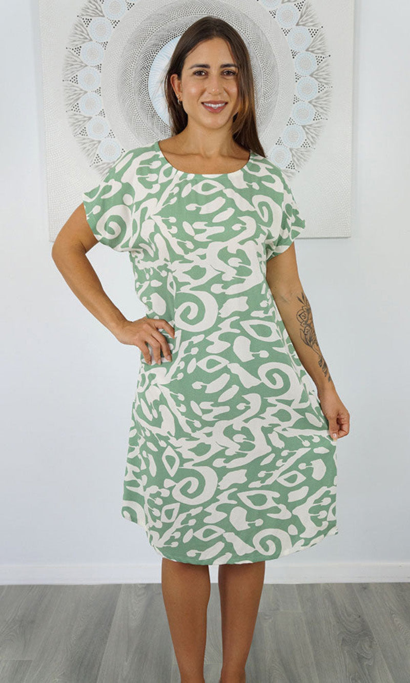 The Michelle Dress is a tried and true favorite. The simple t-shirt shape is made elegant with soft and smooth rayon material and added length on the bottom so you can wear the Michelle to work or over bathers. Versatile and comfortable, the Michelle Dress is a timeless style. Available in sizes 8-10, 12-14, 16-18.