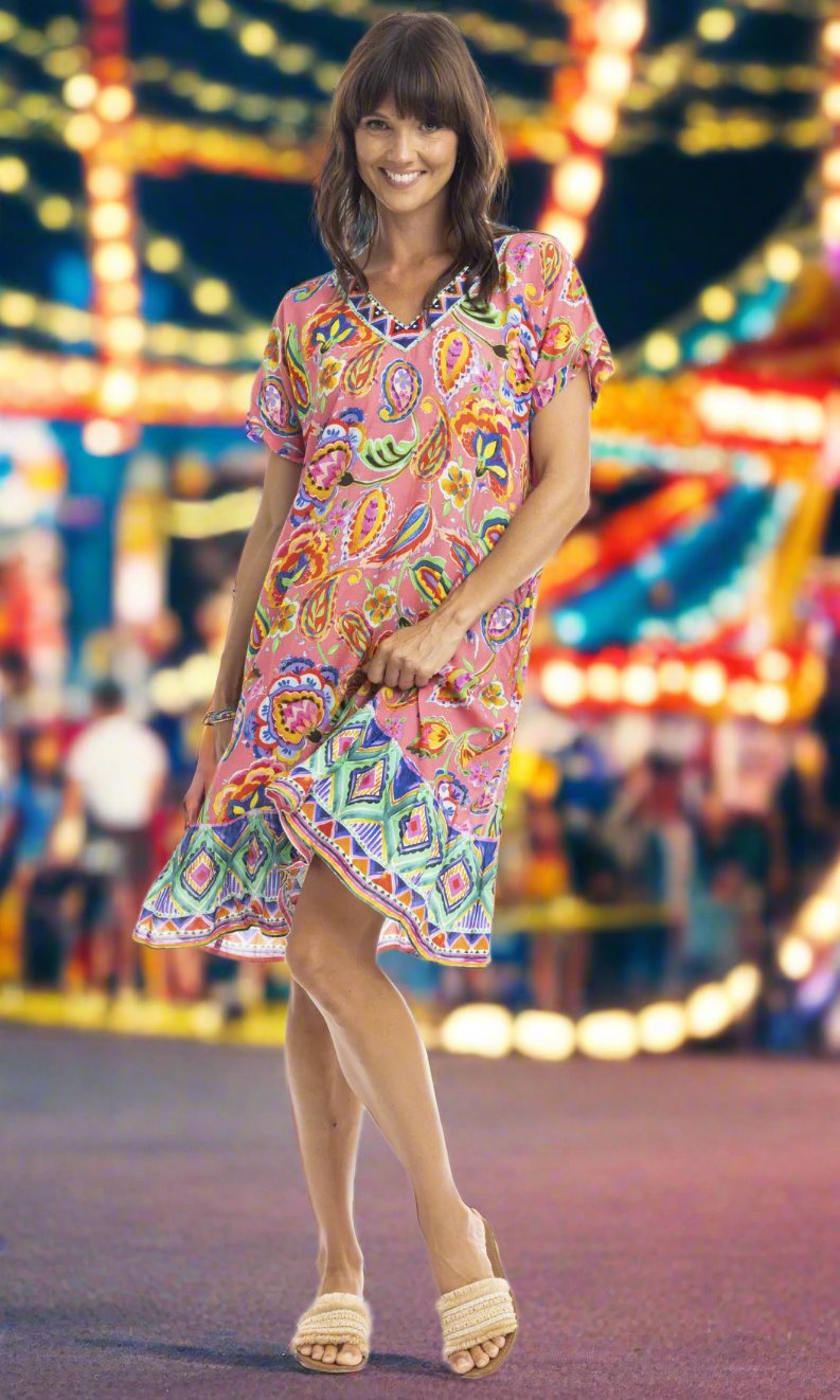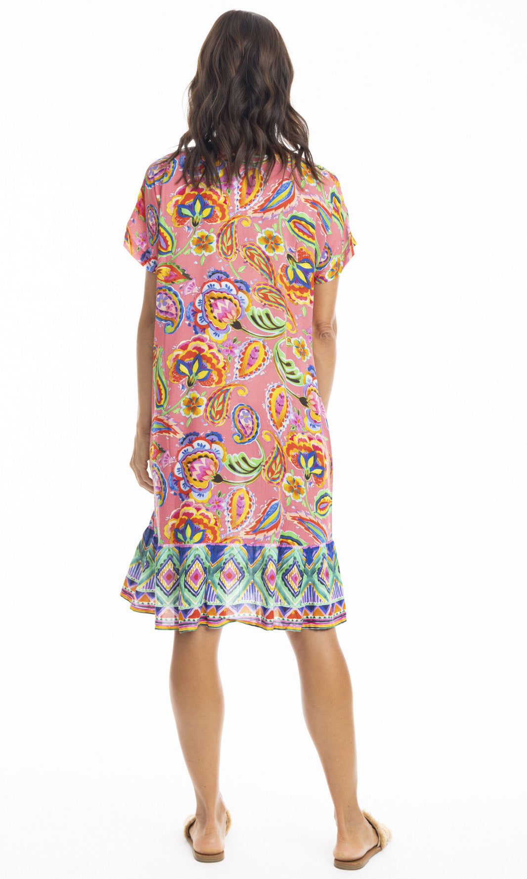 Rayon Dress Shift with Frill Hem Gabriella Pink