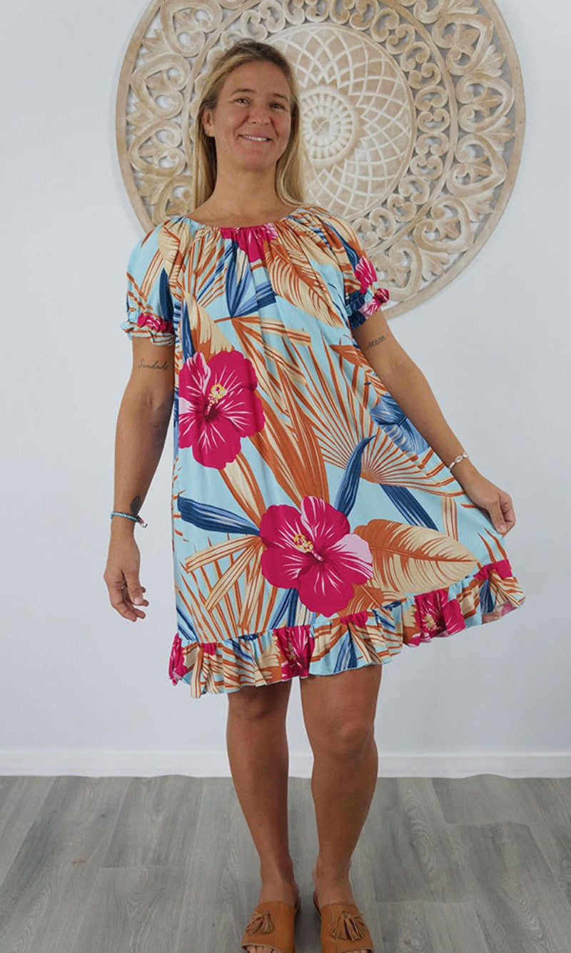 Rayon Dress Short Diva Palm Leaf, More Colours