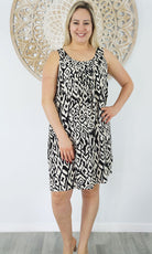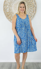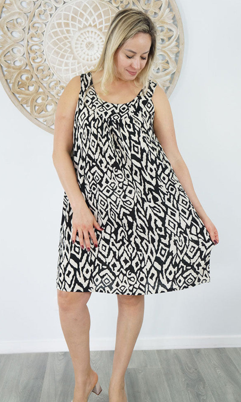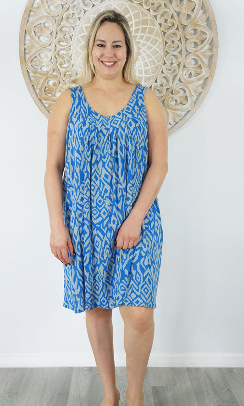 The Tahiti dress makes a great casual dress made from a cool crinkle rayon for those hot summer days. You'll find elastic easements under the arm area for that perfect fit. Sizes S/M (10-12), LXL (14-16), 2XL (18-20).