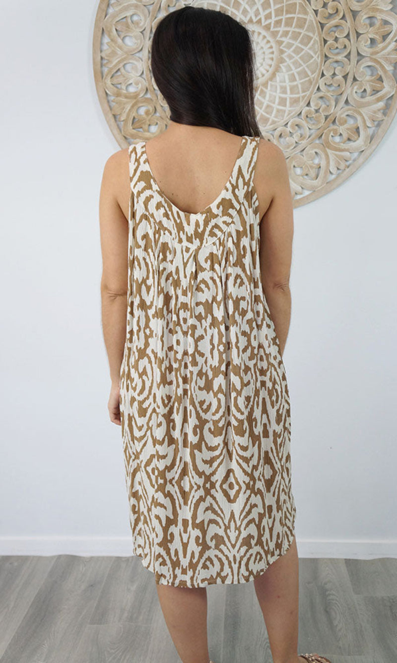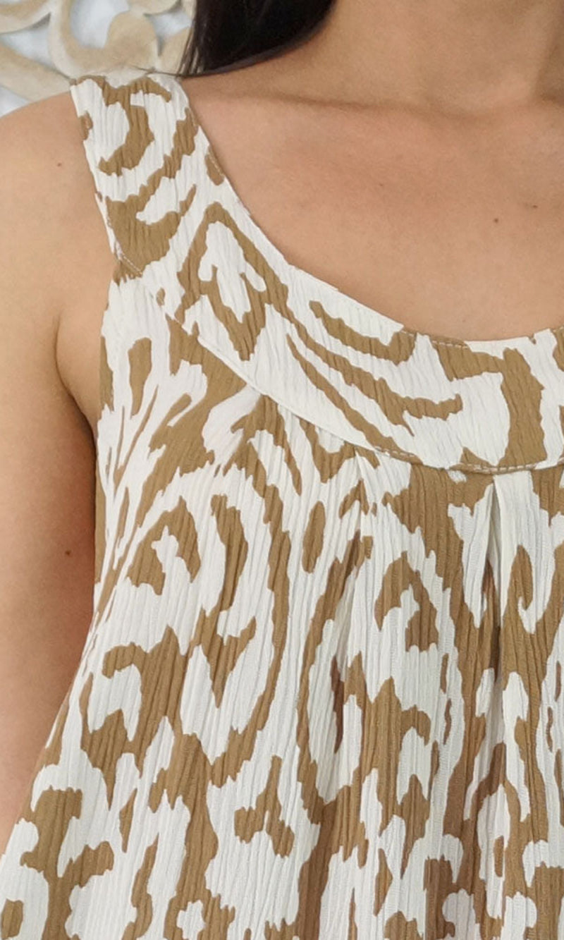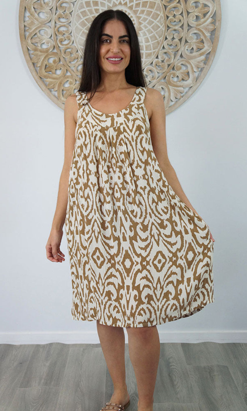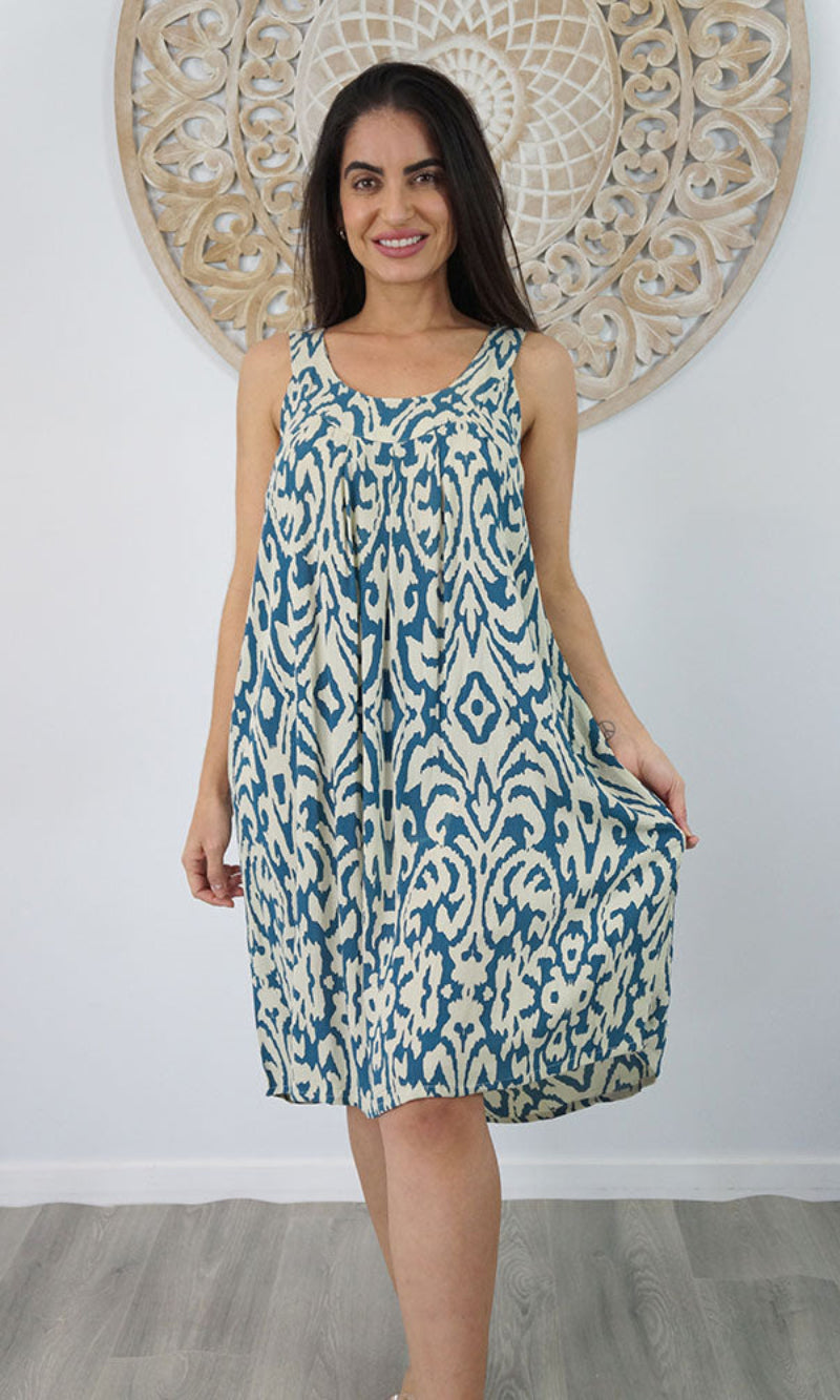 The Tahiti dress makes a great casual dress made from a cool crinkle rayon for those hot summer days. You'll find elastic easements under the arm area for that perfect fit. Sizes S/M (10-12), LXL (14-16), 2XL (18-20).